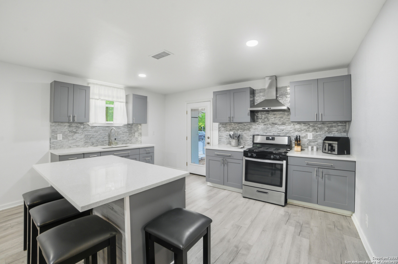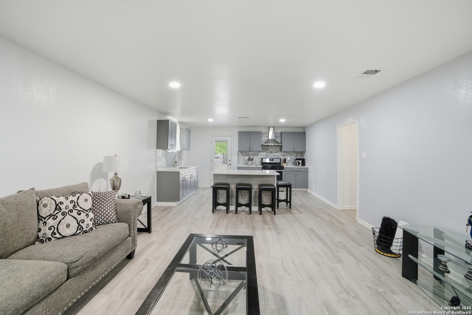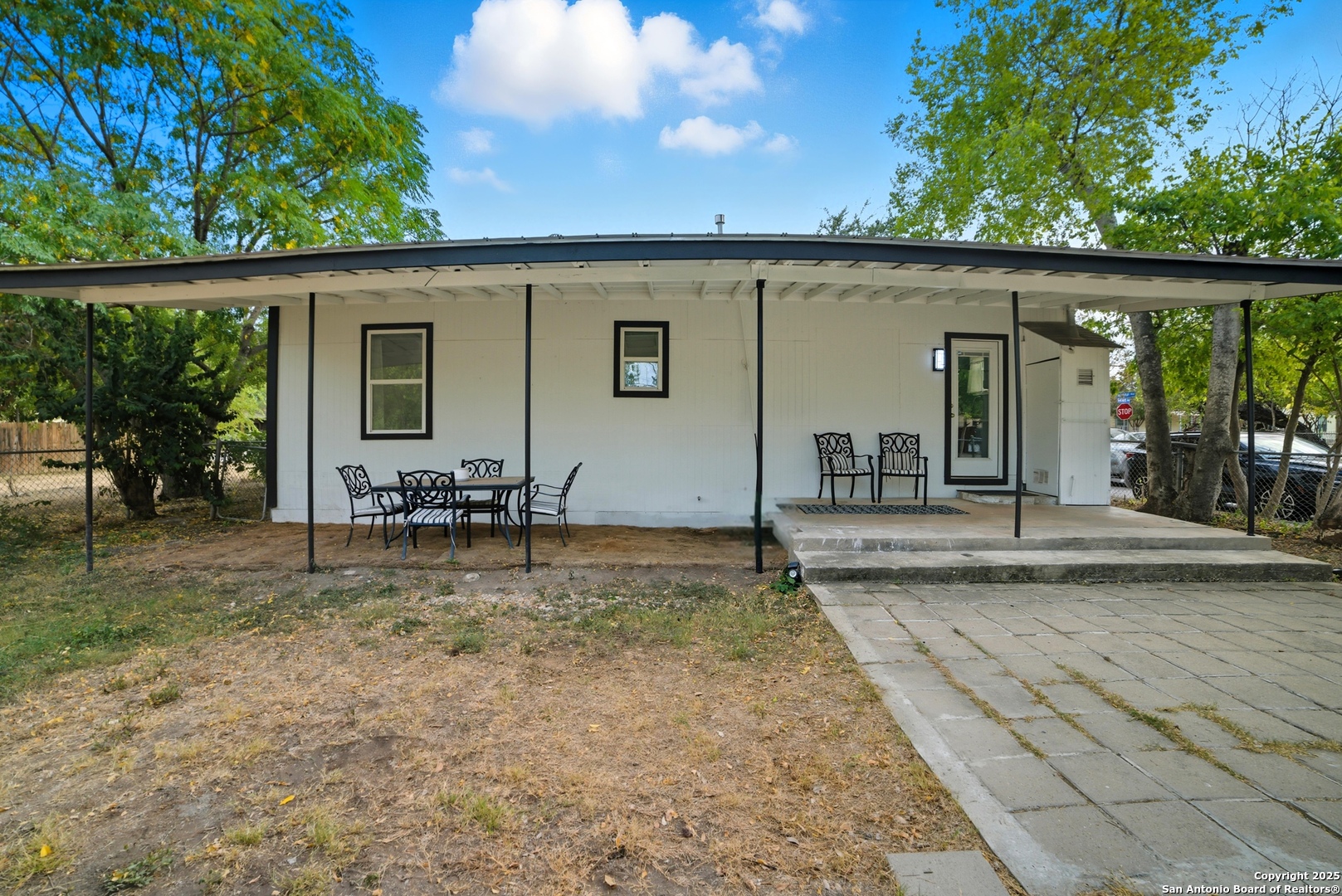 Beautiful corner lot, one story house for sale in Harlandale South San Antonio. It features 3 bedrooms, 1 bath. Kitchen w/island, quartz countertops and glass tile backsplash. Front yard with a covered deck and carport fully fenced. Larger back yard with a covered patio to enjoy and relaxation. Minutes away from South Park Mall and many restaurants. Easy access to IH-35. ***Showings blocked for Oct.24-28, home is being renovated over the weekend***