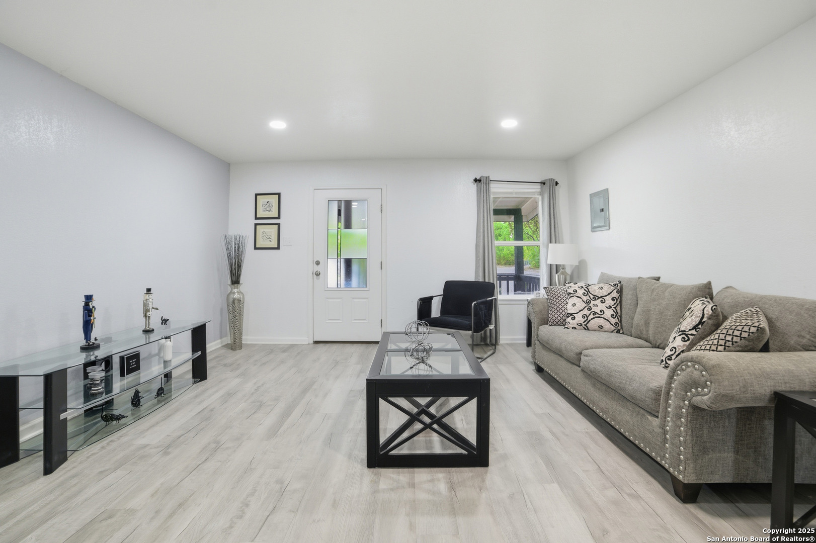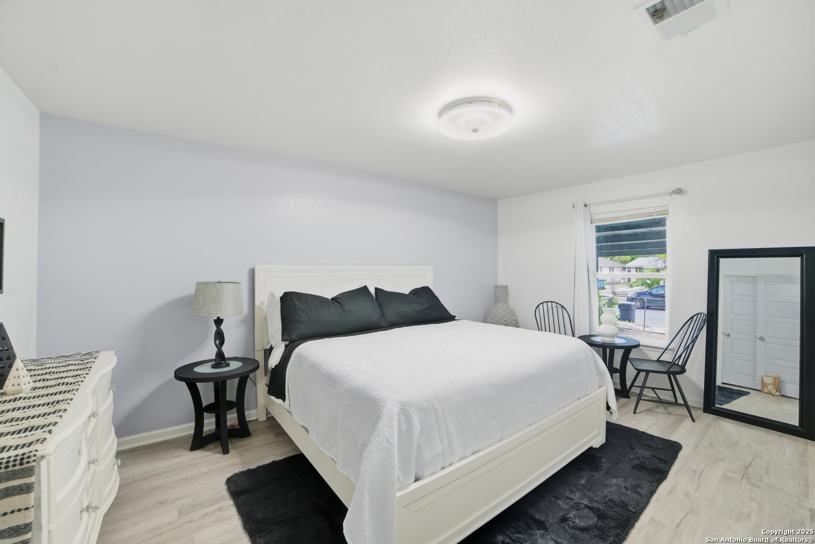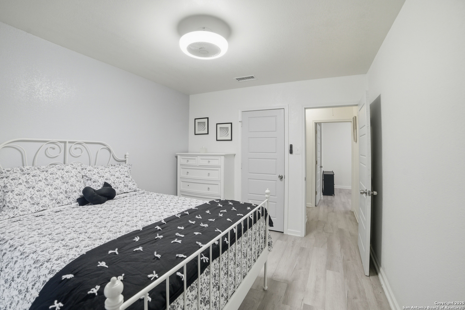 Beautiful corner lot, one story house for sale in Harlandale South San Antonio. It features 3 bedrooms, 1 bath. Kitchen w/island, quartz countertops and glass tile backsplash. Front yard with a covered deck and carport fully fenced. Larger back yard with a covered patio to enjoy and relaxation. Minutes away from South Park Mall and many restaurants. Easy access to IH-35. ***Showings blocked for Oct.24-28, home is being renovated over the weekend***