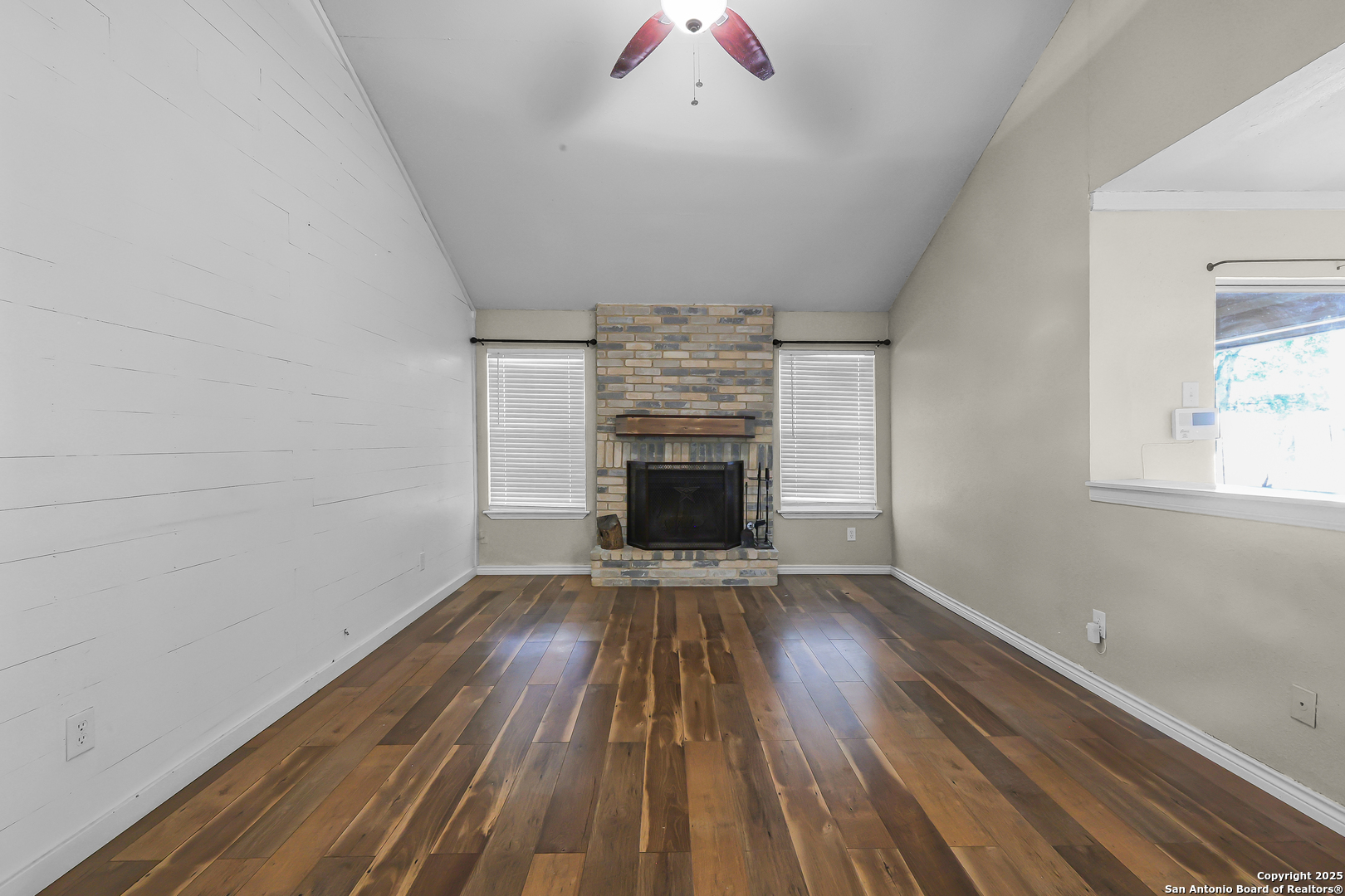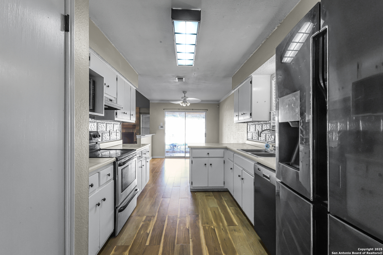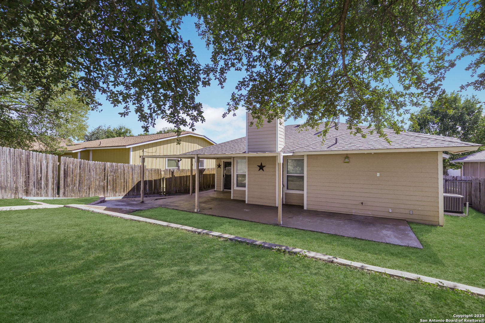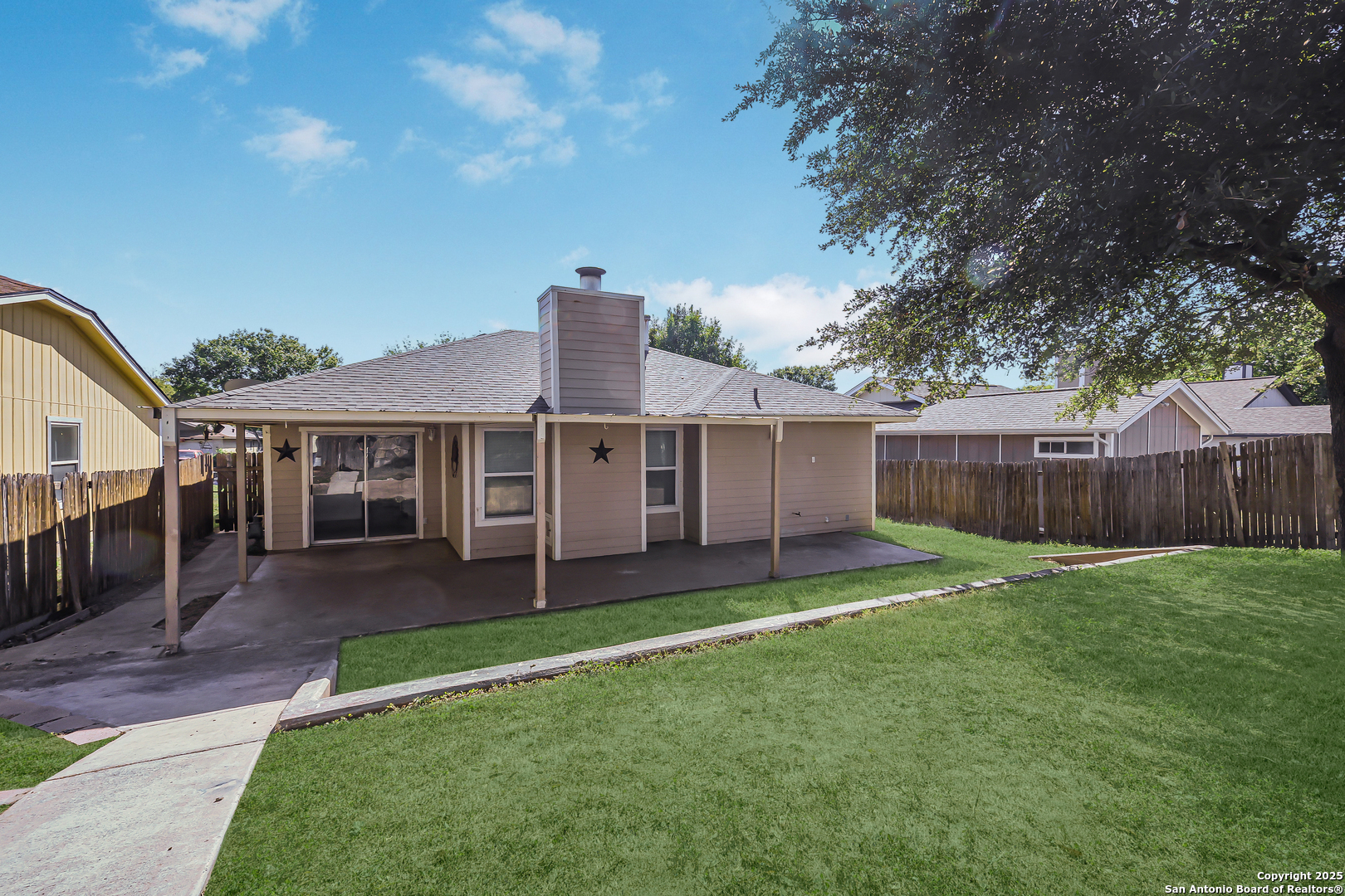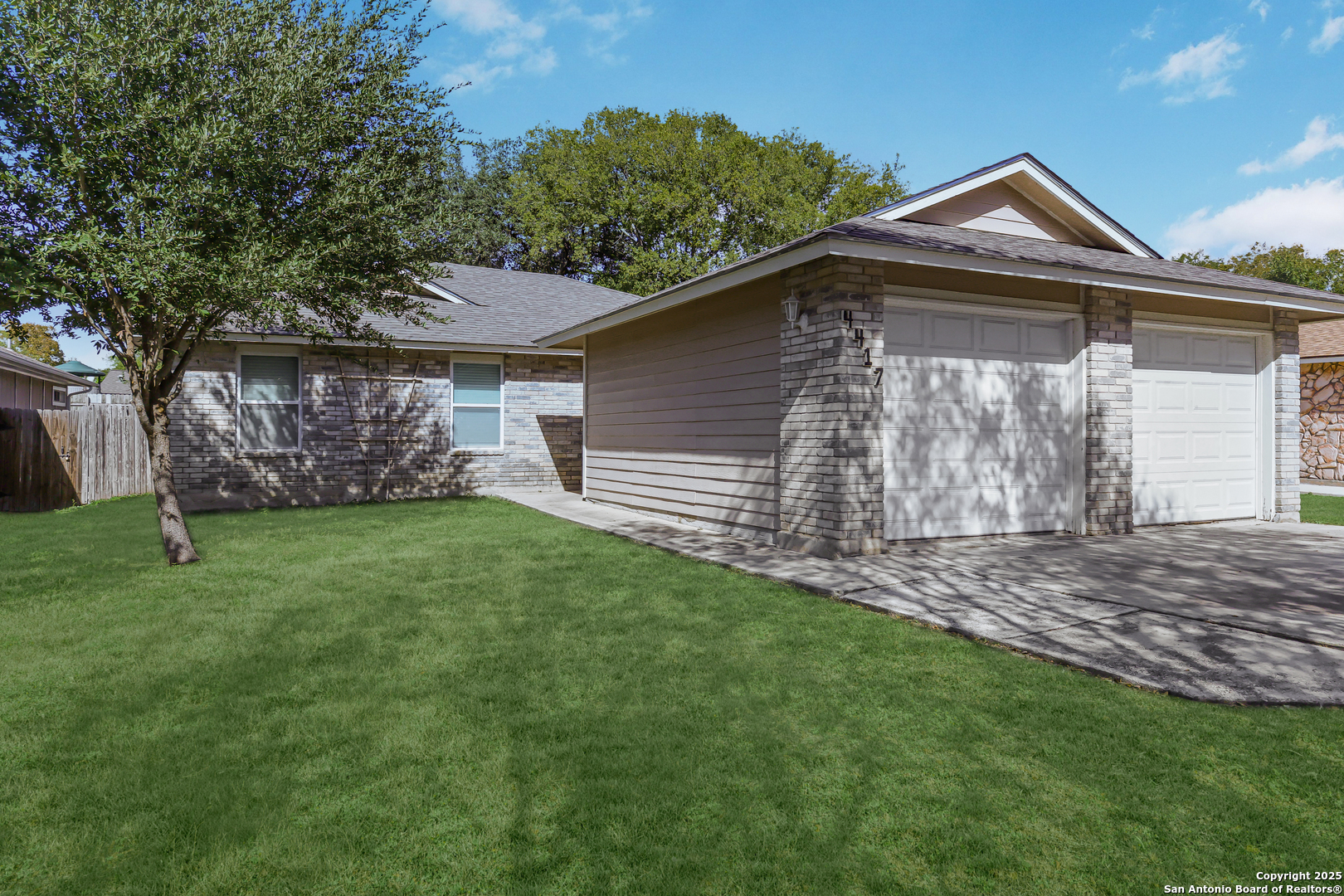 Welcome to 4417 Stayman Drive - a beautifully maintained, single-story gem in the heart of San Antonio's Peach Grove neighborhood! This 3-bedroom, 2-bathroom home offers 1,603 sq ft of thoughtfully designed living space, blending functionality and charm. Step inside and feel immediately at ease in a bright, open living area anchored by a cozy fireplace, perfect for relaxing and entertaining. The eat-in kitchen features ample counter space and a breakfast bar, making it easy to host casual meals or gather with loved ones. Just off the kitchen, a large utility room adds convenience to daily routines. Outside, the lush backyard is your private retreat-mature trees provide shade and a covered patio invites al fresco dining or quiet morning coffee. The updated two-car garage offers versatile space that could double as a workroom or extra living area.