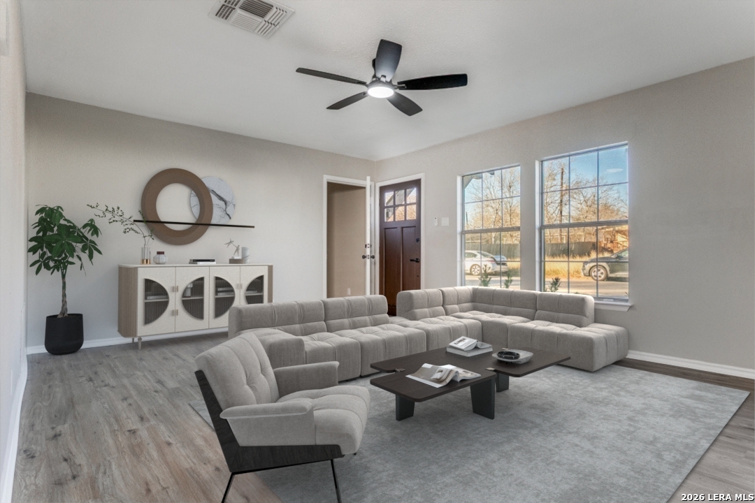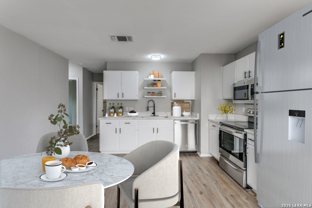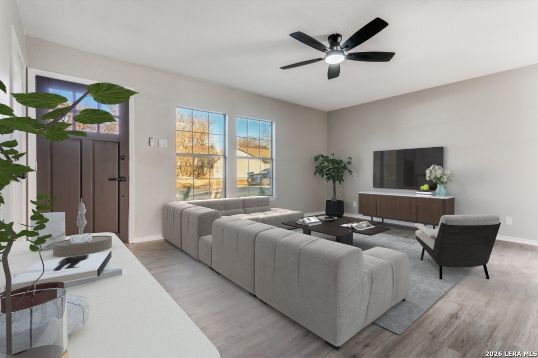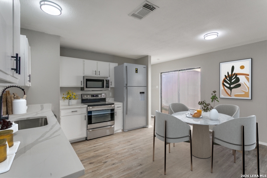Come see this beautifully remodeled 4-bedroom, 2-bath home nestled along a serene greenbelt, offering exceptional privacy with no rear neighbors. The property backs to a jogging and biking trail and features no HOA. Open-concept living room flows into a spacious kitchen highlighted by white quartz countertops.