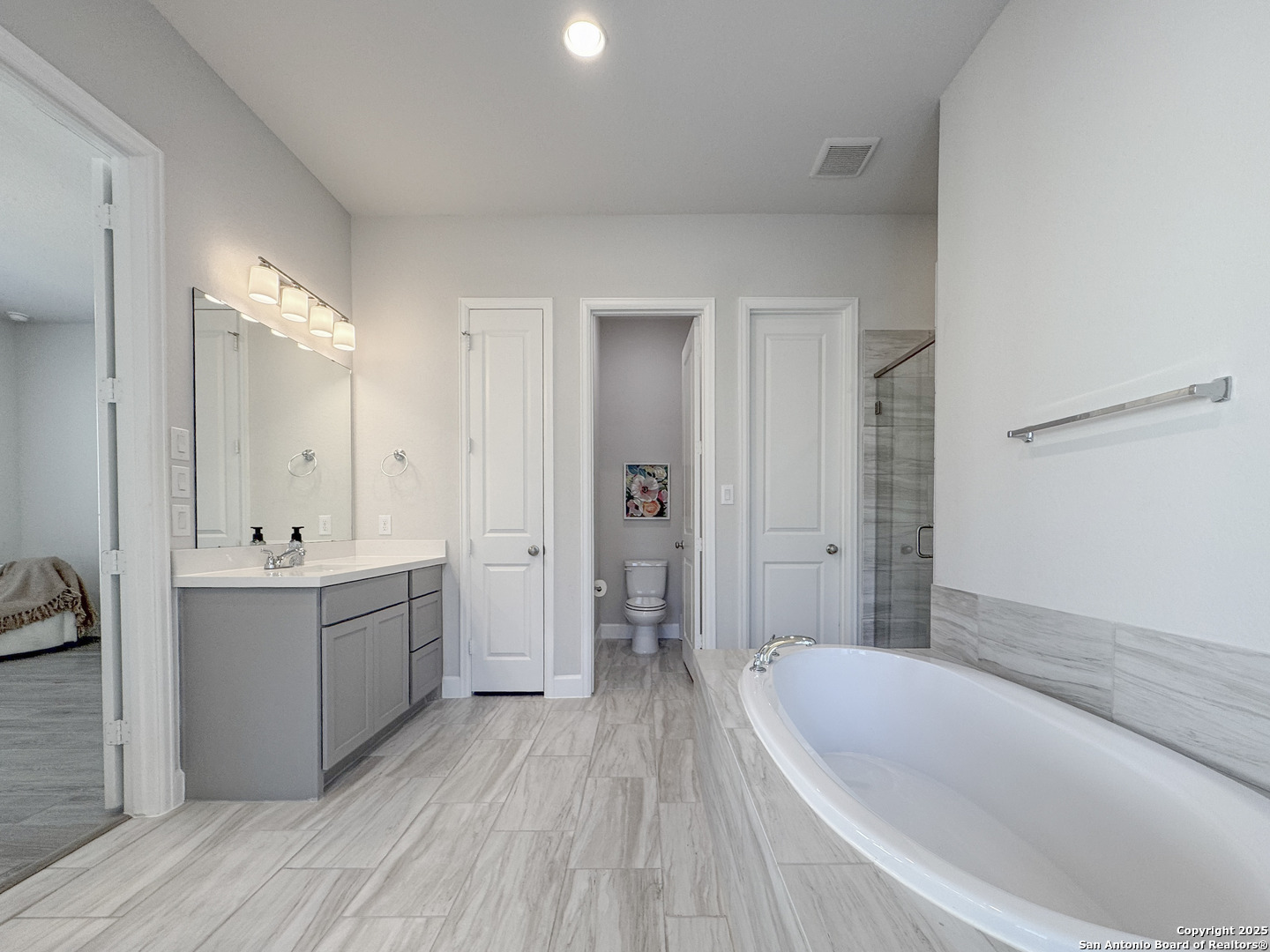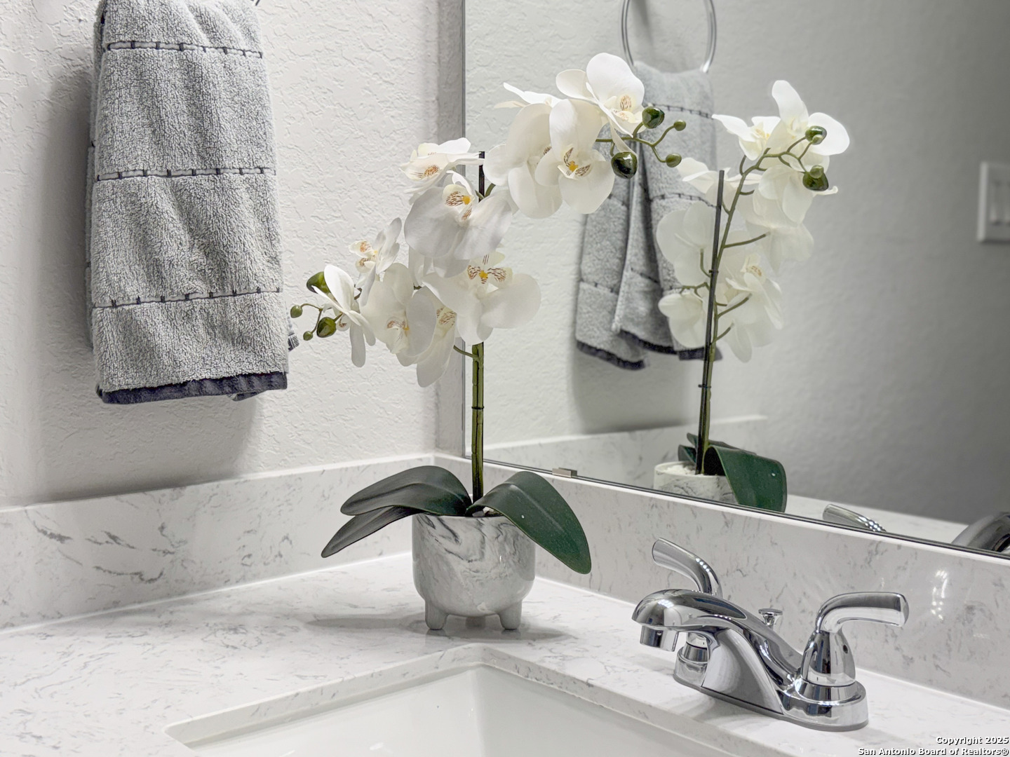 OPEN HOUSE Saturday November 8 from 12-3pm! Stunning One-Story Stucco & Stone Home in a Peaceful Gated Community Near TPC J. W Marriott San Antonio Hill Country Resort & Spa & golf course. Immaculate 4-bedroom, 3-bath home with a dedicated office/TV room and a 2-car garage, situated on a desirable corner lot. Built in 2023, this beautiful stucco home offers an open-concept design with elegant tile flooring throughout (only 3 bedrooms have carpet). The spacious kitchen features a large island with quartz countertops, abundant cabinetry for storage, and stainless steel appliances - all included. The luxurious primary suite boasts dual vanities, two walk-in closets, a walk-in shower, and a separate soaking tub, perfect for relaxing after a long day. Additional highlights include a tankless gas water heater, pre-plumbed water softener connection, and bright natural light in every room. A must see-in North San Antonio!