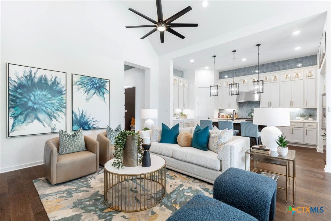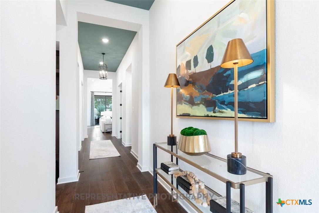 This ONE level home has everything you could need to include 4 bedrooms, 4 full bathrooms, a home office and entertainment room, an extended covered patio, luxury primary suite extension and freestanding tub in the primary bathroom. And there's more ... soaring 16.5-foot ceilings in the family/dining area, 5-burner gas cooktop, 8-foot garage door and more. Home under construction with estimated May home completion