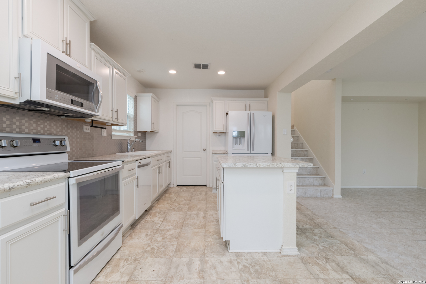 Welcome to 4439 Donley Bayou, a stunning contemporary 3-bedroom, 2.5-bath home on San Antonio's far west side. Offering over 1,600 square feet across two stories, this beautiful home blends modern style with everyday comfort. The open-concept living space flows seamlessly into a stylish white kitchen with matching appliances, perfect for entertaining and hosting family get togethers. No carpet throughout adds a sleek, low-maintenance appeal, while each room offers a blank canvas to make it your own. Step outside to a spacious backyard featuring a small covered patio-ideal for morning coffee, barbecues, or creating your own outdoor oasis. Conveniently located less than three minutes from major highways and just 10 minutes from Lackland AFB, with dining and entertainment nearby. Includes fridge, and washer and dryer! Don't miss your chance to live in this beautiful home in a vibrant, expanding community-schedule your showing today.