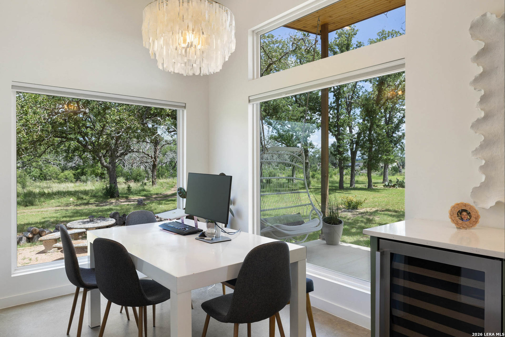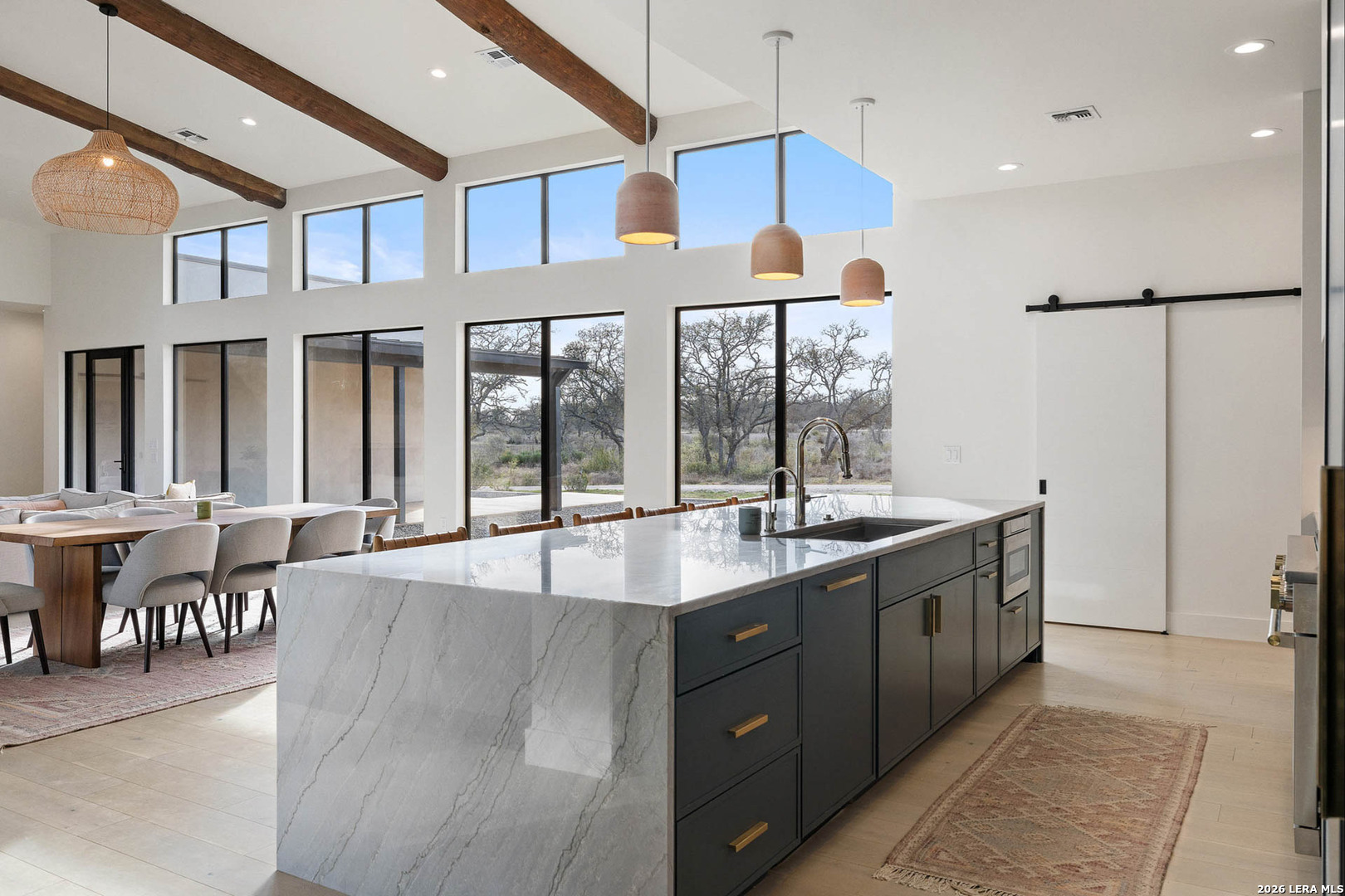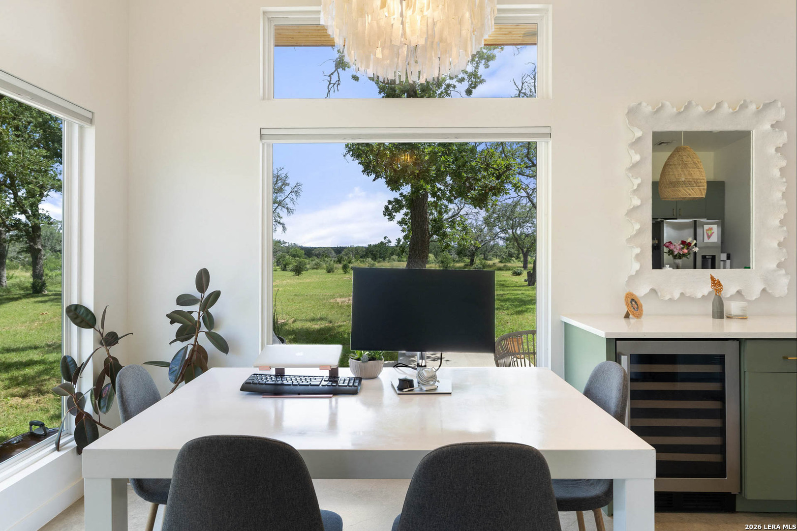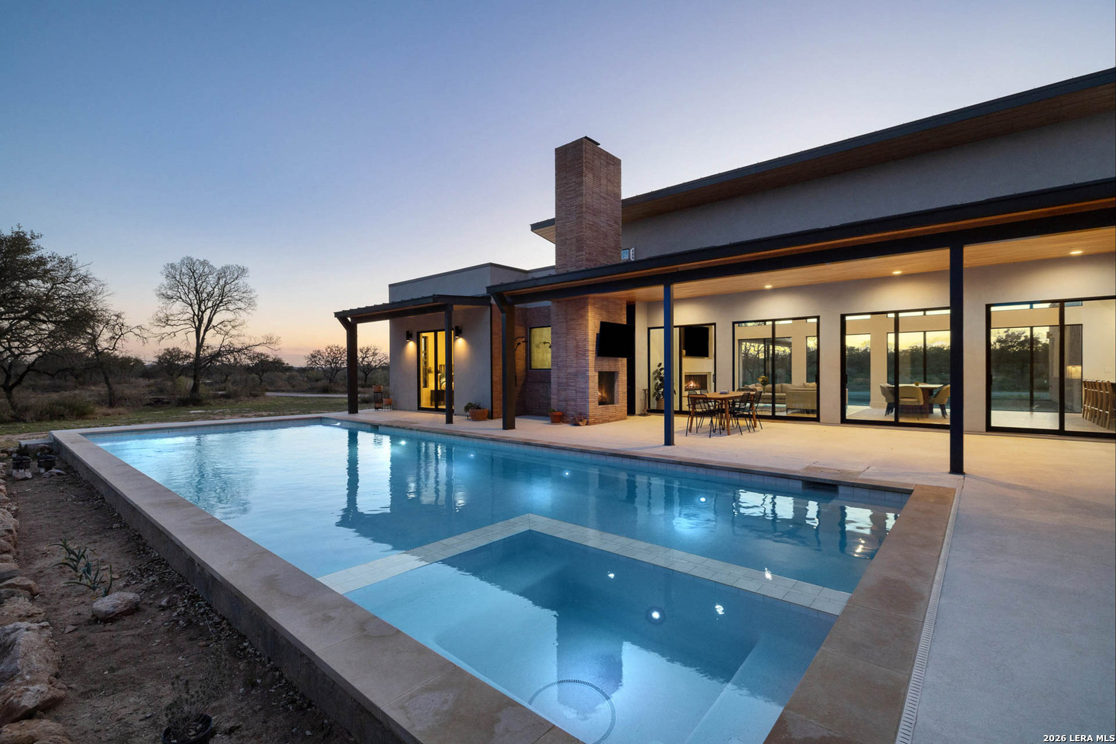 Welcome to an extraordinary private retreat in the heart of Texas Wine Country, where modern architecture meets the timeless beauty of the Hill Country-just one hour from Austin. Set on 2 individual tracts of land totaling 26 acres, with coveted Pedernales River access, this exceptional estate offers a rare balance of refined seclusion, boundless outdoor adventure, and income potential. Completed in 2023, the 3,100+/- sq.ft. contemporary residence is thoughtfully designed in a timeless double-wing floor plan, featuring 4 bedrooms, 3.5 baths, and remarkable indoor-outdoor living. Walls of windows throughout the great room infuse the home in natural light while framing sweeping vistas of the surrounding landscape. At the heart of the home, this gourmet kitchen is a true showpiece, appointed with GE Monogram commercial-grade appliances, a striking waterfall island with seating for 6, expansive workstation sink, an oversized walk-in pantry, elegant wine refrigeration towers, and a custom pet hydration station-perfect for both everyday living and elevated entertaining. The residence offers dual primary suites for ultimate privacy and flexibility, along with a third guest suite and a fourth bedroom ideal for an executive office, studio, or playroom. The Owner's Retreat is a serene sanctuary, highlighted by a private veranda, custom walk-in closet with direct laundry room access and stunning spa-inspired bath featuring a volcanic limestone soaking tub and glass-enclosed wet area. Outdoors, the estate unfolds like a private resort. An oversized lounge pool, jetted spa, and outdoor shower invite relaxation beneath wide Texas skies, while the D'Hanis brick fireplace and outdoor television create an unforgettable setting for al fresco dining and evening gatherings. Discreetly positioned on the contiguous acreage to the main residence are 2 bespoke cabins encircled by post oaks: Casa Serena is 1000+/- sq.ft. of pure enchantment, this vibrant 2-bedroom casita comfortably sleeps 4 and offers a full-sized kitchen with eat in island, wine fridge, and lavish bath. Casa de la Paz - light filled and airy, this modern cabin defies its square footage by emoting a feeling of living in the outdoors with a 400+/- sq.ft. footprint it exudes fun and efficiency. An inviting front porch opens to this charming A-Frame featuring shiplap ceiling, spacious kitchen and full bath. This offering is enhanced with access and ownership in a 5 acre tract of land stretching 850+/- along the Pedernales River, carved over ancient limestone shelves and canopied with mature cypress trees. Coupled with free ranging axis, whitetail, turkey, and rare exotics that commonly meander through heritage oaks, this acreage is truly an ideal setup for outdoor enthusiasts who wish to hunt, fish or simply enjoy nature at its finest. Impressive and thoughtful infrastructure include an all-weather road, underground power, 2 rainwater harvesting systems along with 2 private wells. Additionally, both parcels benefit from a current agricultural exemption and no oversight of an HOA. Ideally located just 20 minutes from the shops and dining of Fredericksburg's iconic Main Street, within walking distance to renowned wineries, the historic LBJ Ranch, this one-of-a-kind property offers a rare opportunity to own a modern Hill Country sanctuary where luxury, land, and lifestyle converge.