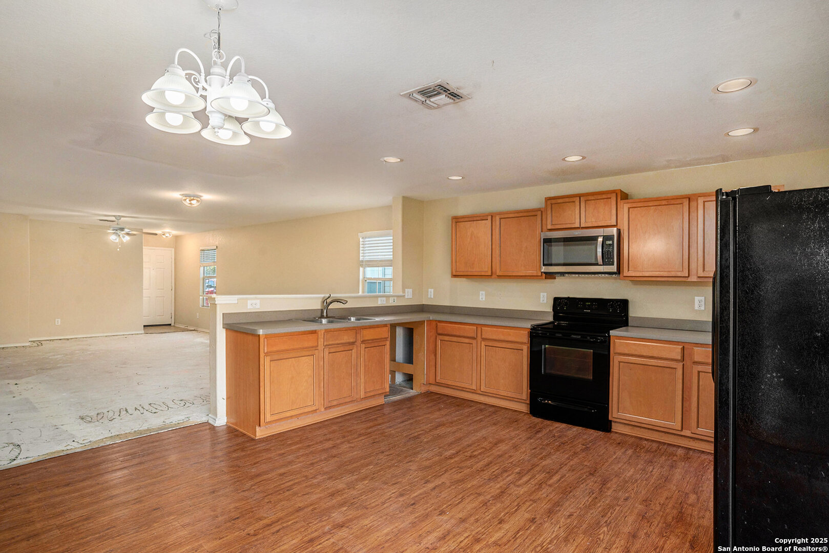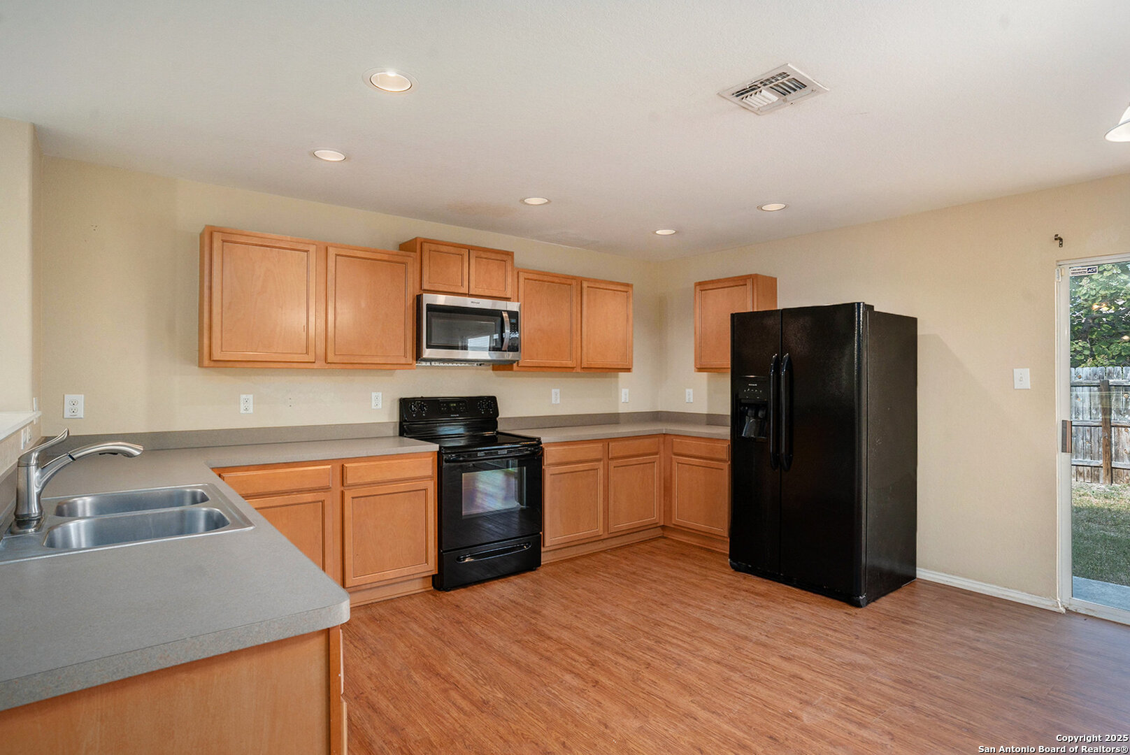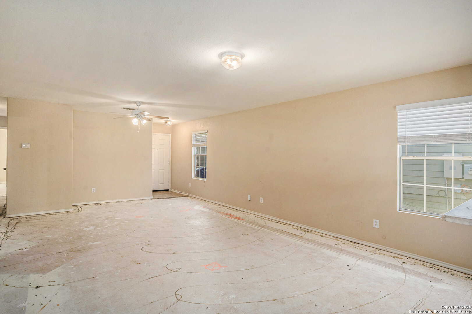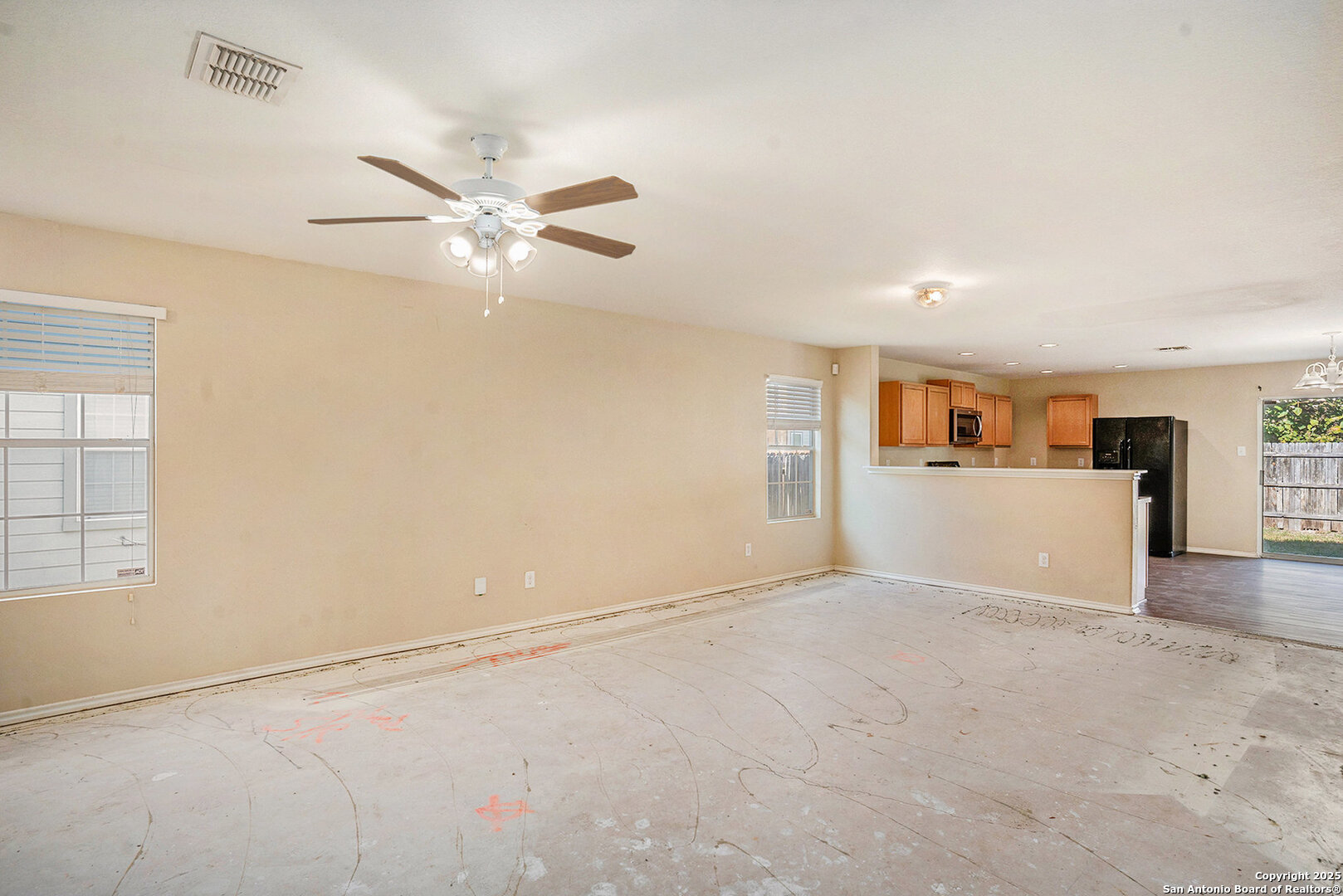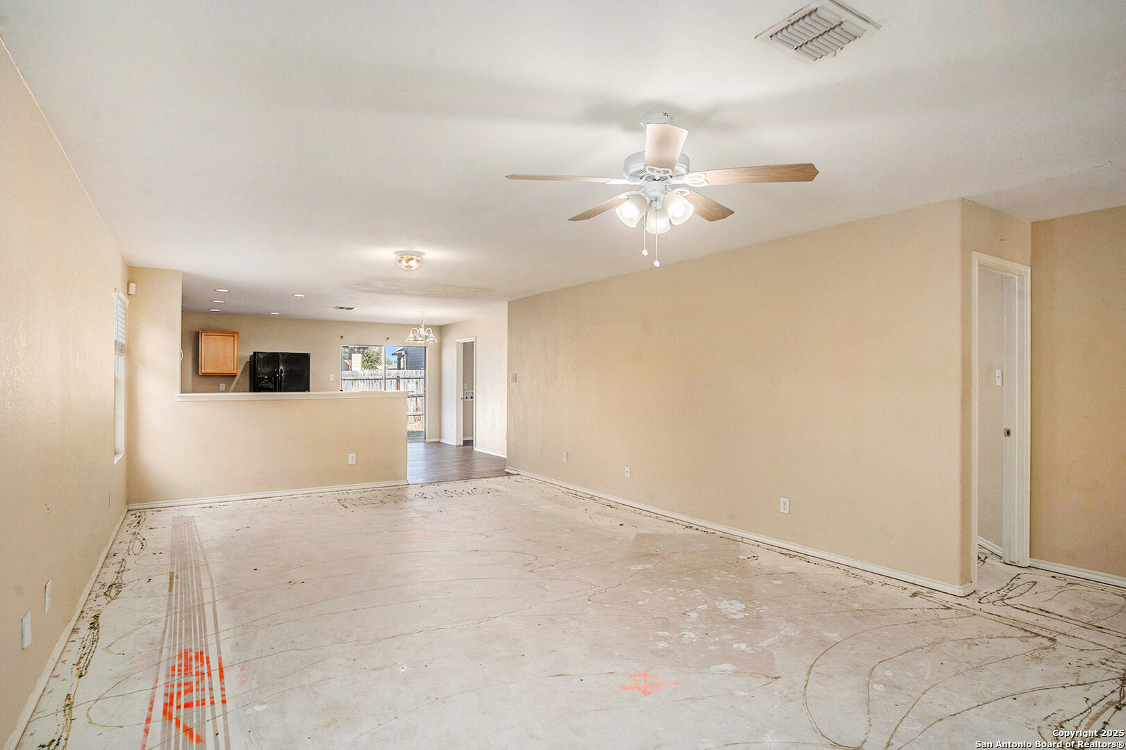 Welcome to this charming 3-bedroom, 2-bathroom home with a 1-car garage in a quiet neighborhood in southeast San Antonio. The home features an open-concept floor plan, creating a seamless flow between the living room, kitchen, and dining space. The dining area offers direct access to the fenced-in backyard. This property perfectly balances suburban charm with city convenience, located just minutes from Brooks City Base, shopping, restaurants, and major highways. Schedule your showings today!