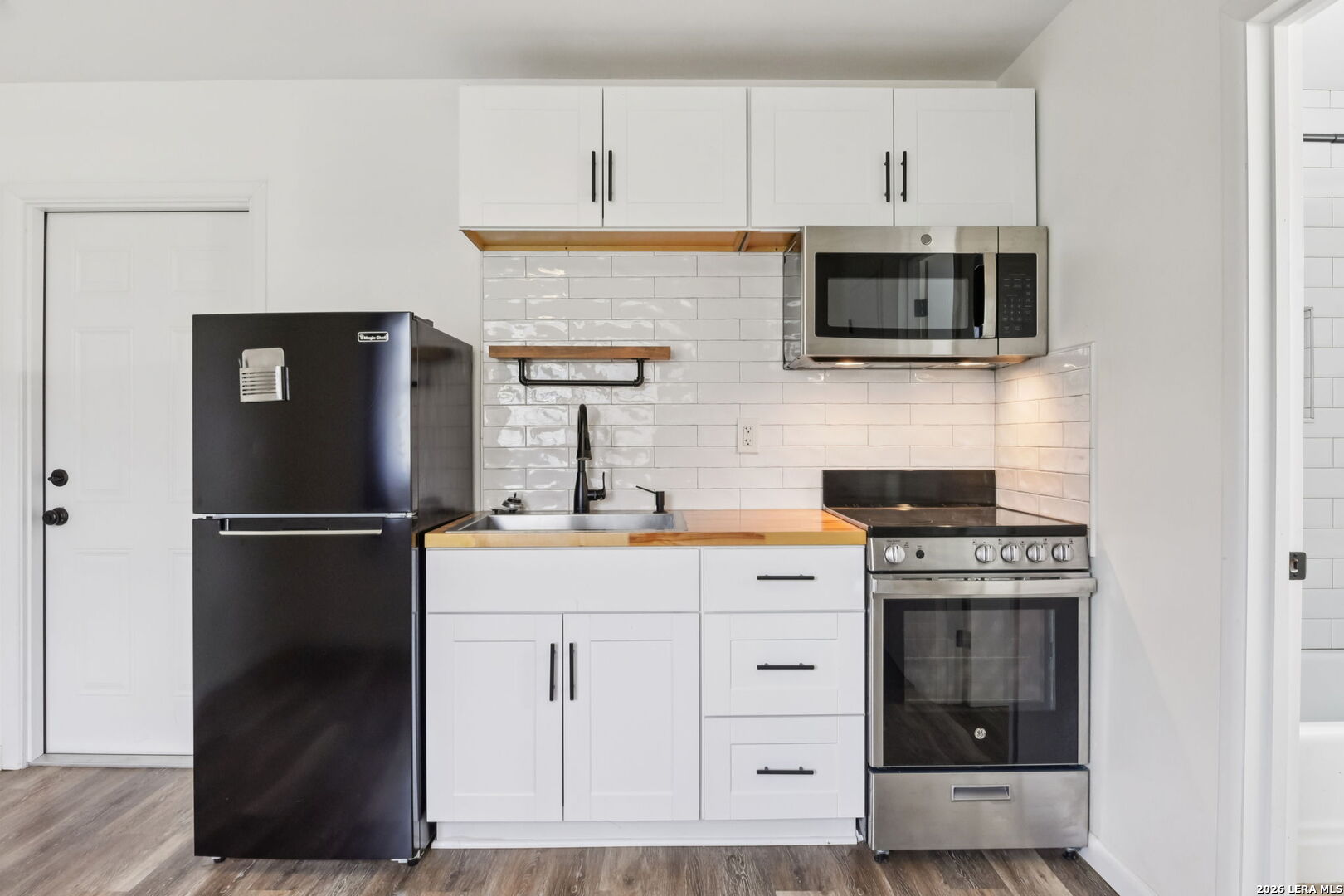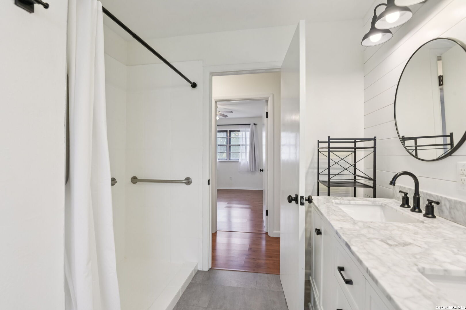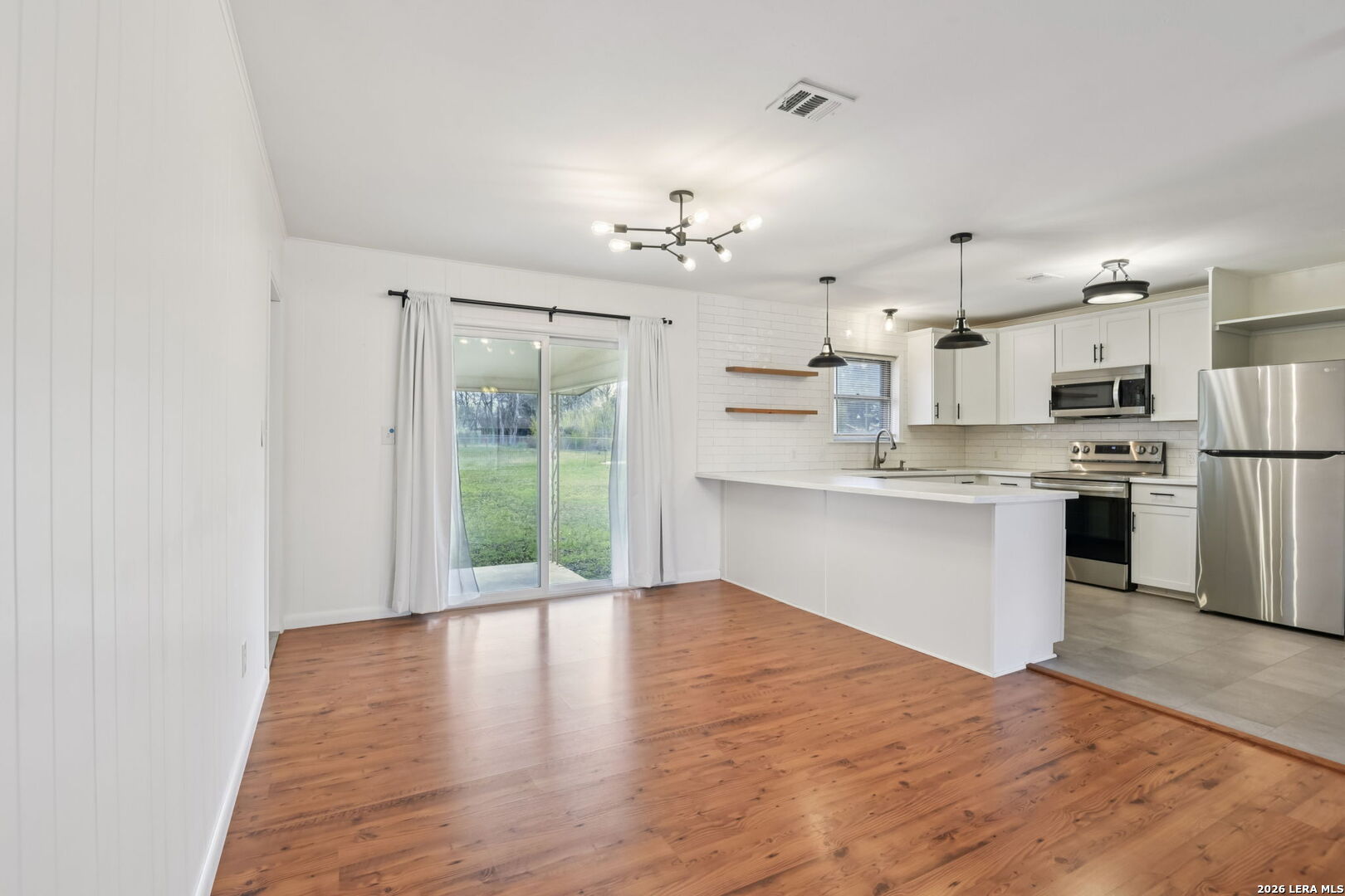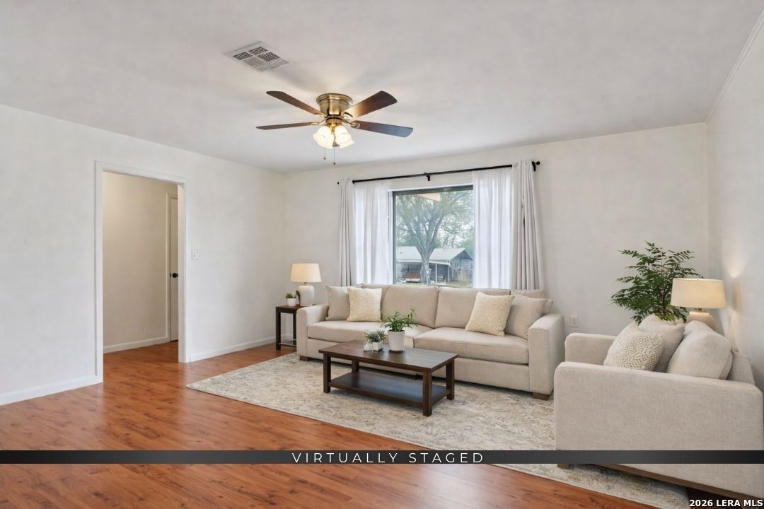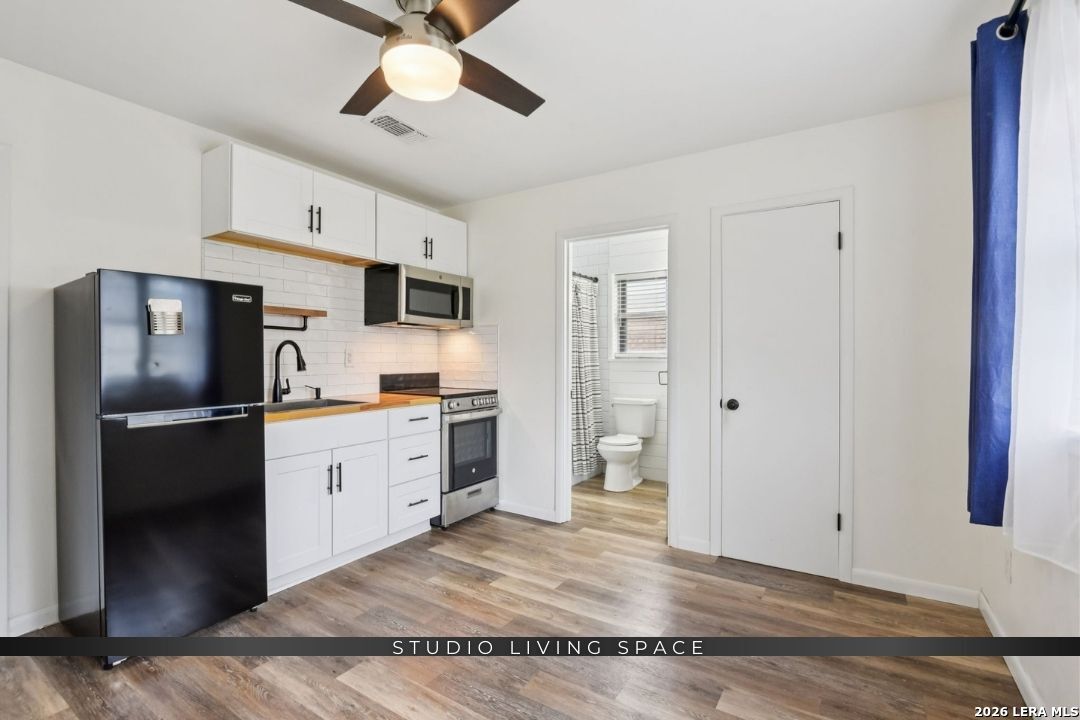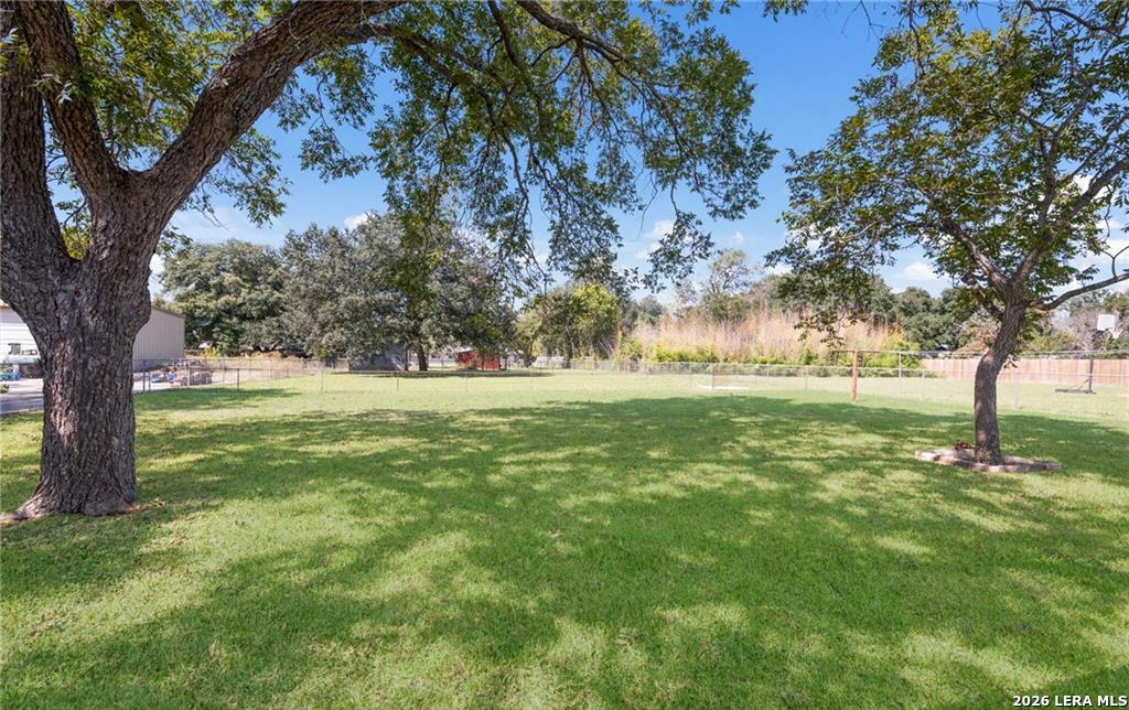 This beautifully updated home sits on a spacious 0.426-acre lot with mature trees and plenty of backyard space to enjoy. Inside, you'll find a renovated kitchen, three updated bathrooms, and a bright, functional living area filled with natural light. A standout feature is the studio space with a full bathroom and kitchenette, complete with a stove, sink, cabinets, and refrigerator. While part of the main structure, the studio has private access through the garage or backyard patio, making it ideal for guests, extended family, or flexible living arrangements. The property is zoned R-2, offering additional possibilities for future use. The backyard features a cross fence dividing the yard, a large covered patio, and ample space to enjoy the outdoors. Additional highlights include a new roof installed in 2024 and durable four-sided masonry construction. Residents also enjoy Lake Dunlap/Guadalupe River park access, which includes paved parking and a sidewalk leading to a fishing bulkhead. Conveniently located near I-35, the home offers easy access to San Antonio and Austin.