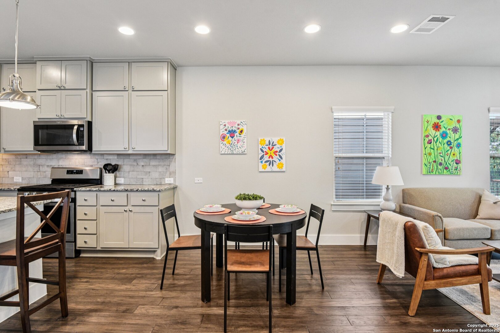 Perfectly located on the Broadway corridor a block from Mahncke park, two blocks from the Botanical Gardens, and very close to Brackenridge Park, the Zoo, DoSeum and The Pearl among so many other things! Welcome to 445 Natalen Ave, a beautifully designed 3-bedroom, 2.5-bathroom home located in the highly desirable Mahncke Park. Built in 2019 by Imagine Built Homes, this stunning 2-story single-family residence offers the perfect blend of style, comfort, and convenience with 1,800 sq ft of open-concept living space. Step inside to find a spacious living and dining area filled with natural light, seamlessly flowing into the gourmet kitchen featuring a center island, modern finishes, and a large walk-in pantry. The downstairs also includes a half bath for guests and access to the attached 1-car garage. Step outside to the covered back patio and backyard space perfect for pets or family. Upstairs, the primary suite offers a spacious retreat with a large primary bedroom, ensuite bathroom, walk-in closet, and direct access to the upstairs laundry room. Two additional bedrooms share a well-appointed full bathroom, perfect for family or guests. Additional highlights include: Open-to-below layout creating a light and airy feel, Convenient upstairs laundry room, Low-maintenance yard, Easy access to the Pearl District, Downtown San Antonio, and Fort Sam Houston, Located within the Hawthorne Academy school district, Whether you're a first-time homebuyer or looking to upgrade, this move-in-ready home offers modern living in a walkable, centrally located neighborhood with quick access to shopping, dining, and entertainment.