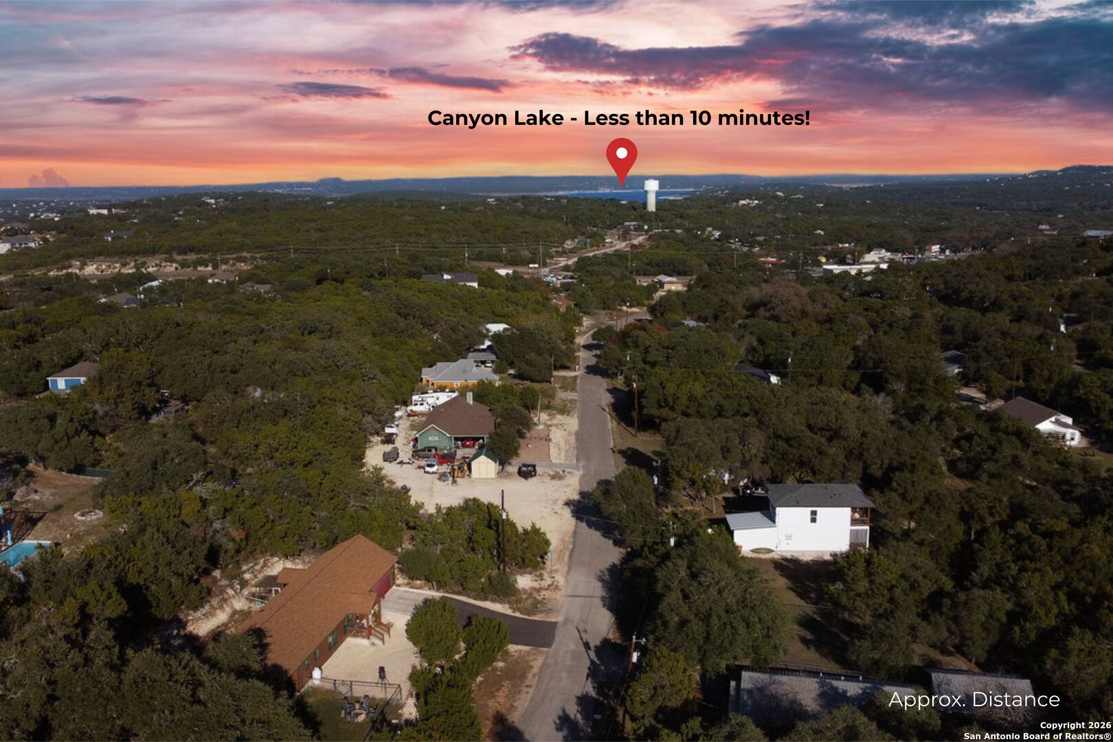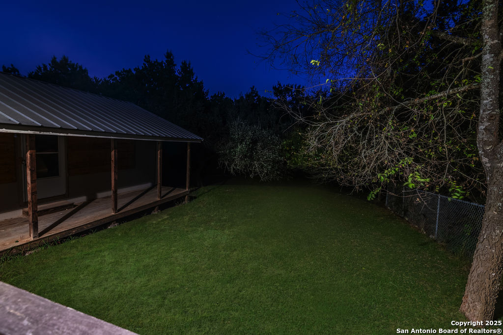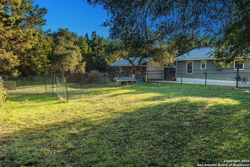 Set on two combined lots, on over .28 acres, in the heart of Canyon Lake, this thoughtfully maintained one-story home offers space, versatility, and a lifestyle that's hard to find. With 3 bedrooms and 2 baths, the home features a freshly painted interior throughout; walls, ceilings, trim, doors, and closets, paired with brand-new carpet installed after painting for a truly move-in-ready feel. The fenced yard is ideal for those who enjoy a more self-sufficient way of living, complete with a matching doghouse, a chicken coop, rabbit hutches, garden area, and compost setup. Behind the property line, a natural dry creek adds to the setting-flowing just a few inches during heavy rainfall and creating a beautiful, peaceful backdrop. With no center utility easement across the lots, the outdoor space is both usable and flexible-perfect for enjoying quiet mornings, tending a garden, or gathering outdoors after a day on the lake. A rare detached building adds even more value, offering endless possibilities as a home office, man cave, she-shed, or additional storage. A designated area where the brush pile is currently located has been leveled with sand and bordered by limestone rock, offering an ideal spot for an above-ground pool once burn restrictions are lifted. Two covered porches create inviting spaces to relax, whether you're sipping coffee, unwinding in the evenings, or enjoying the Hill Country breeze. Inside the main home, a custom Mesquite bar-milled from the builder's family ranch - adds a one-of-a-kind detail that truly needs to be seen in person. Located just minutes from Canyon Lake access, this property makes it easy to enjoy boating, swimming, hiking, and the laid-back lake-town atmosphere. With nearby schools, local dining favorites like Gennaro's Trattoria, and everyday conveniences close by, this home offers a balanced Canyon Lake lifestyle that blends outdoor living, character, and comfort!