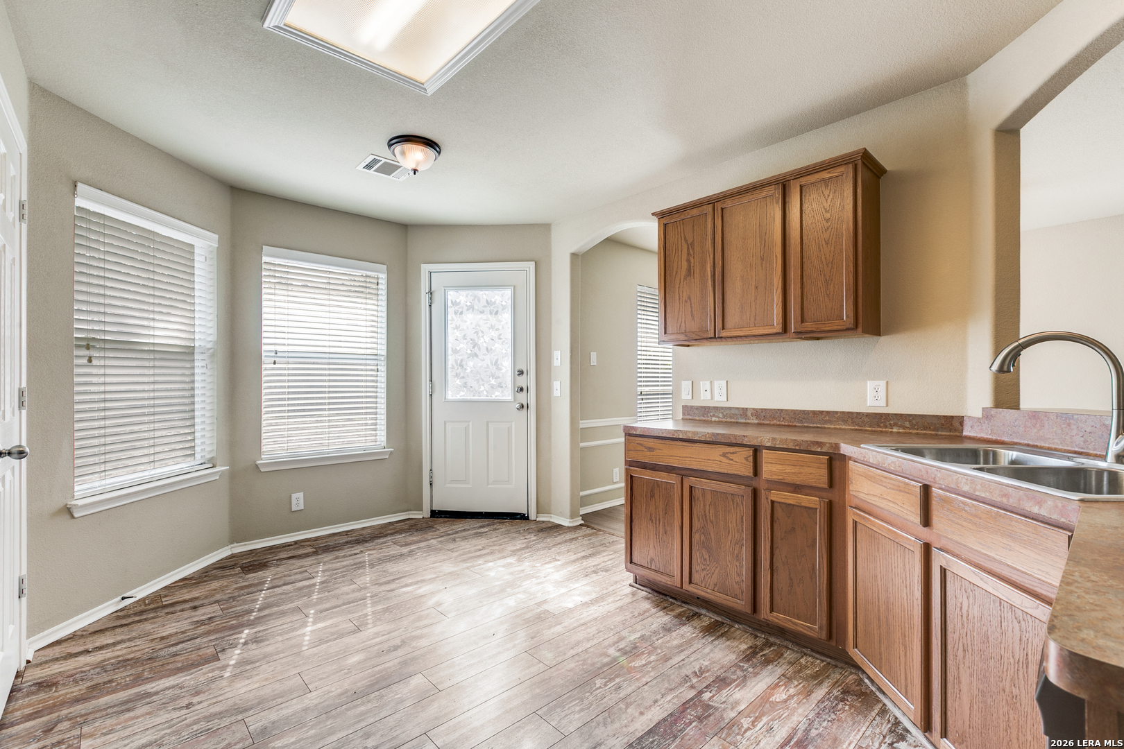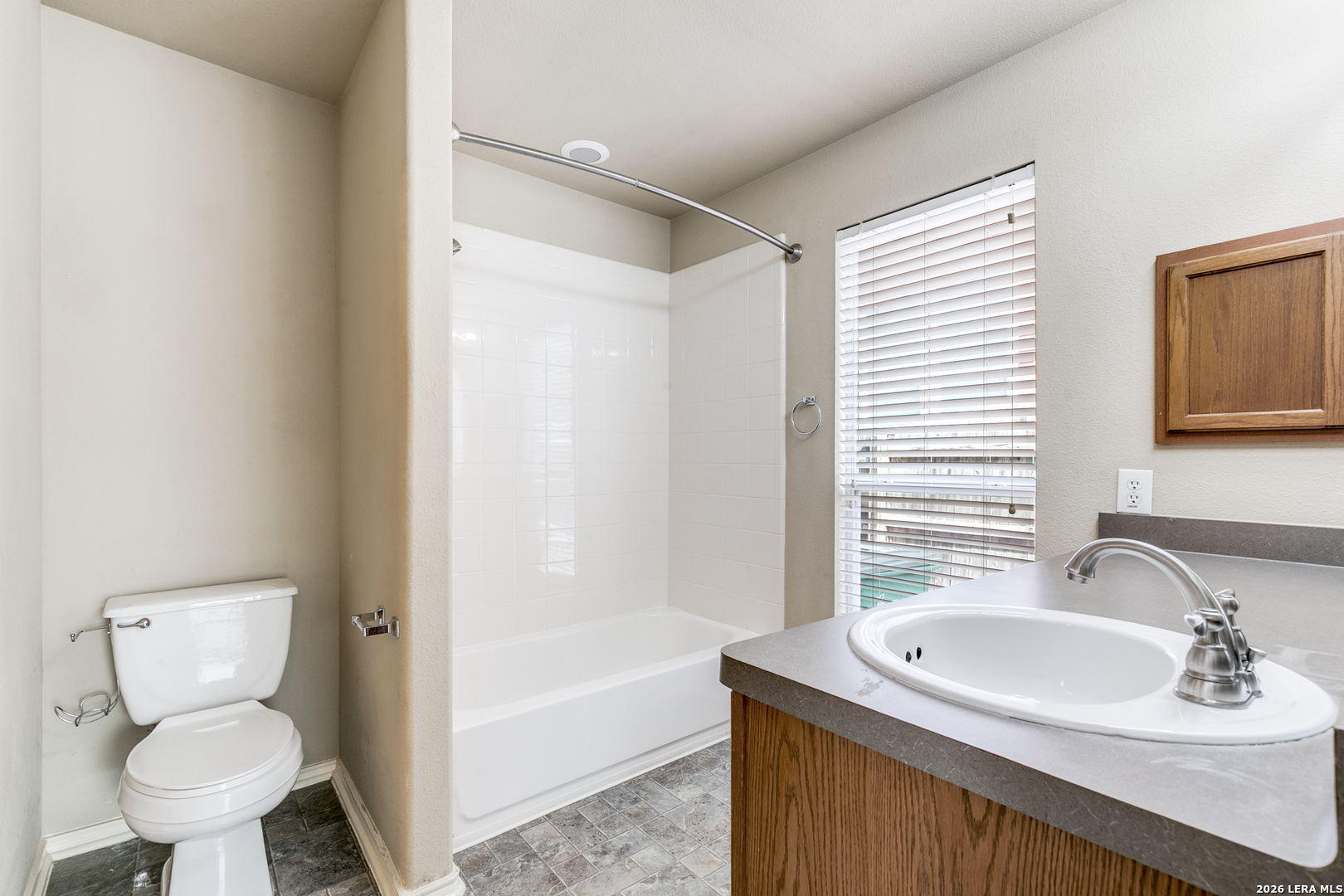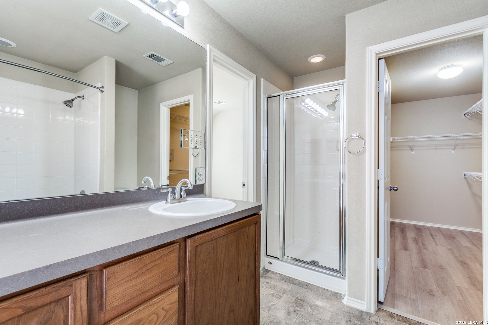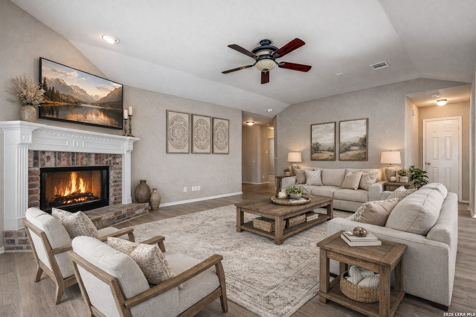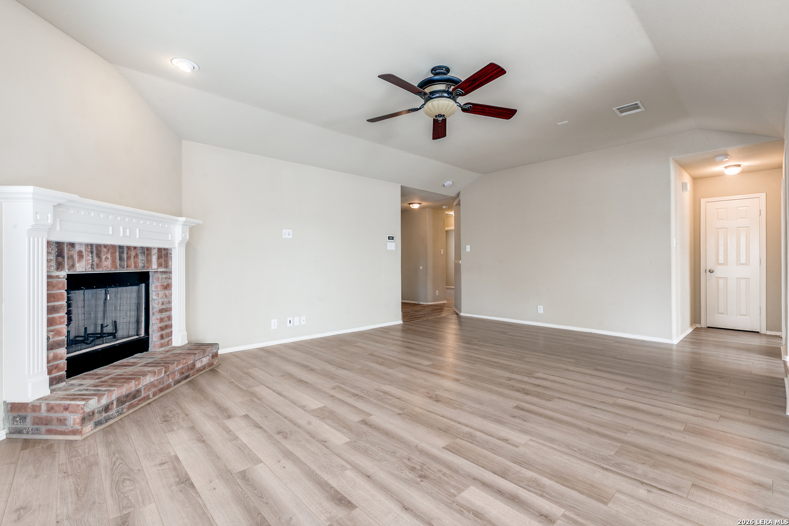 **OPEN HOUSE 2/21/26 SATURDAY 11:00 AM - 1:00 PM ** - Rare single-story in highly desirable Trophy Ridge offering 3 bedrooms, 2 full baths, and no interior steps - a true find in this area. The open-concept layout features high ceilings, laminate flooring, and a spacious living room centered around a warm corner fireplace. The kitchen offers abundant cabinet and counter space and flows effortlessly into the dining and family areas, making everyday living and entertaining seamless. The oversized primary suite includes a sitting area, large walk-in closet, and a private bath with garden tub and dual showers for a spa-like retreat. Secondary bedrooms are generously sized and versatile for family, guests, or home office needs. Mature trees, a welcoming front porch, and preserved green space enhance the curb appeal and neighborhood charm. Residents enjoy access to community pool, walking trails, and sports courts. Ideally located minutes from Loop 1604 and Highway 151, with quick access to Lackland AFB, USAA, Medical Center, and UTSA. Convenient to Dove Creek and Alamo Ranch shopping, including Costco, Walmart, H-E-B Plus, dining, and entertainment. Single-story homes in this location move quickly - schedule your showing today!!