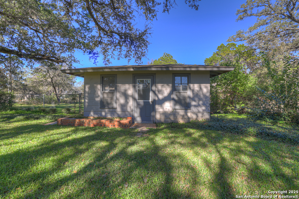 Discover a rare opportunity to own a charming home in one of the most prestigious neighborhoods in New Braunfels with exclusive Island privileges and direct access to the picturesque Comal River and for kayaking, picnics, volleyball matches, and grilling sessions, plus the option to reserve areas for family reunions. Nestled on an expansive 1.814-acre park-like lot adorned with majestic oak trees, this spacious 2,903 square foot home features three generous bedrooms and four bathrooms. Additionally, a versatile flex room can serve as guest quarters, a home office, or a playroom for children. For those with creative projects, a large metal workshop and a convenient storage shed provide plenty of room for all your needs. There is plenty of room to add an outside pool and entertaining oasis or to build another home or casita on the property for multi-generational living.