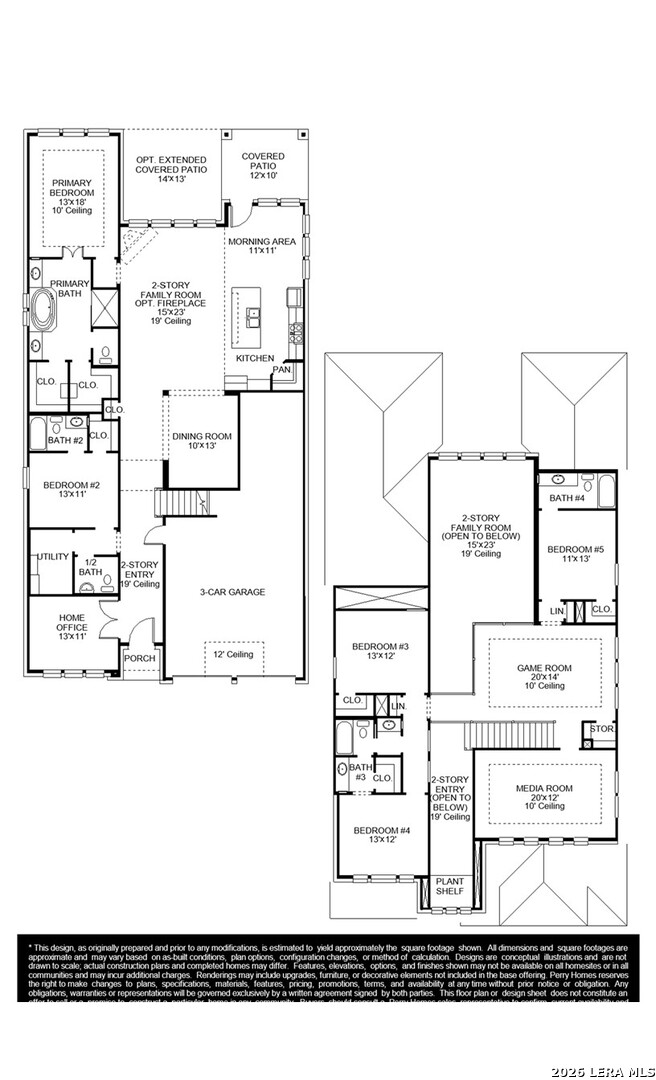 Home office with double doors framing the entry. The two-story entry extends past the dining room to the kitchen and family room. Island kitchen offers built-in seating space, a 5-burner gas cooktop, and a corner walk-in pantry. Formal dining room. Two-story family room with 19-foot ceiling and a wall of windows and a wood mantel fireplace. Morning area just off the kitchen offers a beautiful view of the backyard. Primary suite with three large windows. Primary bathroom features a French door entry, dual vanities, a freestanding tub, separate glass enclosed shower and two walk-in closets. Guest suite with a full bathroom and a walk-in closet on first level. Second floor hosts a large game room, media room, an additional guest suite and secondary bedrooms with a Hollywood bathroom. Additional storage space, half bathroom, linen closet and a utility room completes this generous design. Extended covered backyard patio. Three-car garage.