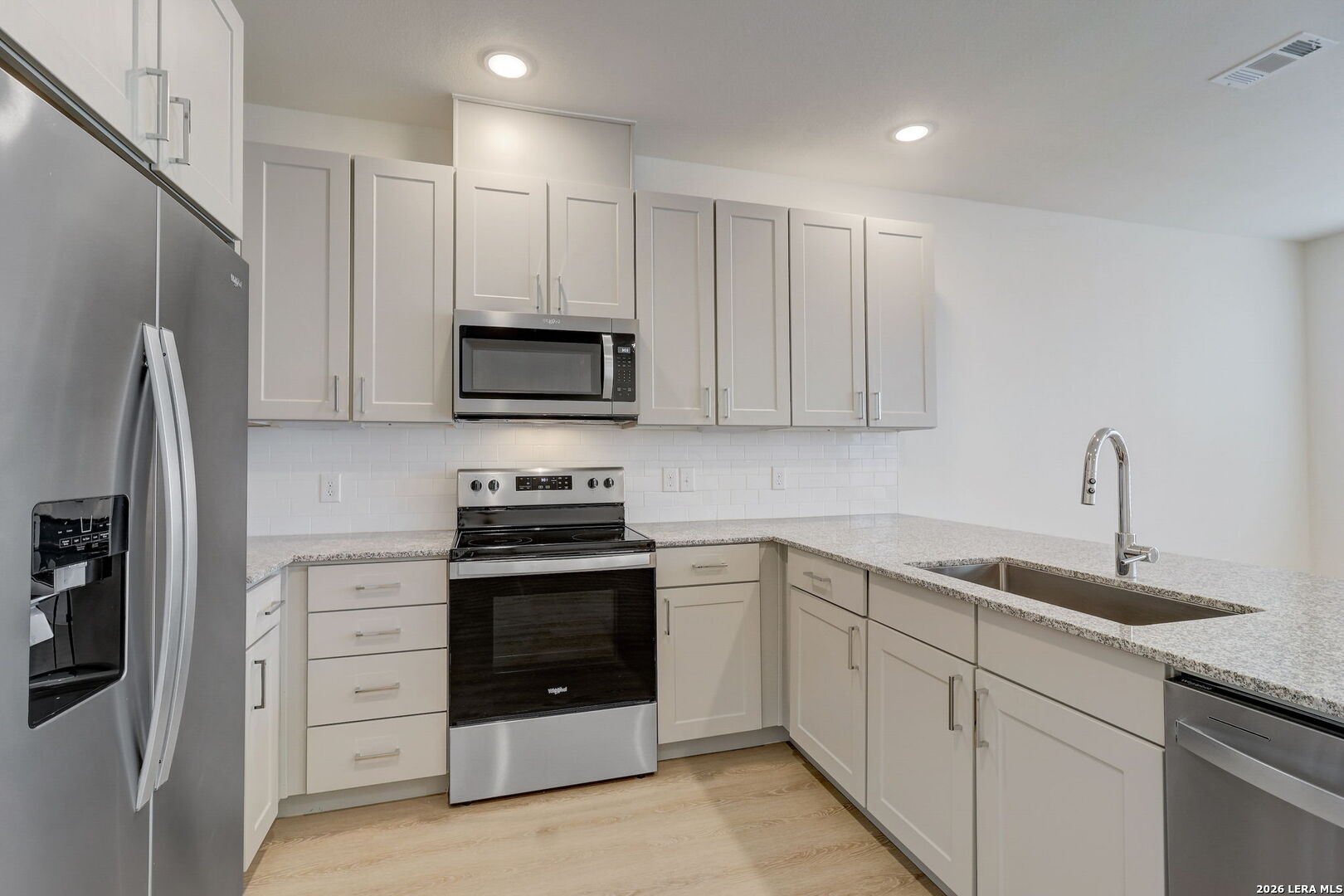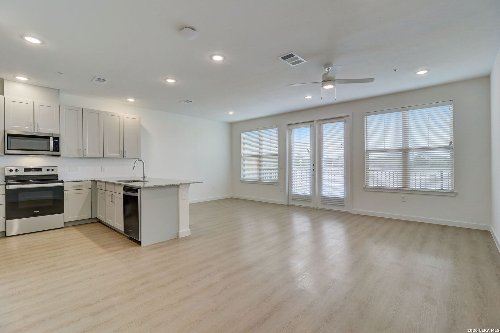 Caliza at the Loop features upscale architectural design with high-end finishes, such as hardwood flooring, granite countertops throughout, and gourmet kitchens with premium stainless-steel appliances. Our spacious interiors offer generous living spaces with high-ceilings, large windows that maximize natural light creating an airy environment, neutral color palates, and multi-functional spaces. Each home has a private outdoor space with patio, perfect for entertaining or relaxation.
