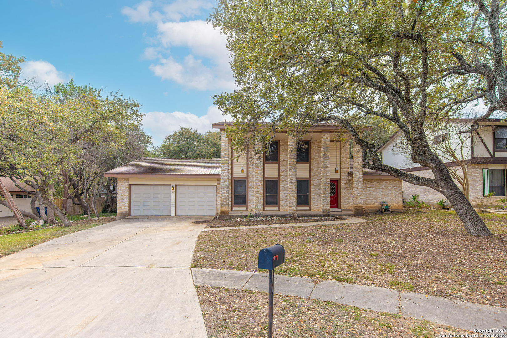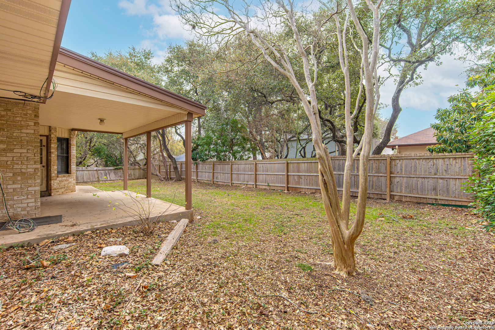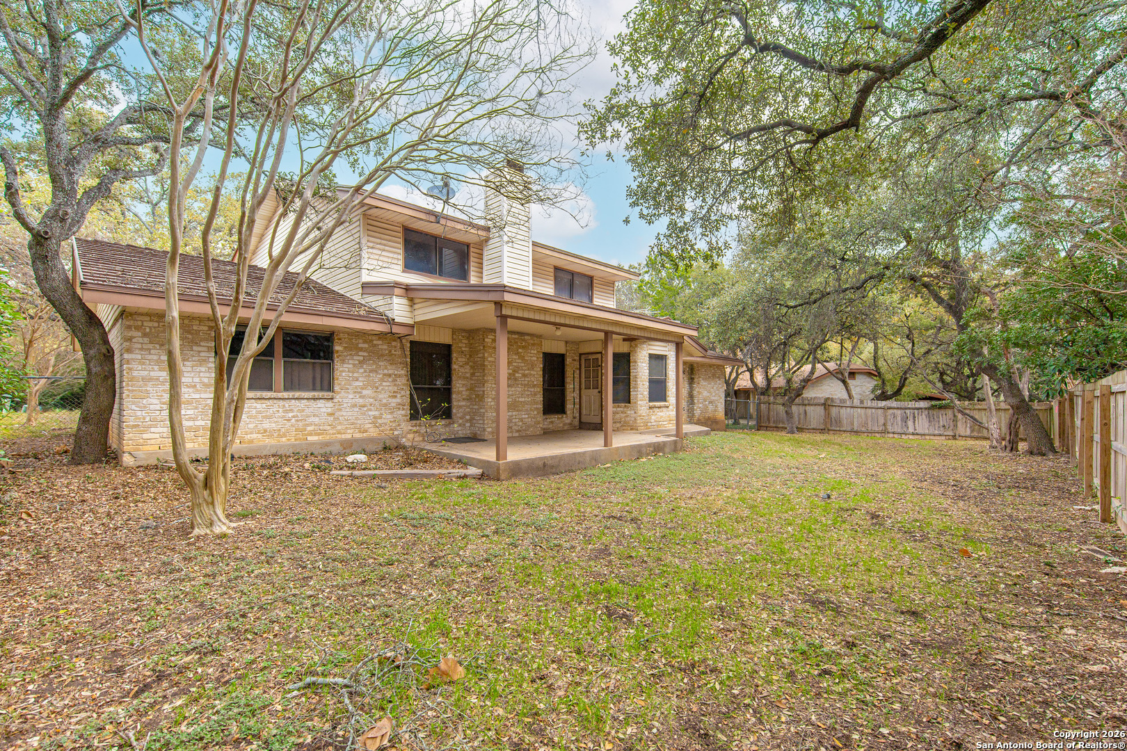 Welcome to 4510 White Elm Woods St, a 4-bedroom, 2-bath home nestled on a quiet cul-de-sac with a generous .20-acre backyard, offering privacy, space, and endless potential. Inside, the home features beautiful wood ceiling beams that add warmth, character, and architectural charm, along with spacious bedrooms that provide comfort and flexibility for your needs. The home presents a fantastic blank canvas for buyers who want to customize and create their dream home in a location that rarely becomes available. Priced to reflect its condition, this property offers an exceptional opportunity for those seeking entry into Woods of Shavano. Woods of Shavano is one of Northwest San Antonio's most desirable, established communities-is known for its peaceful atmosphere, mature live oaks, spacious lots, and strong sense of community, offering the perfect blend of quiet suburban living with unbeatable access to city amenities. Residents love this neighborhood for its tree-lined streets, sidewalks, community pools, parks, tennis courts, playgrounds, and strong neighborhood pride. The area is served by excellent Northside ISD schools and provides convenient access to Loop 1604, Highway 281, the Medical Center, UTSA, The Rim, La Cantera, Stone Oak Park, and Leon Creek Greenway-perfect for families, professionals, and retirees alike. With its mix of distinctive, well-built homes, walkable streets, and welcoming community feel, Woods of Shavano is a place where people truly feel at home. Pride of ownership is evident throughout the subdivision, and this home offers a rare chance to live in one of San Antonio's most beloved neighborhoods while adding your own personal touch.