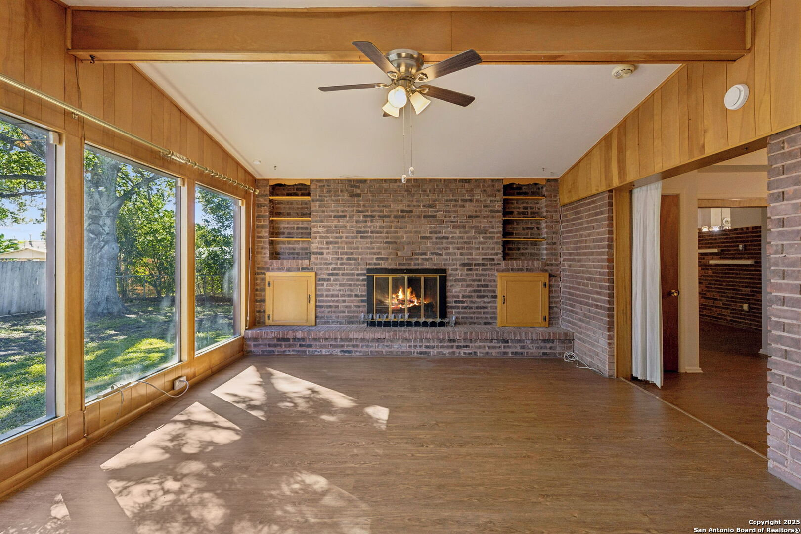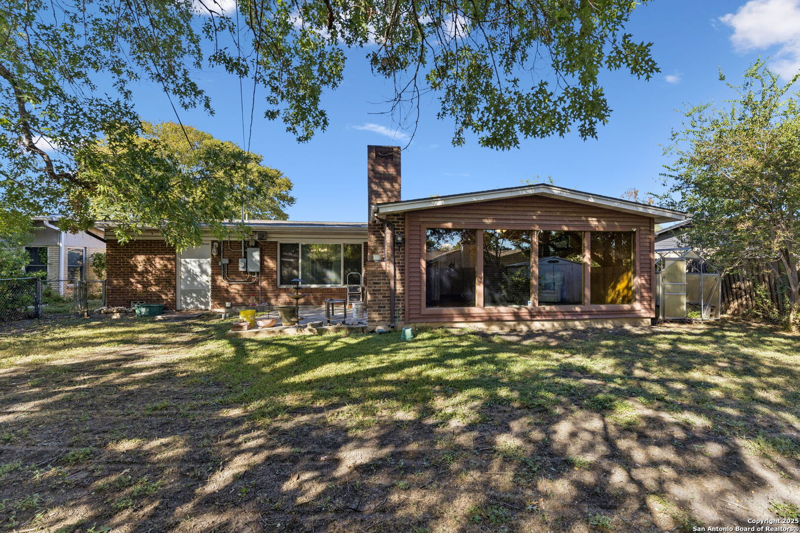 Charming Brick Home with Endless Potential Welcome to 4518 Tropical Dr - a solid, single-story brick home offering timeless character and incredible opportunity for those looking to add their personal touch. Nestled on a quiet, established street surrounded by mature trees, this property blends classic mid-century charm with space to create your dream design. Step inside to discover an inviting layout with warm wood-style flooring, generous living areas, and a signature brick feature wall that adds unique architectural interest. The sun-filled den with floor-to-ceiling windows provides a beautiful view of the backyard and creates the perfect setting for gatherings or quiet mornings with coffee. The kitchen boasts ample cabinet space, vintage wood cabinetry, and a functional layout ready for modern updates. Each bedroom is well-sized, with large windows offering plenty of natural light. The bathrooms feature original tile and fixtures that speak to the home's retro appeal - perfect for preservation or a stylish renovation. Out back, you'll find a spacious yard shaded by mature trees, ideal for gardening, play, or future outdoor entertaining. The attached garage and extended driveway provide convenience and additional storage options. Whether you're a first-time buyer ready to customize a home, an investor seeking a strong rental opportunity, or someone with a vision for renovation - 4518 Tropical Dr is a blank canvas with solid bones and endless potential. Highlights: All-brick exterior on a large lot Distinctive mid-century charm throughout Expansive living area with statement brick wall Light-filled den with panoramic backyard views Spacious bedrooms and vintage bathrooms Excellent renovation or investment opportunity Don't miss the chance to bring your vision to life in this well-loved home located just minutes from shopping, dining, and major highways for easy access across San Antonio. Schedule your private showing today and see the potential of 4518 Tropical Dr for yourself!