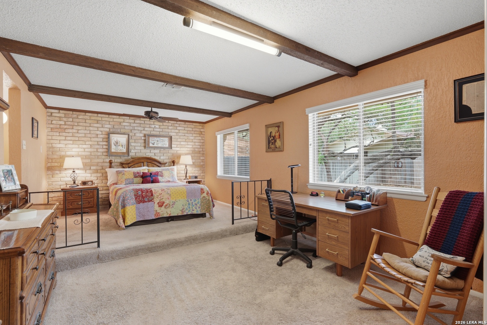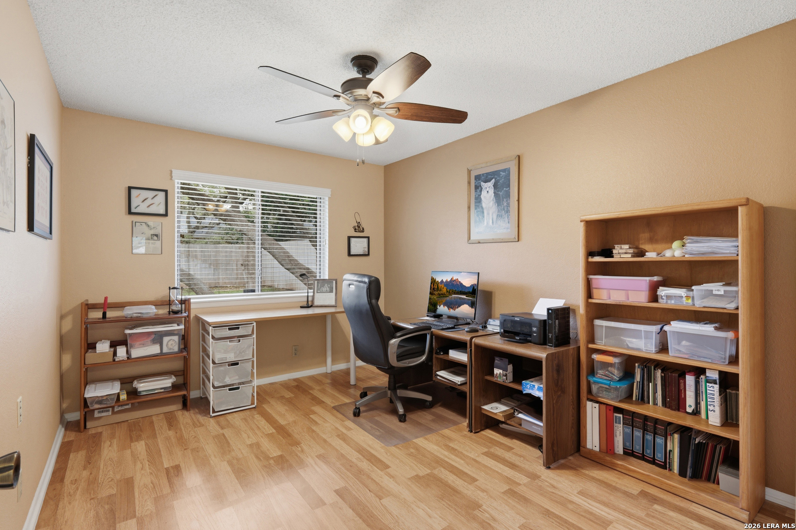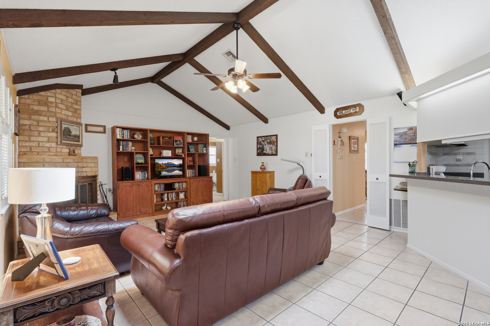 Welcome to Maybrook Woods, a four sided masonry single story in the popular Woods of Shavano on a lovely 75x120 lot with mature oak trees. Near restaurants, shopping, schools, USAA, Medical Center, Valero and UTSA. To top that off there is a neighborhood pool, park, playground and tennis court with a voluntary HOA. Take a peek inside and you will find a unique custom built Smith home. The spacious family room greets you with a vaulted ceiling, exposed wood beams, a fireplace and skylight. The huge master bedroom has a lovely brick wall feature and room for a sitting area. Lots of privacy for all as this floor plan has a split-bedroom arrangement. Enjoy your backyard oasis , BBQ and sit and watch the birds visit the recirculating water feature and flower garden. There is plenty of room to spread out with the oversized deck, covered patio (2016) and a large grill with a natural gas connection. Life is easy with the wood privacy fence (2024), full sprinkler system and the lovely flagstone walkway (2016).This home is move in ready while also offering a great opportunity for buyers to personalize and make it their own; the home has been very well maintained by the owners, roof replaced (2016), garage floor (2016) and trees trimmed (2025).