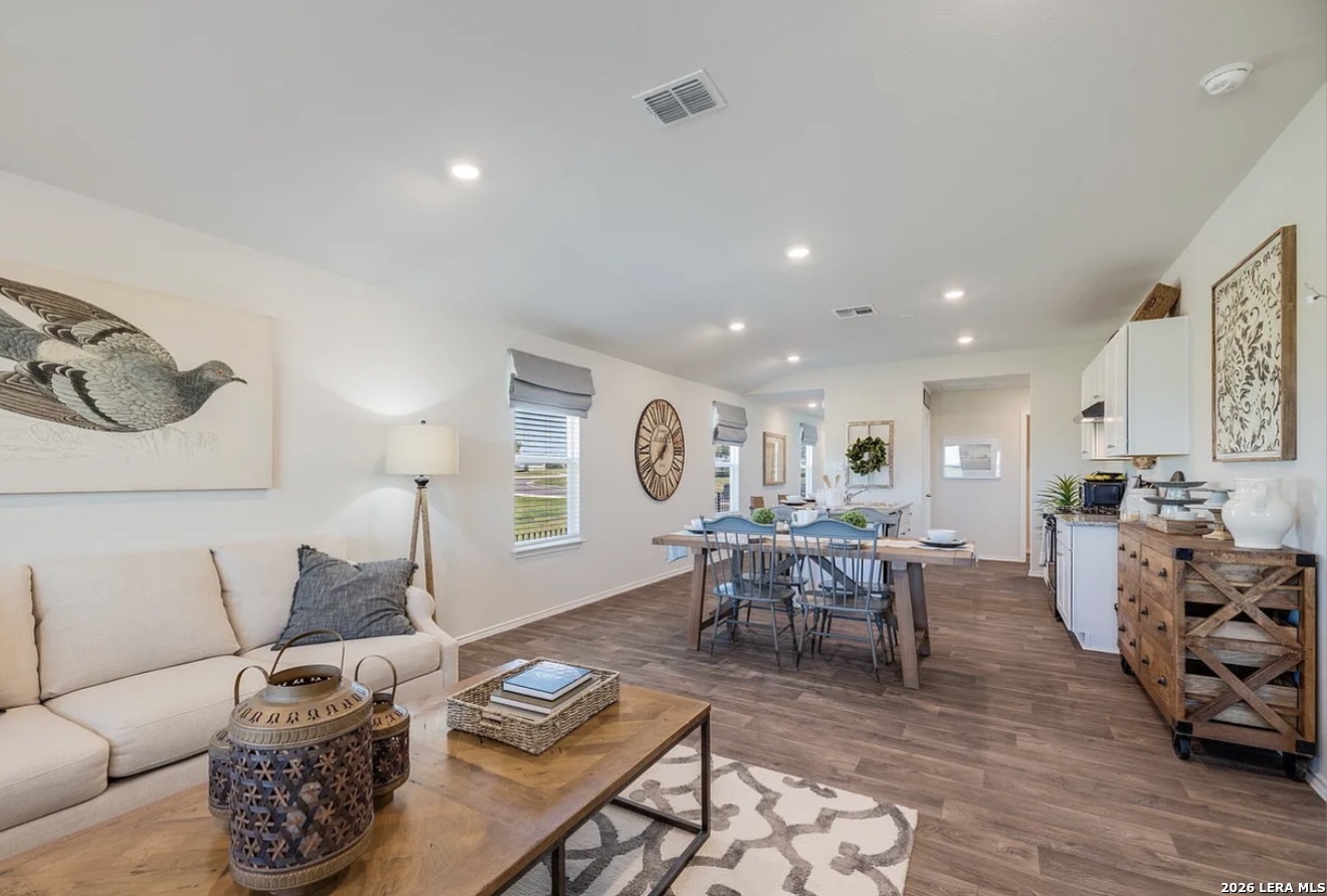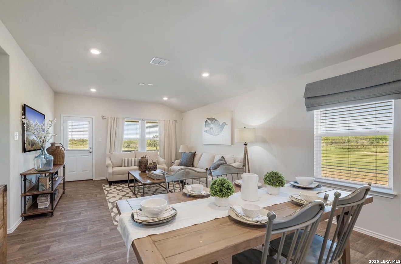 Beautiful Caroline one-story home featuring 3 bedrooms, 2 bathrooms, and a 2-car garage with a bright open-concept layout perfect for everyday living and entertaining. The inviting front patio leads into a gourmet kitchen with granite countertops, stainless steel appliances, and abundant cabinetry, flowing seamlessly into the dining and family rooms. conThe primary suite features a semi-vaulted ceiling and private ensuite bath, creating a comfortable retreat. Enjoy outdoor living with a covered rear patio (per plan) just off the family room. Additional features include durable vinyl flooring in the entry, living room, and wet areas, full yard landscaping with irrigation, and the HOME IS CONNECTED smart home package, allowing control of lights, thermostat, and locks directly from your phone. Buyer Advantage: This home is assumable potentially saving buyers hundreds per month compared to current mortgage rates. Flexible Opportunity: The home is also available for lease at $1,995/month while actively listed for sale, creating a great option for buyers who want to rent now and purchase later or investors seeking immediate rental potential. Homes with low assumable rates are extremely rare-schedule your showing today.