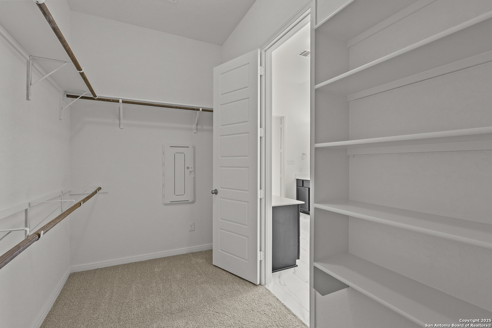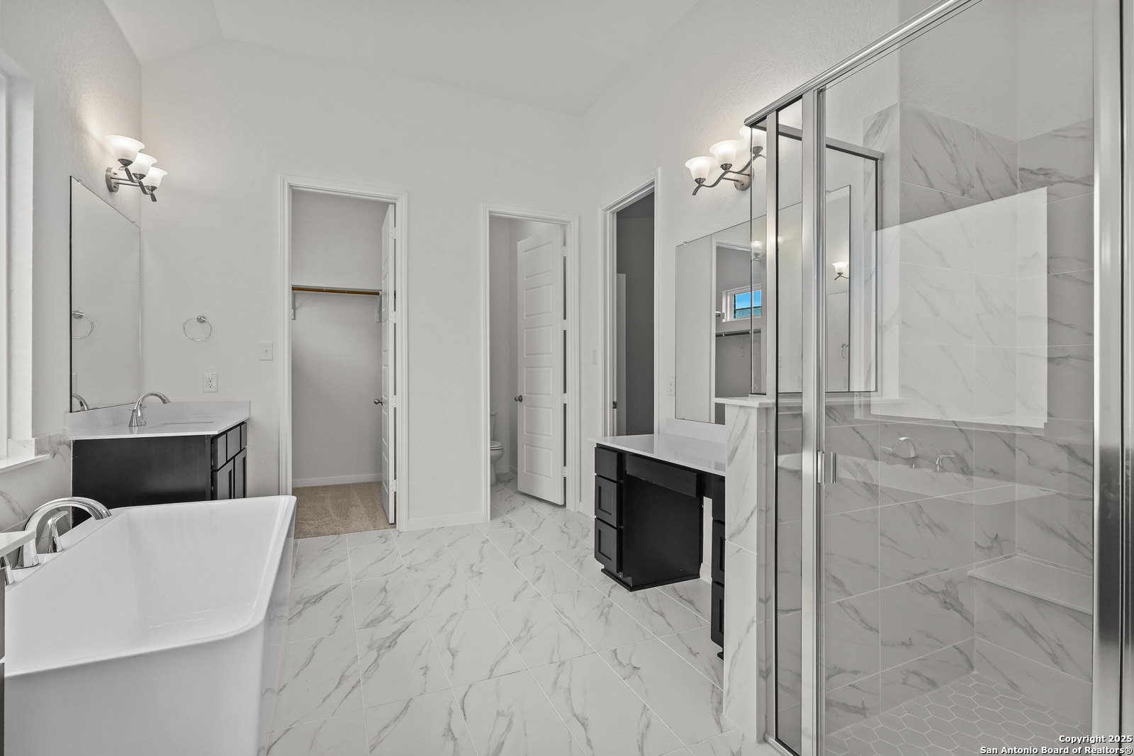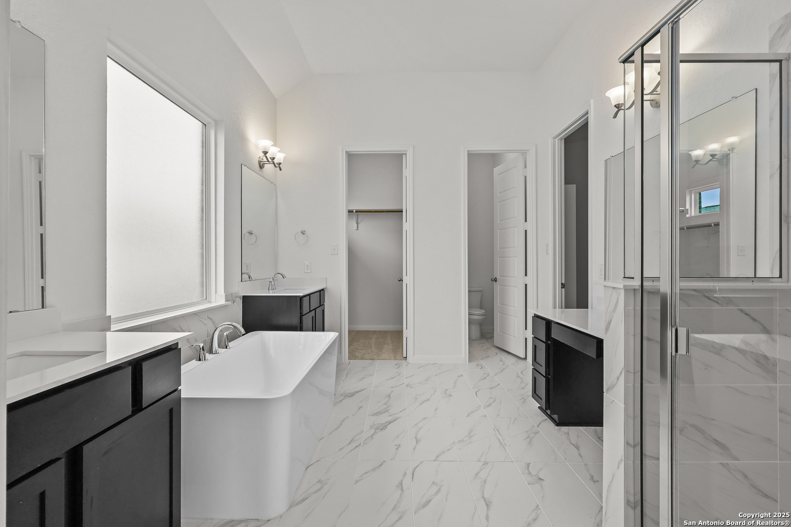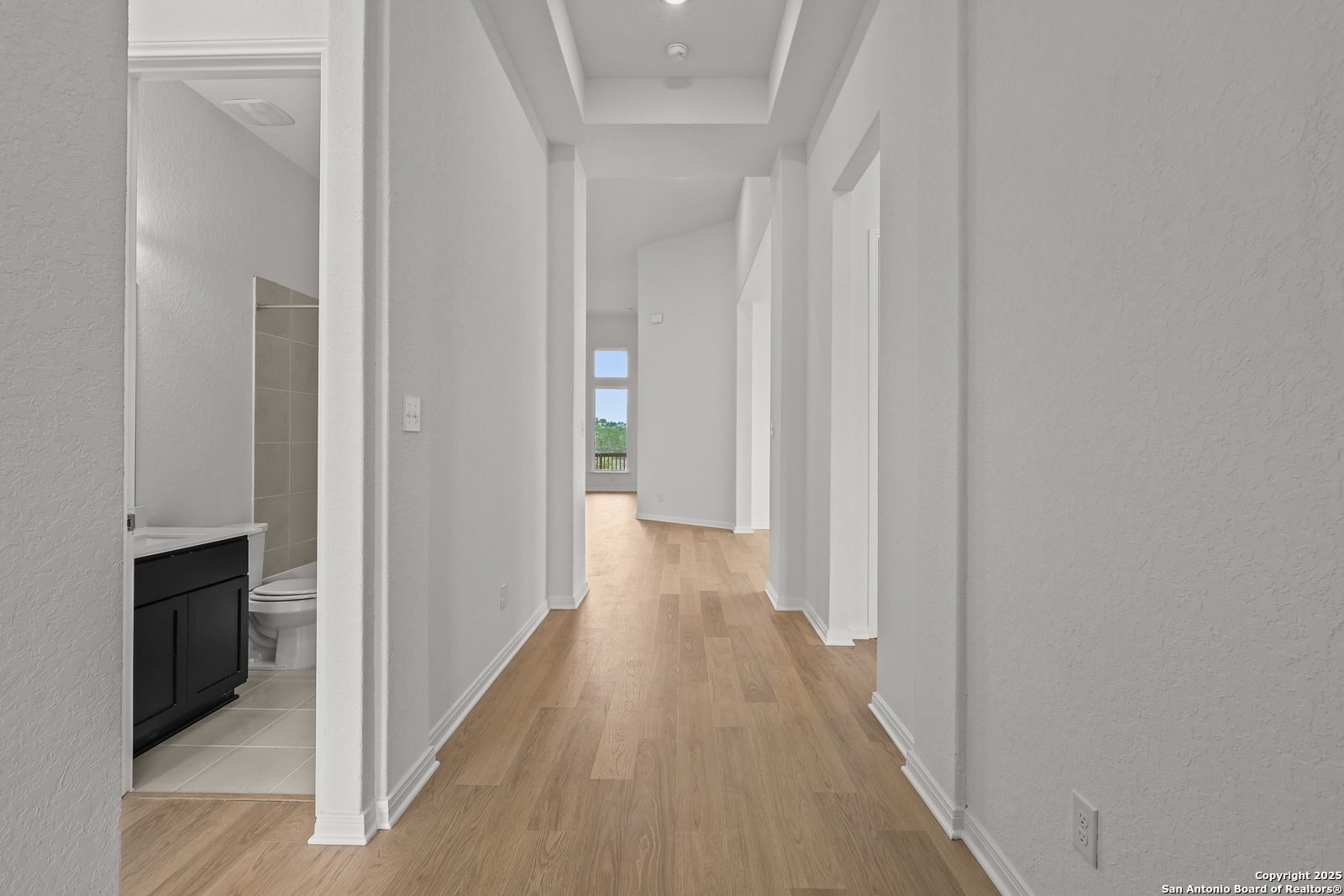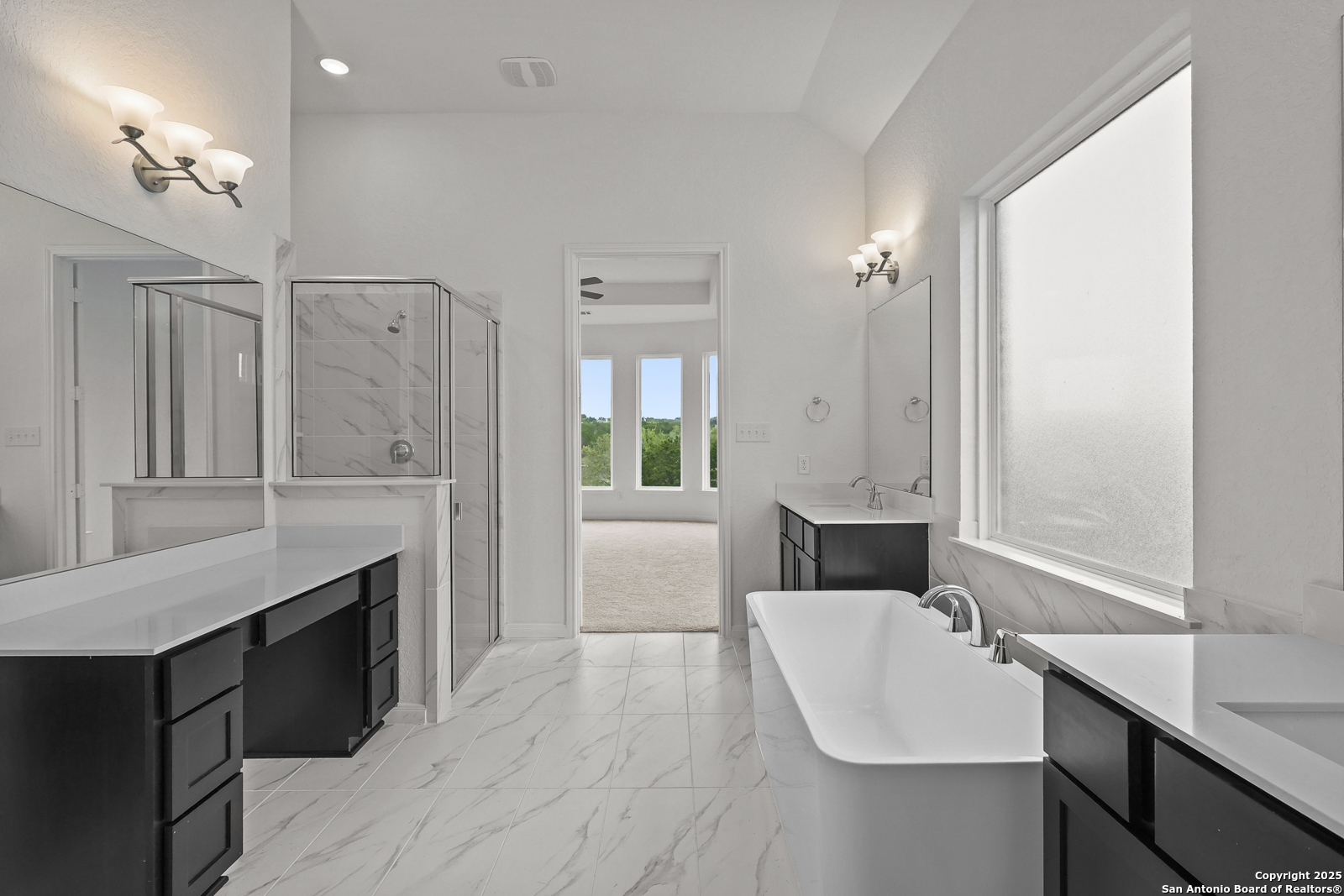 Welcome to your new home in the beautiful master planned community of Homestead! This is the amazing Hideaway model floorplan and it is stunning both inside and out! It boasts 4 beds and 4 full baths , a study, second living area, and a three car garage. Pull up to your very modern, elegant front exterior boasting stone stucco and brick! When you enter the home you will instantly fall in love with the sweeping 14 foot ceilings as well as the massive open concept of this one story ranch style home that boasts over 2800 square feet. There are gorgeous custom floors as well as upgraded counters, countertops, a freestanding tub and upgraded walk in shower in the primary suite and so much more. This home is truly a must see. This community features a swimming pool, splash pad,, a private fitness center, as well as a pavilion for gatherings and social events! This floorplan is truly one of a kind! Schedule your visit today!