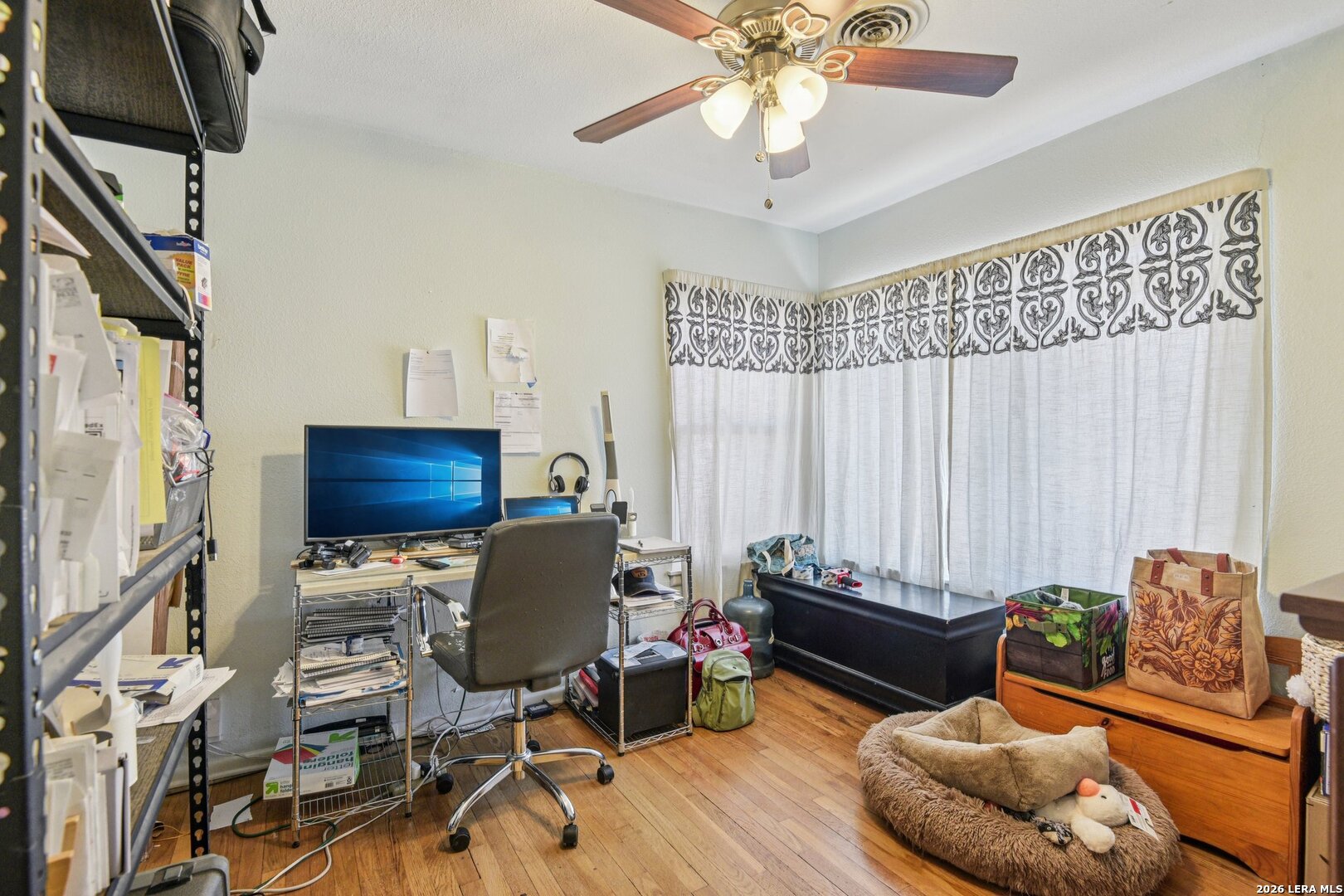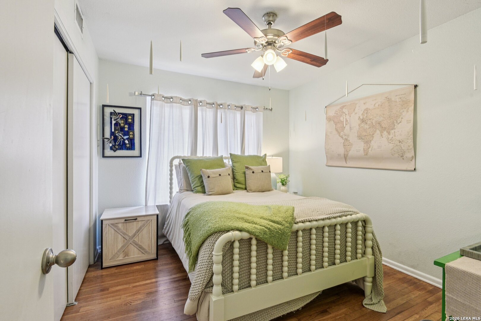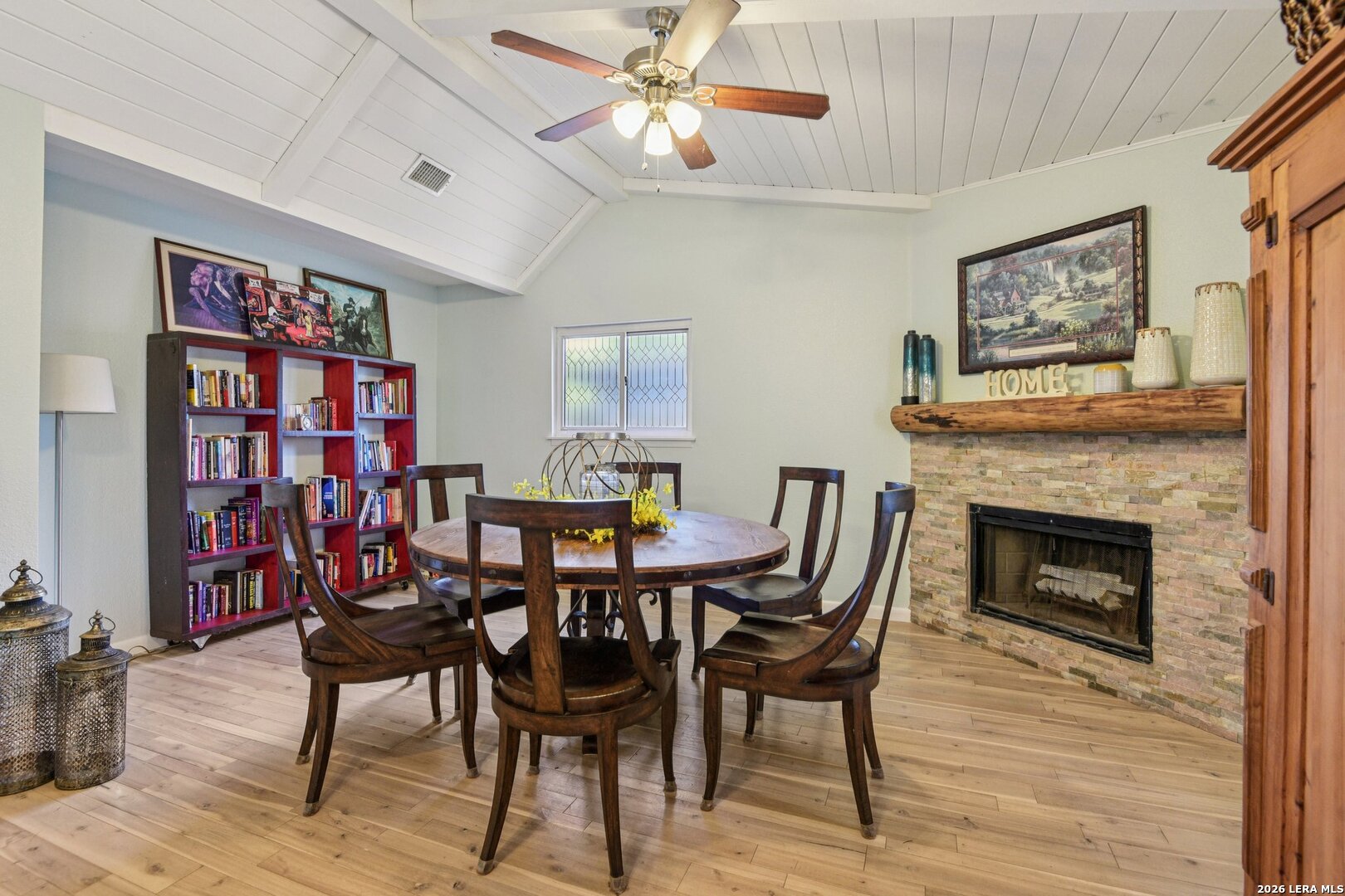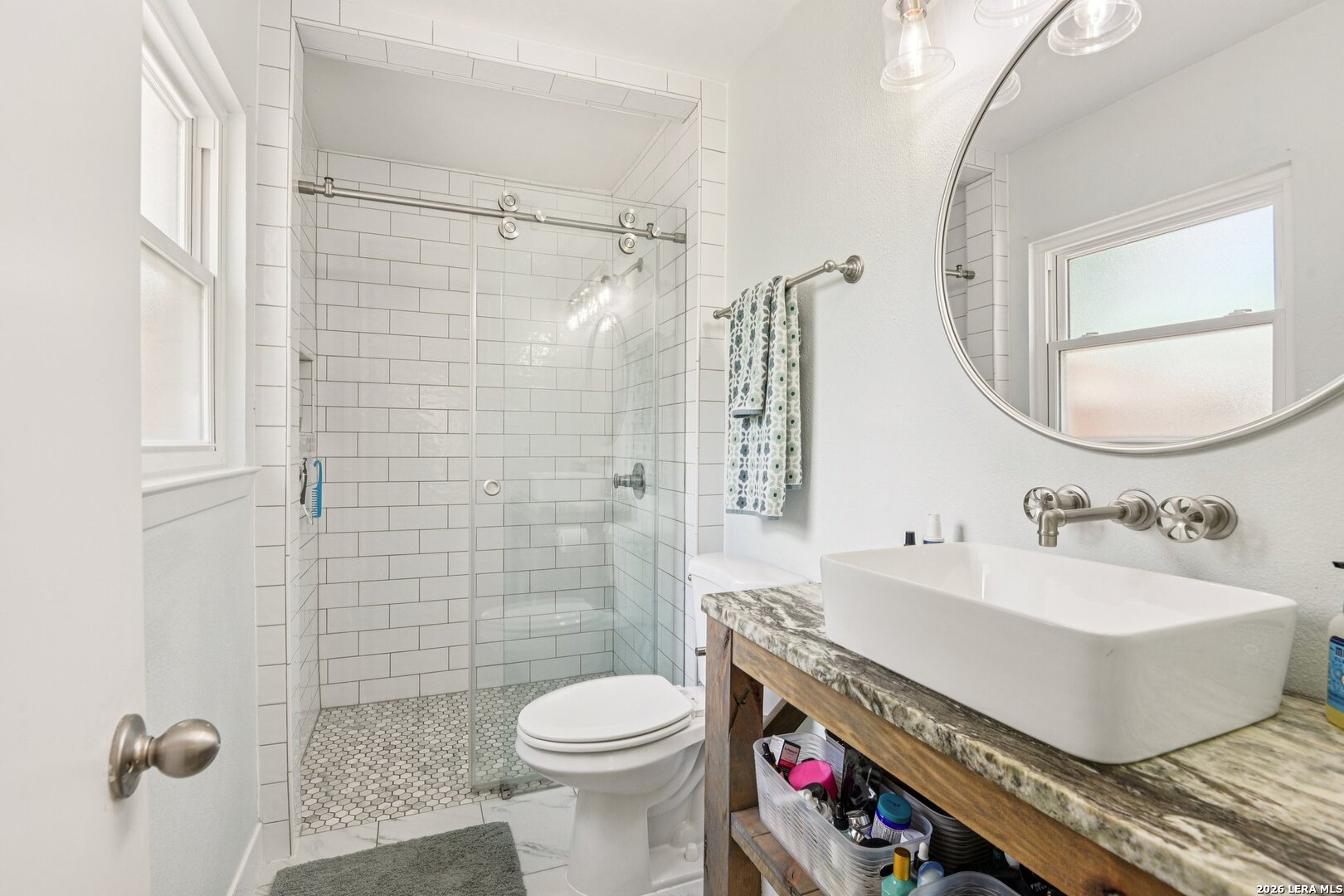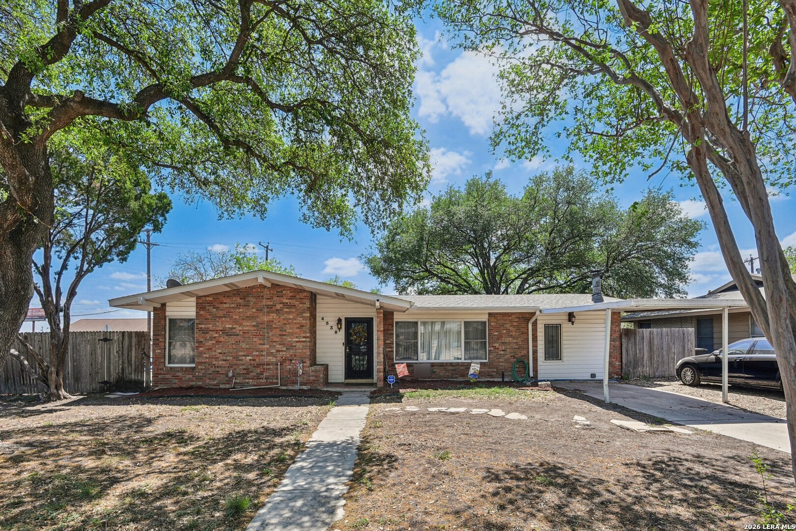 Move-in ready and extensively updated 3-bedroom, 2-bath home in Northeast San Antonio offering quick access to Loop 1604, I-35, and major employers, shopping, and dining throughout the area. This all-brick home sits on a spacious corner lot and features a functional open layout with a welcoming family room highlighted by a wood-burning fireplace with updated stone surround and custom mantel. The fully renovated kitchen showcases modern cabinetry, quartz countertops, glass tile backsplash, updated appliances, and durable tile flooring extending into the breakfast and laundry areas. Interior improvements completed between 2022-2023 include foundation repair with transferable Baird Foundation Repair warranty, hardwood flooring in the living and dining areas, fully remodeled primary and secondary bathrooms with updated tile, vanities, fixtures, and finishes, interior paint throughout, and energy-efficient Champion windows. Additional major updates include a 2016 roof, 2018 HVAC air compressor, 2024 water softener with whole-house filtration system, 2025 tankless water heater, 2025 gutters, and newly installed front and sliding glass doors in 2025. Exterior features include a covered patio, expanded concrete entertaining area, and a unique side driveway with gated access to the backyard-ideal for additional parking, storage, or outdoor flexibility. Conveniently located in NE San Antonio near Randolph AFB, Fort Sam Houston, and key commuter routes, this home combines modern upgrades, strong curb appeal, and a prime location.
