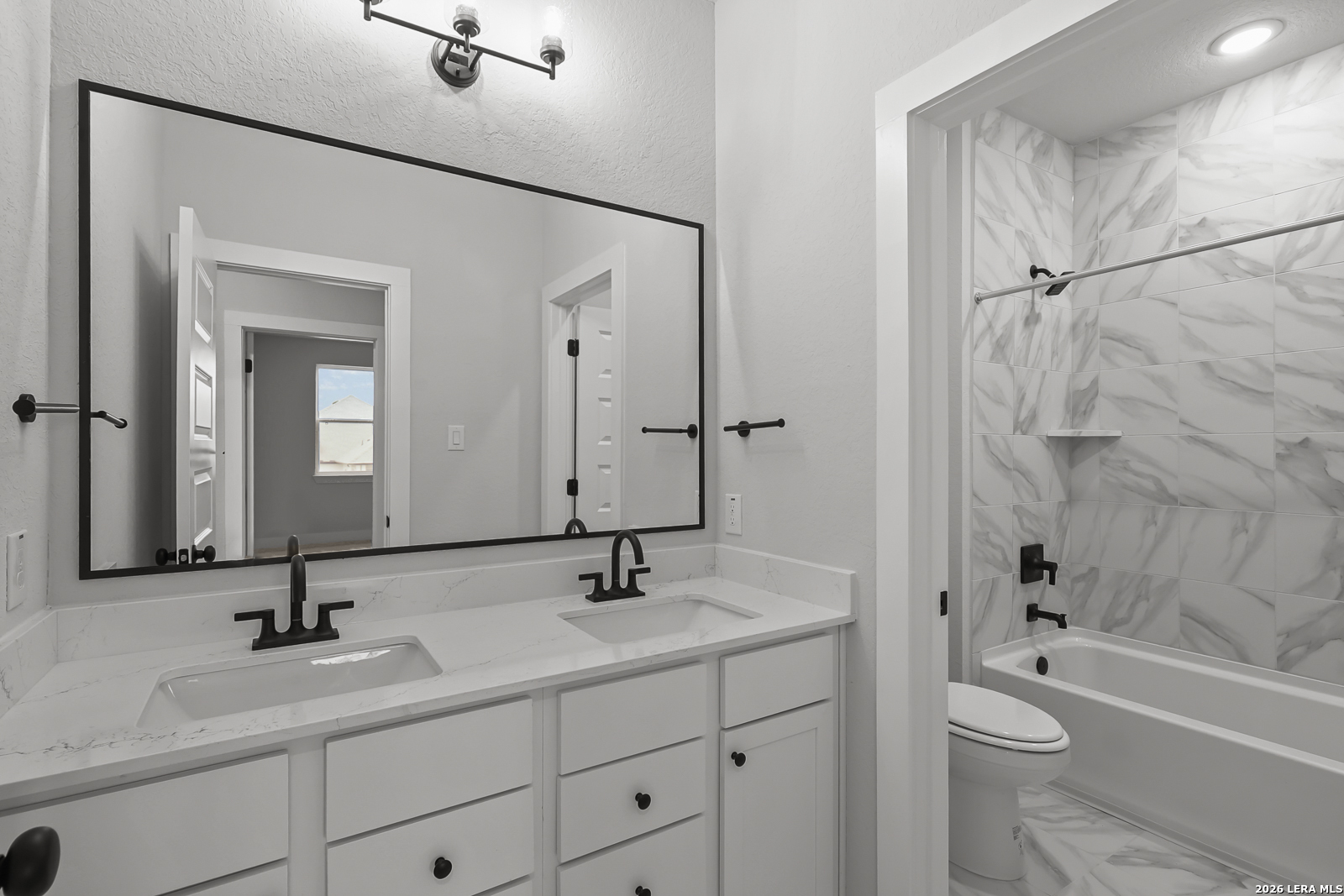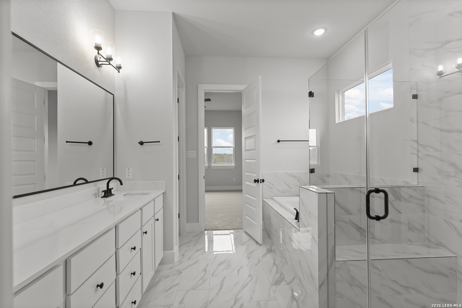 The Teton plan is ideal for multi-generational living! The expansive primary suite is on the main floor, offering a walk-in closet and a private bath with dual vanities and a walk-in shower. Adjacent, an inviting open layout features a great room, a dining area, and a large kitchen with a center island and a walk-in pantry. You'll also find a private study on this level. There are three additional bedrooms upstairs, two including walk-in closets. A versatile loft is also on this level, waiting to be transformed to suit your needs! Also includes a covered patio and a 3-bay garage! Additional home highlights and upgrades: 42" white kitchen cabinets, quartz countertops and backsplash Luxury wood-look vinyl plank flooring in common areas Stainless-steel appliances with gas cooktop Additional recessed can lighting throughout home Walk-in shower and garden tub in Primary bath Black fixutures in all baths Upgraded electric fireplace Study at first floor with door Private bath at Bed 4 Loft area Quartz countertops and modern rectangular sinks in bathrooms Landscape package with sprinkler system Covered patio Gutters at front of home 3-bay garage with garage door opener and 2 remotes Exceptional included features, such as our Century Home Connect smart home package and more!