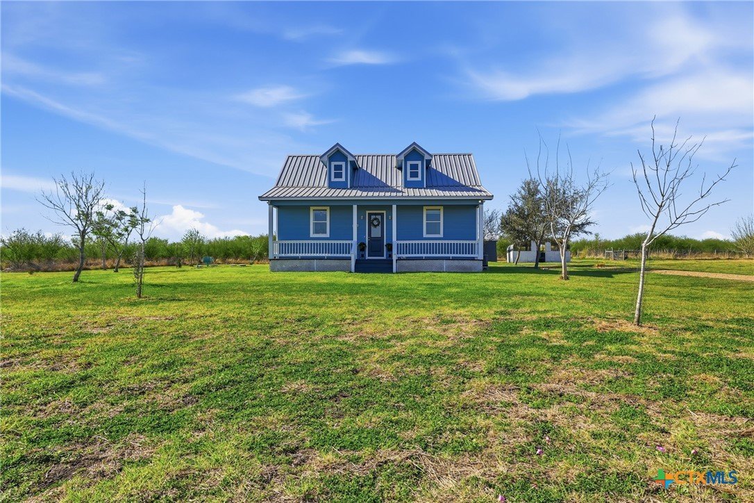 Peaceful country living on nearly 15 unrestricted acres in Victoria County!! Tucked away down a quiet country road, this charming farmhouse offers the perfect escape from the hustle and bustle while still being just a short drive to town. This 2 bedroom, 2 bathroom beautifully maintained home is full of charm and sits surrounded by wide open space and beautiful Texas skies. Enjoy slow mornings on the welcoming front porch, watch wildlife roam the property, or take in breathtaking sunsets! With approximately 14.88 unrestricted acres, the possibilities are endless. The property features a pond and plenty of room for barns, workshops, gardens, pools, or future expansion. Whether you're looking for a quiet country retreat, or a place to build your rural lifestyle, this property offers freedom, privacy, and tranquility that is becoming harder and harder to find!!