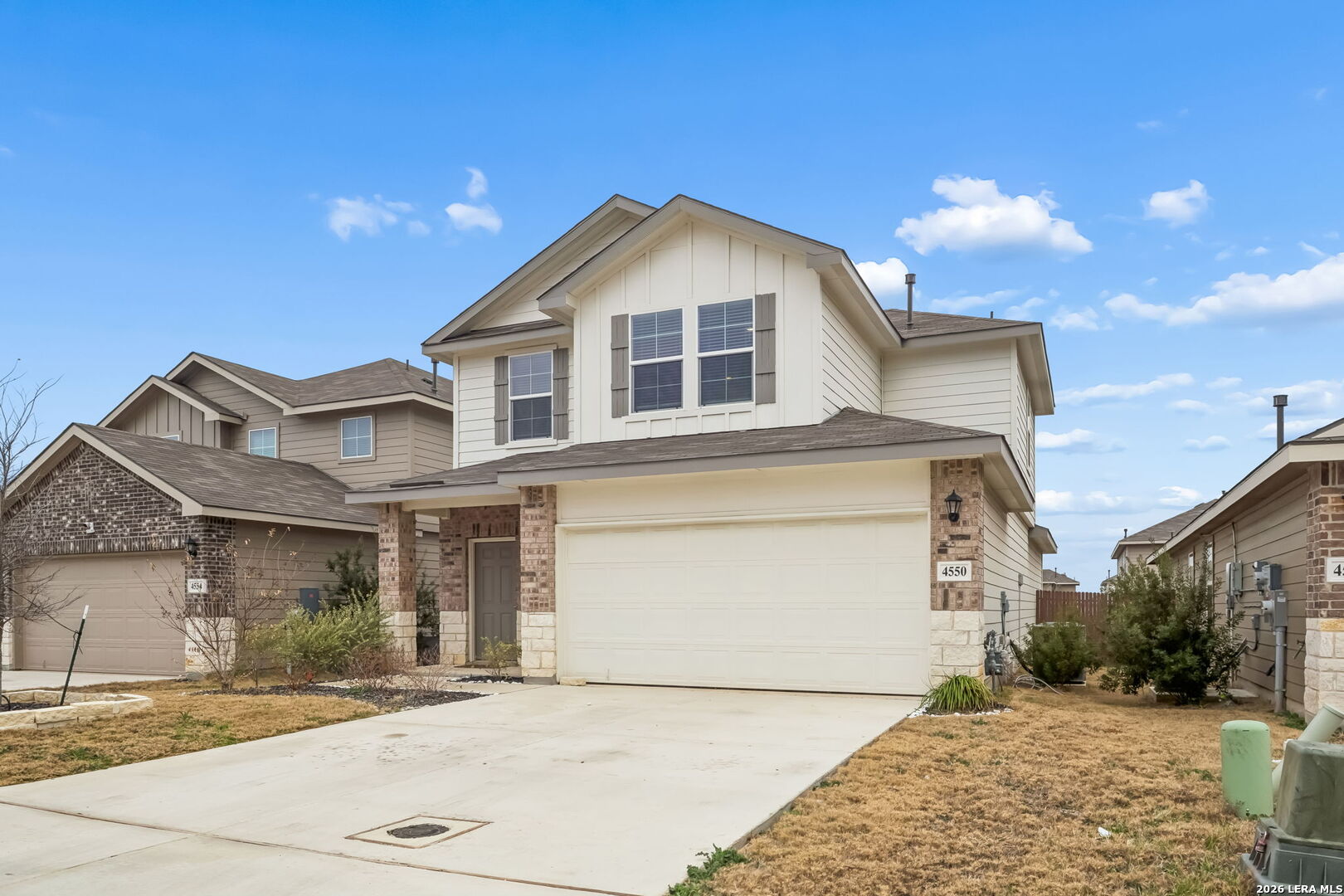 Available for lease in Avenida (AKA Hunters Ridge), this 2023-built two-story home offers 4 bedrooms, 2.5 baths, and 2,041 square feet of modern living in Converse. Designed for today's busy households, the open-concept main level features a spacious family room, separate dining area, island kitchen with gas cooking, and convenient main-level laundry. The primary suite is located downstairs with a walk-in closet and private bath, while three secondary bedrooms and a loft upstairs provide flexible space for work-from-home, guests, or additional living. Home includes energy-efficient features a covered patio, privacy fence, sprinkler system, and two-car garage. Located near I-10, Loop 1604, and major commuter corridors, this home offers convenient access to Randolph AFB, JBSA, retail centers, healthcare employers, and growing commercial hubs throughout Converse and Northeast San Antonio. With strong neighborhood growth, suburban periphery setting, and proximity to daily amenities, this lease opportunity offers space, convenience, and modern construction in one of Greater San Antonio's expanding communities.