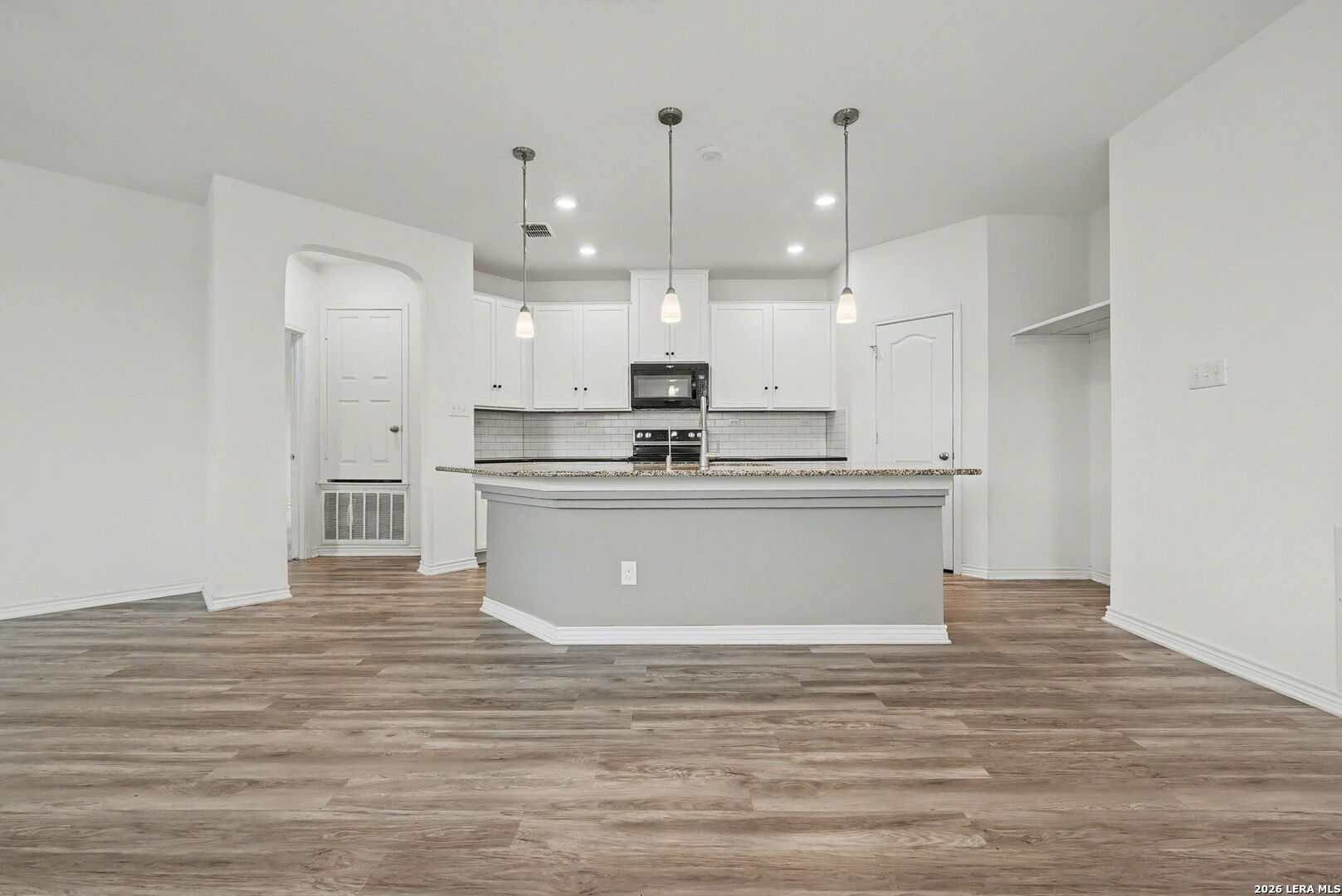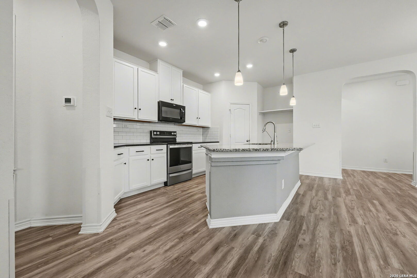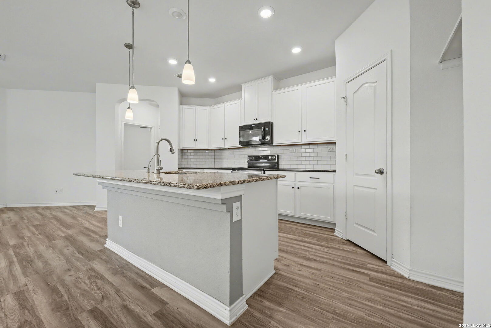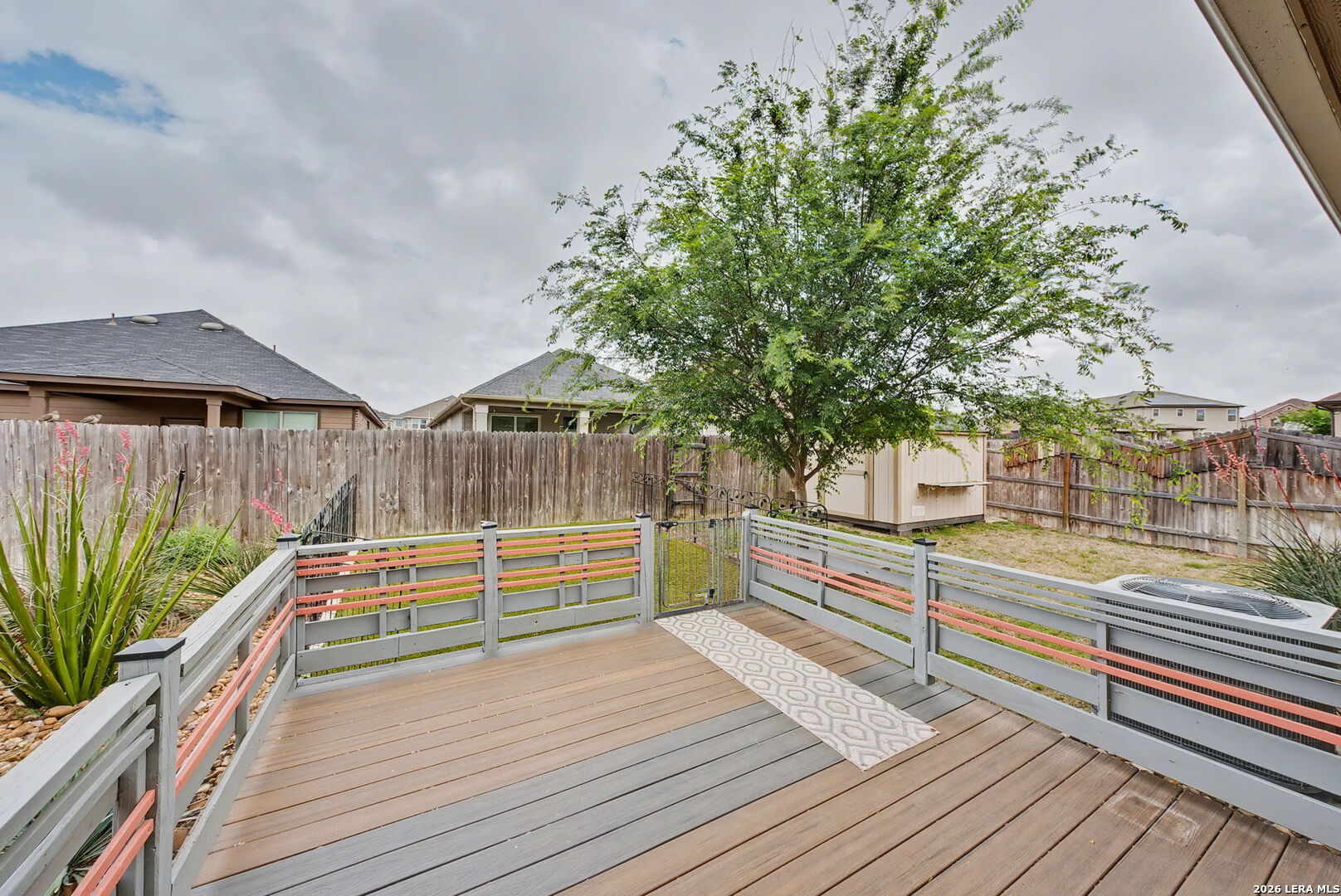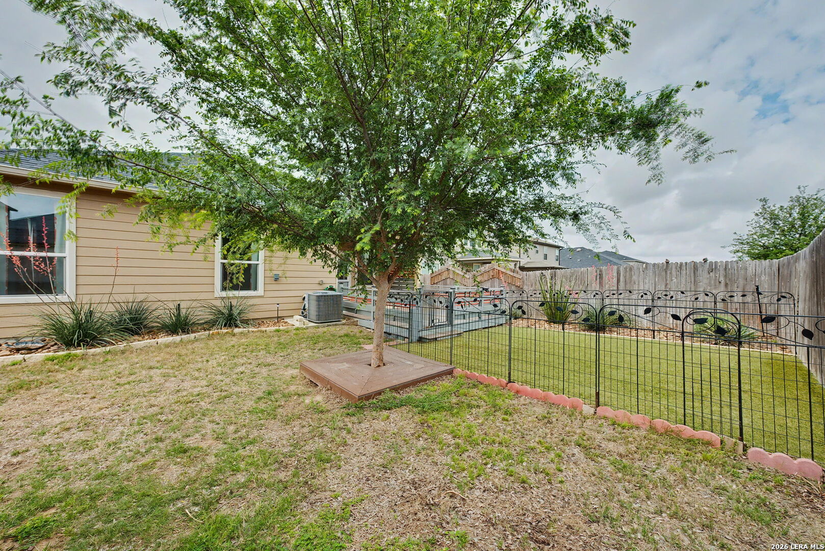 Beautifully maintained 3-bedroom, 2-bath, 1,698 sq ft home in the desirable Legend Point community offers stylish single-story living with an open floor plan, high ceilings, and granite counters with all-white kitchen cabinets and pendant lighting throughout the kitchen, plus a spacious living and dining area ideal for entertaining. The split primary suite is generously sized and features dual vanities, a tiled walk-in shower, and a relaxing garden tub, with the two secondary bedrooms on the opposite side of the home for added privacy. Additional highlights include a water softener and an awesome backyard with a 12x10 covered patio, an extended 12x12 patio, low-maintenance artificial grass area, and a 10x8 Tuff Shed for extra storage. Located in New Braunfels ISD and served by Long Creek High School, this move-in ready home blends comfort, convenience, and an excellent location. Schedule your showing today.