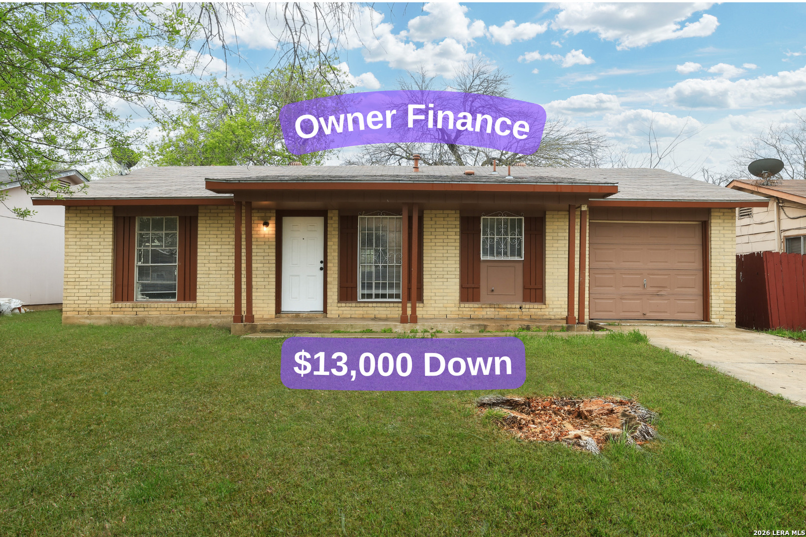Owner financing available with $13,000 down. No bank qualifying required. ITIN welcome. Hablamos Espanol. Nice 3-bedroom, 2-bath home with Central A/C located near Loop 410 and Highway 90. Convenient access to Lackland AFB, shopping and highway. Well-maintained home features central A/C, new flooring throughout and a functional layout with a one-car garage. The cement foundation is in good condition and the property offers a comfortable, move-in ready space for a homeowner or investor. The backyard includes a covered patio area perfect for relaxing or entertaining.