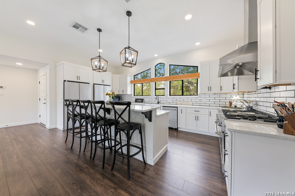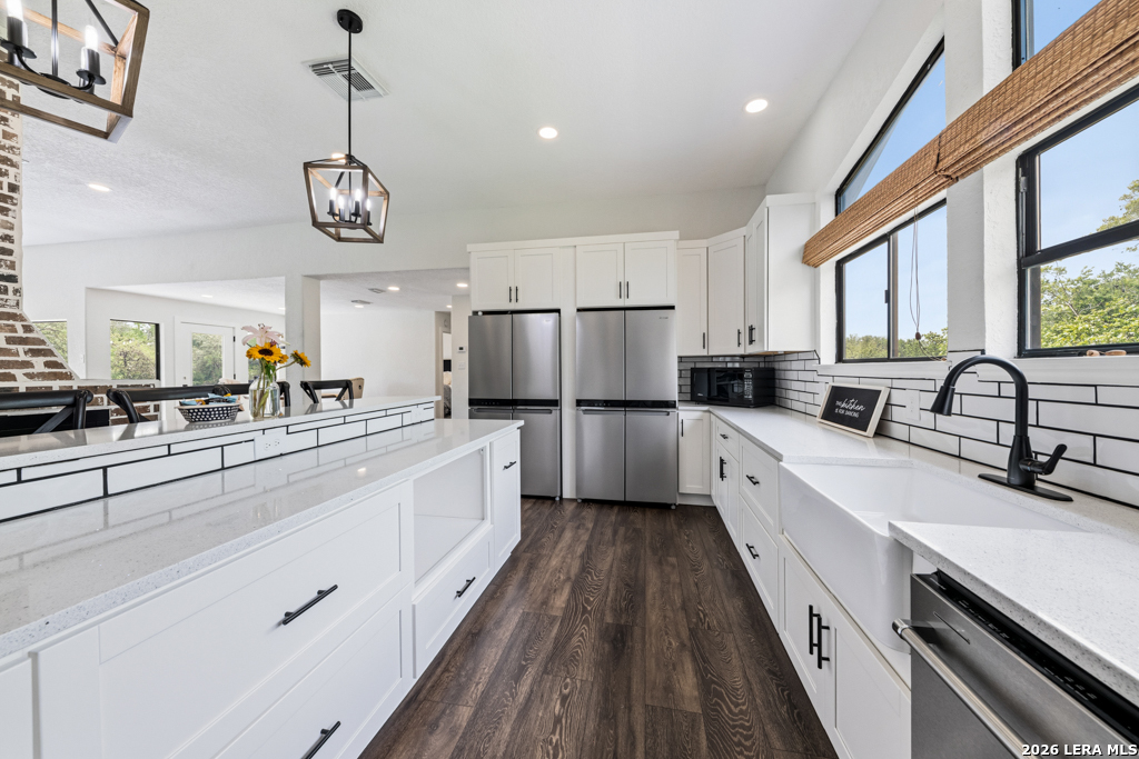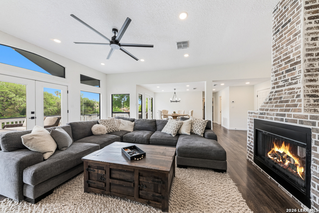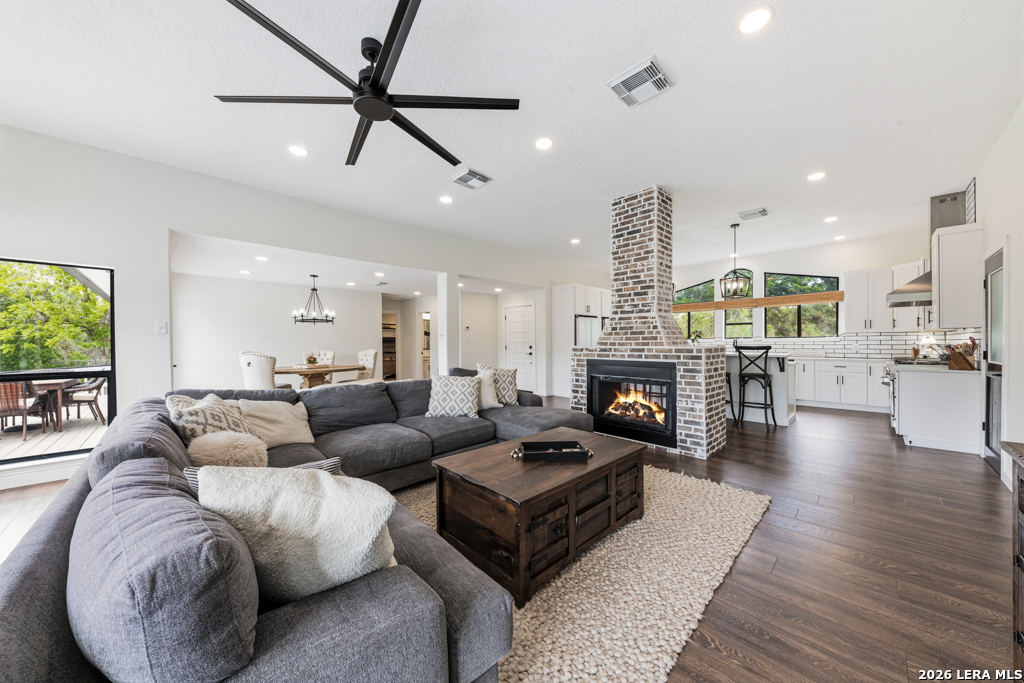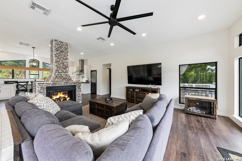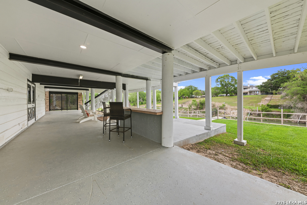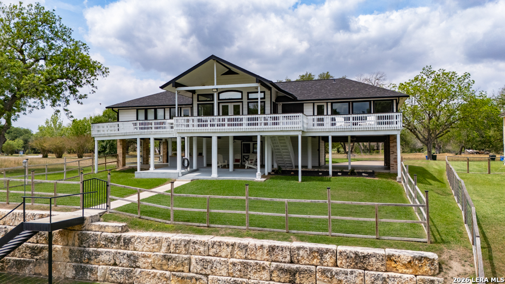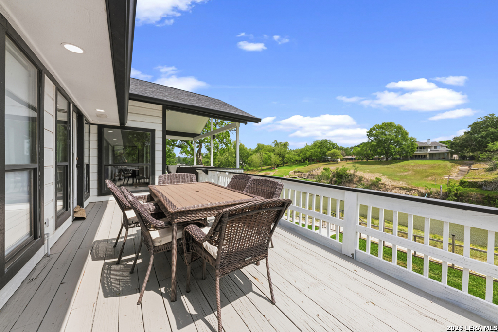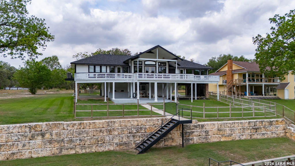 Completely reimagined waterfront retreat in the peaceful Glen Cove neighborhood on Meadow Lake, offering a rare opportunity to own on the Guadalupe River with exceptional upside as the Nolte Dam restoration project moves toward completion. With engineering complete and permitting underway, this is an ideal time to purchase before full lake restoration further enhances waterfront value and enjoyment. Elevated to maximize panoramic water views, the home features an expansive 900 SF deck spanning the full length of the property, creating the perfect setting for entertaining, sunset views, and indoor-outdoor lake living. Thoughtfully renovated throughout, updates include a new roof, new HVAC system, energy-efficient windows, tankless water heater, water-resistant flooring, fresh interior and exterior paint, water softener, updated sprinkler pump, and refreshed landscaping. The open-concept layout is centered around a striking double-sided gas fireplace and opens into a beautifully designed chef's kitchen featuring a 48" ZLINE dual-fuel gas range with pot filler, KitchenAid dishwasher, dual refrigerators, quartz countertops, deep farmhouse sink, and spacious walk-in pantry with built-in outlets. The primary suite offers a true spa-like escape with automatic blinds, peaceful lake views, and a luxurious bath complete with double shower wet room, soaking tub, towel warmer, dual vanities, and fireplace. A flexible breakaway room with rustic tin accents, half bath, added insulation, and multiple outlets offers endless possibilities for a game room, studio, guest space, or future outdoor kitchen. Additional features include an oversized two-car garage plus an impressive 700 SF workshop, private dock, retaining wall, gas line for grilling, and fully fenced low-maintenance yard irrigated directly from river water. Even now, water levels support enjoyment of jet skis and small boats, with neighborhood boat launch access nearby. With its thoughtful updates, waterfront setting, and strong short-term rental / vacation home potential, this property offers both an exceptional personal retreat and compelling investment opportunity as Meadow Lake moves closer to full restoration.