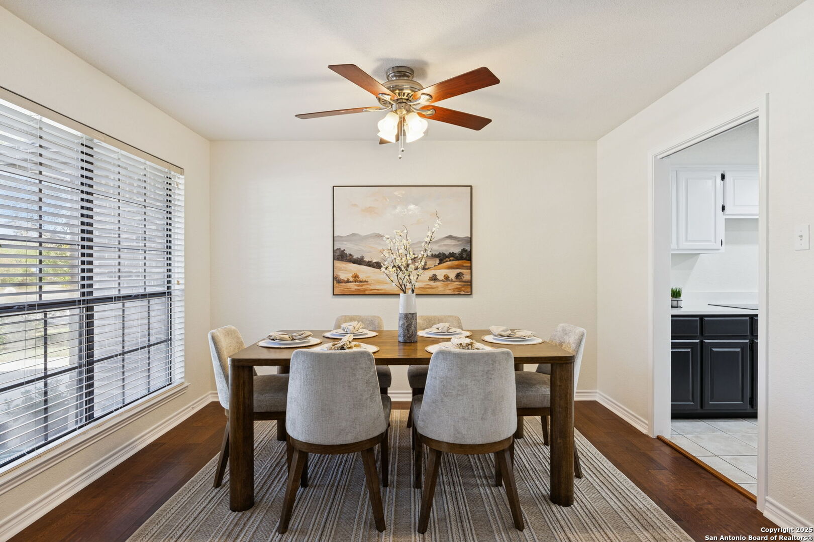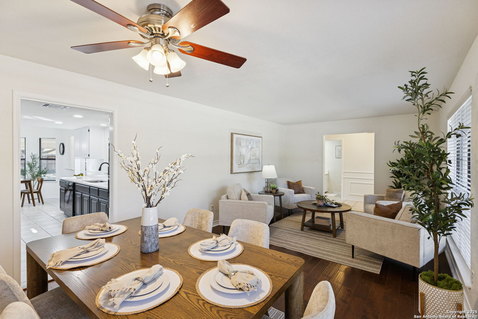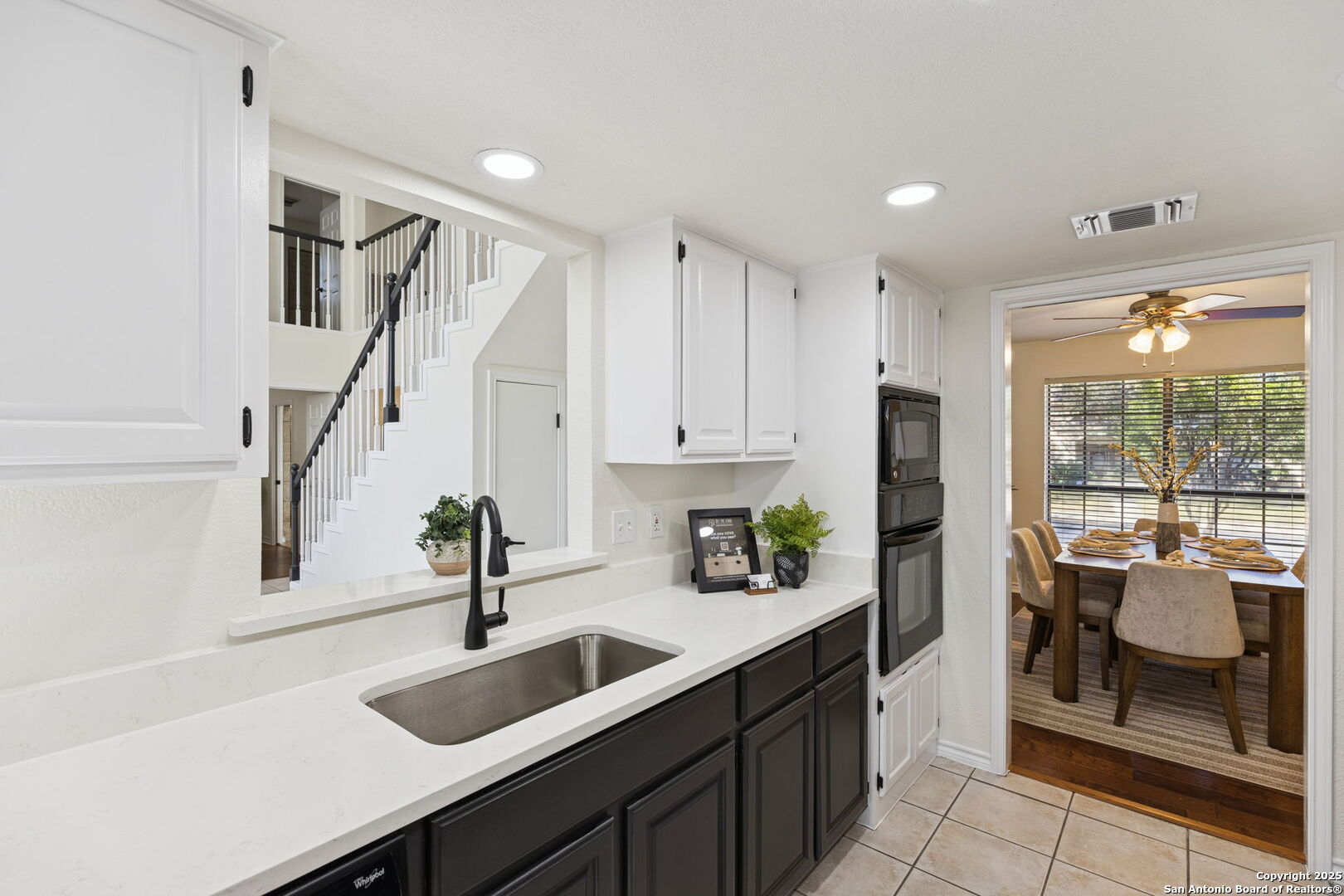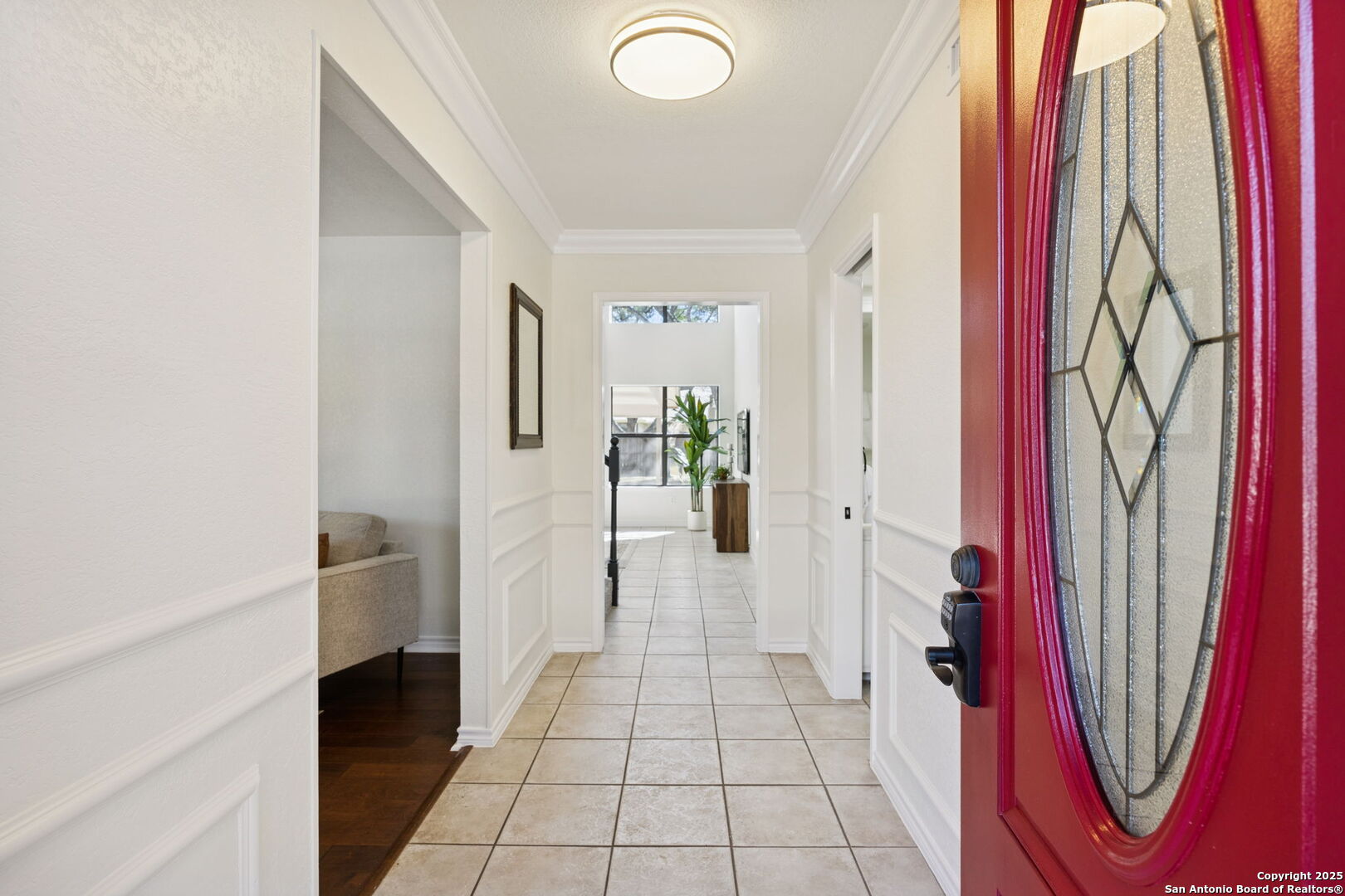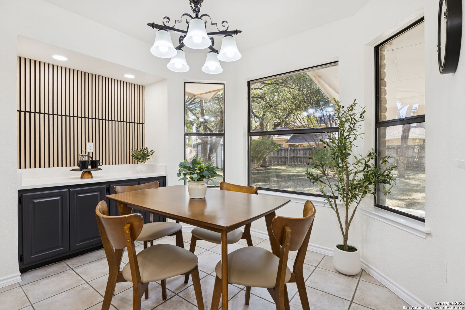 OPEN HOUSE SUN 11/23 2-4pm. Rare opportunity inside the loop of 1604! This beautifully renovated home in the heart of Woods of Shavano is truly move-in ready and filled with a balance of charm and modern updates. From the moment you arrive, you'll be drawn to the stately curb appeal, mature trees, professional landscaping, and the peaceful cul-de-sac setting. Inside, soaring ceilings, gleaming wood and tile floors, and fresh paint set a warm, inviting tone throughout. The dramatic family room features a floor-to-ceiling brick fireplace with gas starter, accented by a sleek slat-wall design, while the adjacent kitchen shines with quartz countertops, a deep sink, freshly painted cabinetry, and ample storage. The front of the home offers flexible formal living and dining spaces perfect for entertaining or a home office setup. The spacious owner's suite is conveniently located on the main level and features a completely updated bath with double vanity, soaking tub, walk-in shower, and generous closet. Upstairs, new plush carpet complements three additional bedrooms, a remodeled full bath, and a cozy nook ideal for reading, gaming, or extra storage. Step outside to a large covered patio overlooking a flat, private backyard shaded by mature trees-ideal for relaxing or entertaining. Even the garage has been freshly painted and provides additional storage. Every inch of this home has been thoughtfully refreshed and maintained, combining comfort, style, and convenience in one perfect package. Schedule your private showing today and see why this one stands out in Woods of Shavano!