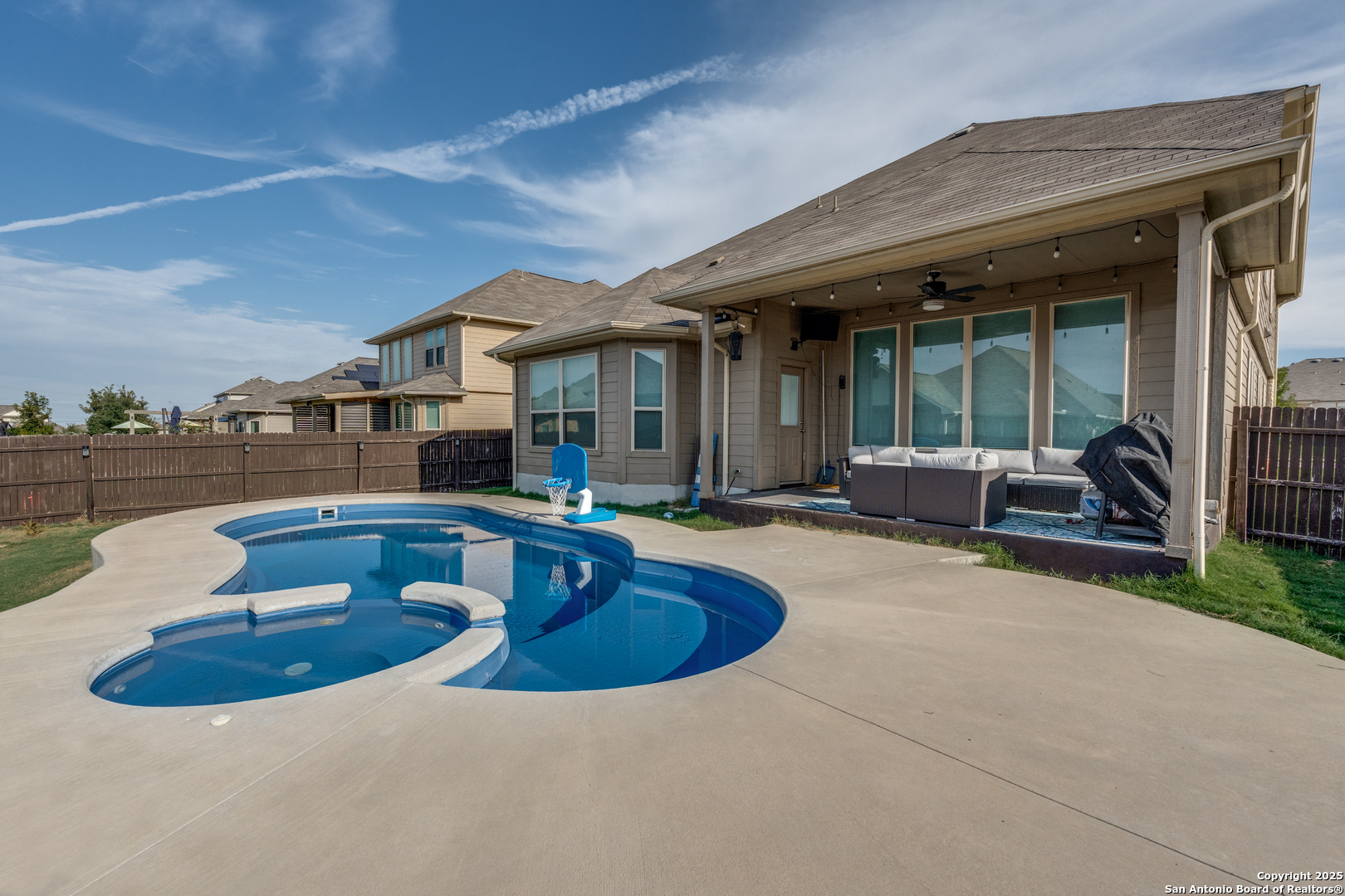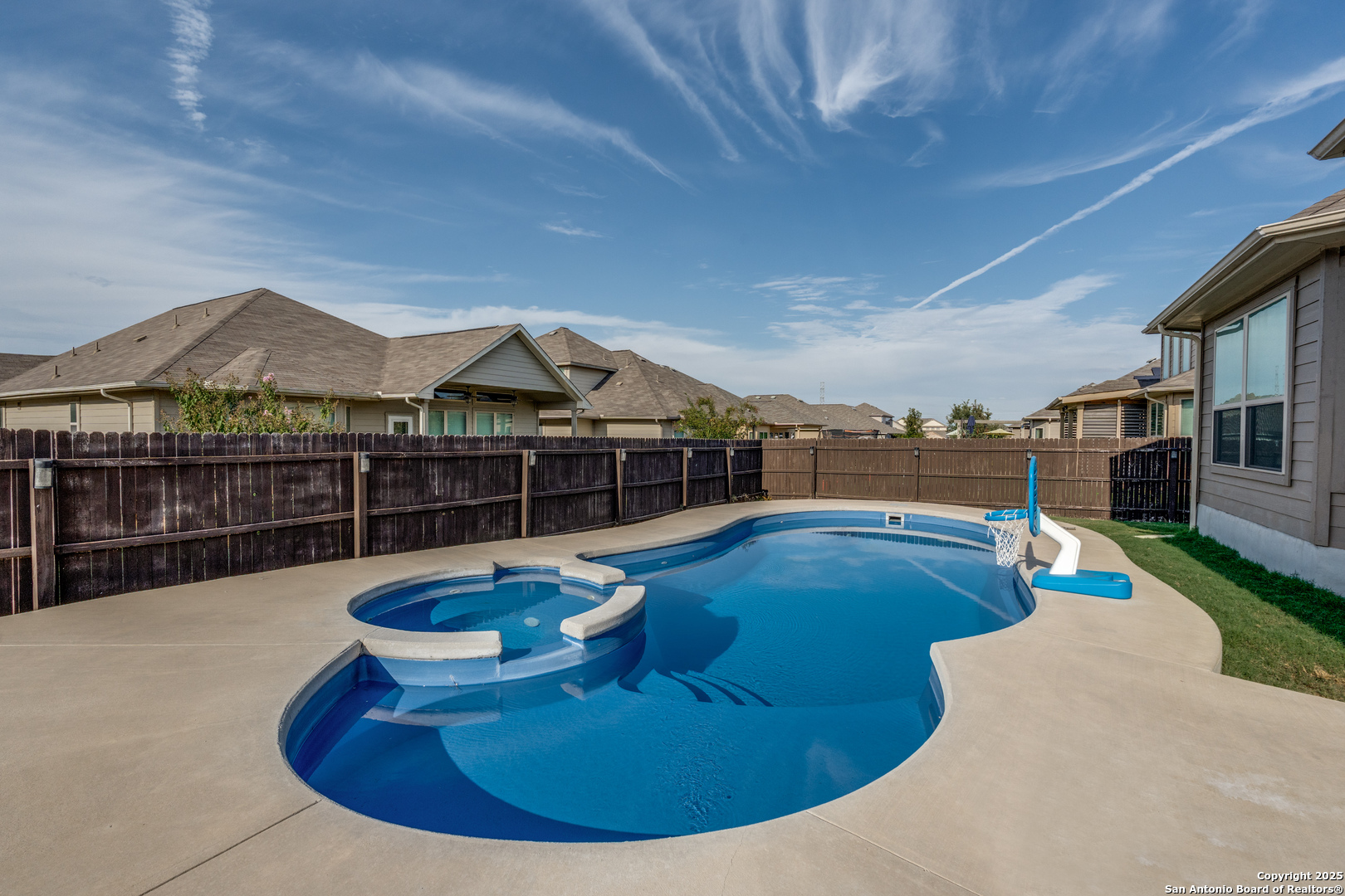 Entertainer's paradise meets everyday comfort in this stunning 5-bedroom, 3.5-bath home with a private office and downstairs primary suite. Enter inside to an open-concept designed for family, where the living area highlights a chef-inspired granite island kitchen that lets you cook and connect with ease while connecting with family and friends. The spacious living and dining areas flow seamlessly, making it easy to host or simply enjoy cozy evenings at home. Upstairs, discover a media room built for movie nights and a large game room that's ready for fun. Outside, your backyard oasis awaits with a covered outdoor living area overlooking a sparkling in-ground pool-ideal for summer barbecues, fall fire-pit vibes or relaxing under the stars. With style, space, and resort-style amenities, this home is the perfect blend of function and luxury living!