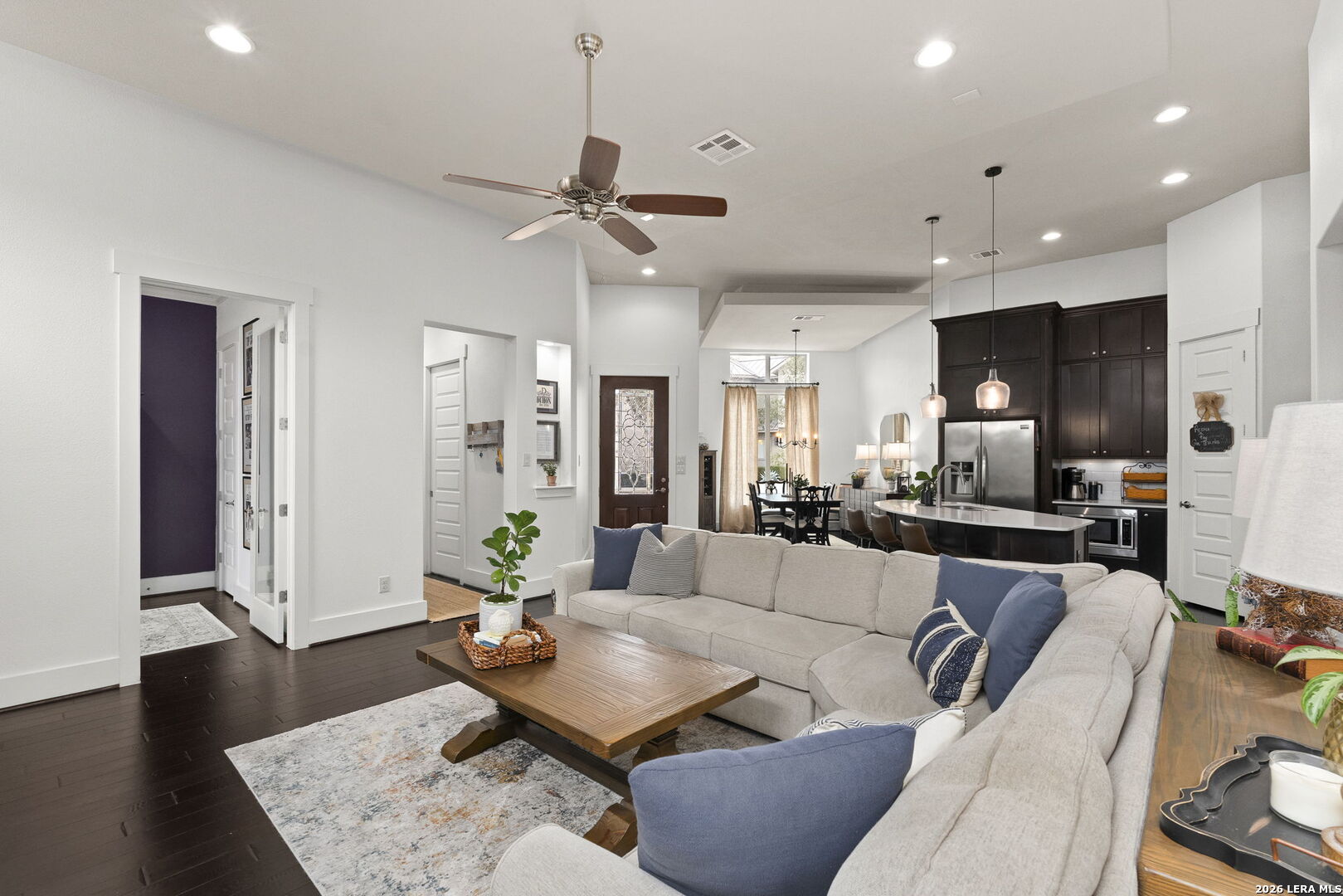 Welcome to 4615 Avery Way, where everyday living comes with a vacation vibe. Located in Cibolo Canyons within the gated Amorosa community, this thoughtfully designed single-story home blends comfort, style, and convenience in a resort-inspired setting. Situated with direct access to community walking trails, this 3-bedroom, 2-bath home with a dedicated office offers a well-planned layout and an easy, low maintenance lifestyle. Inside, the home feels fresh and inviting with new interior paint and a beautifully remodeled primary bath. Step outside to enjoy the freshly painted exterior and a backyard designed for relaxation, complete with an extended Trex deck-perfect for outdoor living and entertaining. Just minutes from the JW Marriott Resort & Spa, world-class golf, and premier shopping, the location is hard to beat. Residents also enjoy access to two exceptional amenity centers featuring swimming pools, a lazy river, kiddie pool with playground, fitness center, basketball court, soccer field, and a meeting or party room. Resort-style living. Gated community. Prime location. Don't miss the opportunity to own in one of Cibolo Canyons' most desirable neighborhoods-this home is ready to welcome you.