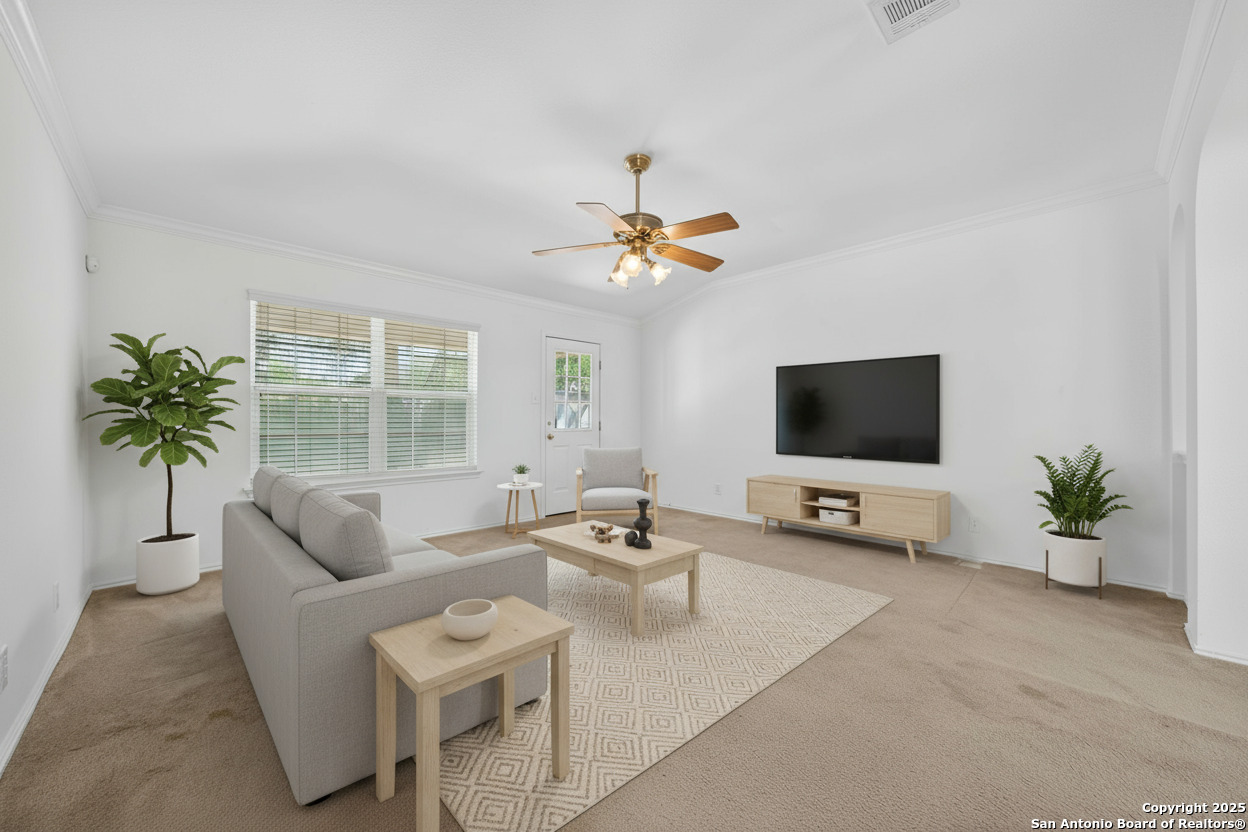 Welcome to 462 Bobcat Hollow, where comfort and convenience meet timeless charm. Step inside to find an inviting, light-filled floor plan with tasteful finishes that create an easy flow throughout the home. Two spacious living areas provide versatility, perfect for cozy evenings in or hosting family and friends, with large windows that frame views of the private yard. The well-appointed kitchen offers generous counter space, ample cabinetry, and a breakfast bar that invites gathering and conversation. The primary suite is a serene retreat, featuring a walk-in closet and en-suite bath with dual vanities for added convenience. Two additional bedrooms offer flexibility for family, guests, or a home office, sharing a thoughtfully designed full bath. Outdoors, the expansive backyard is made for enjoyment, whether you are grilling, gardening, or simply unwinding beneath Texas skies. This property offers not just a house, but a lifestyle centered on comfort, connection, and everyday ease.