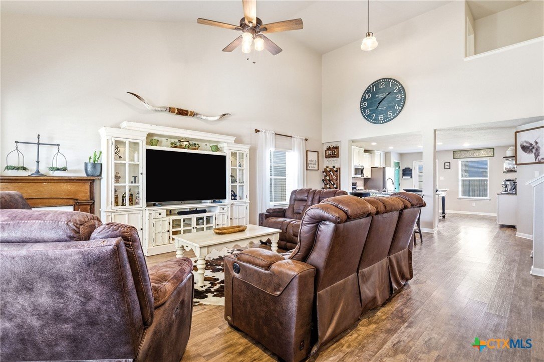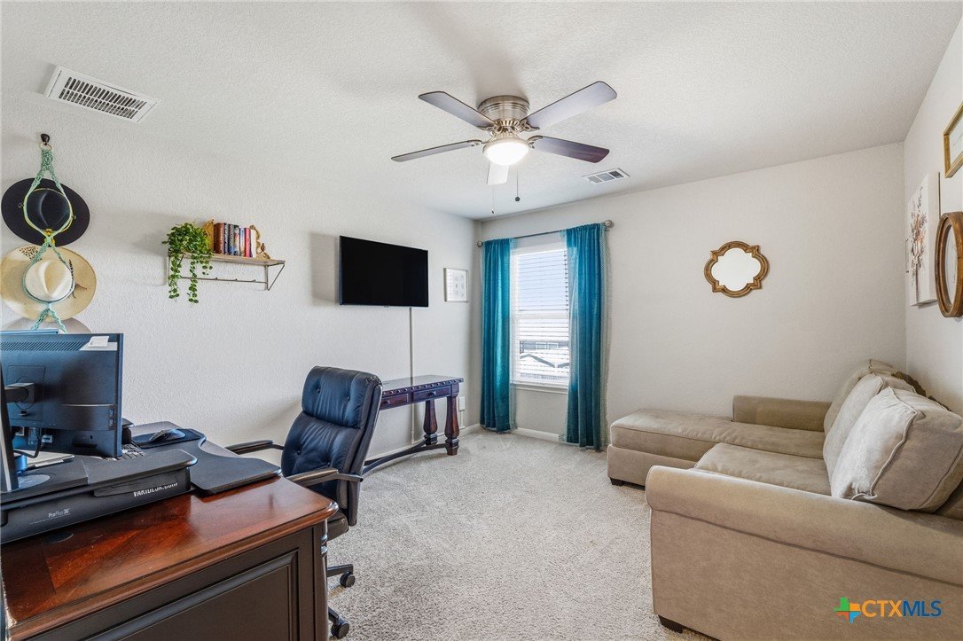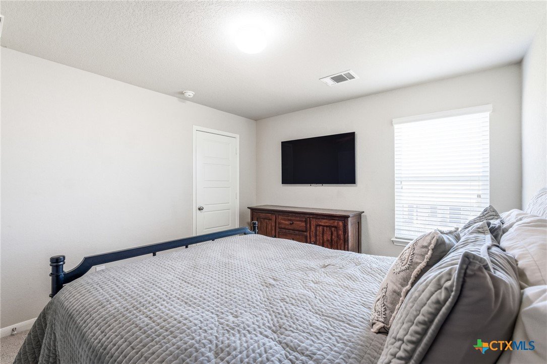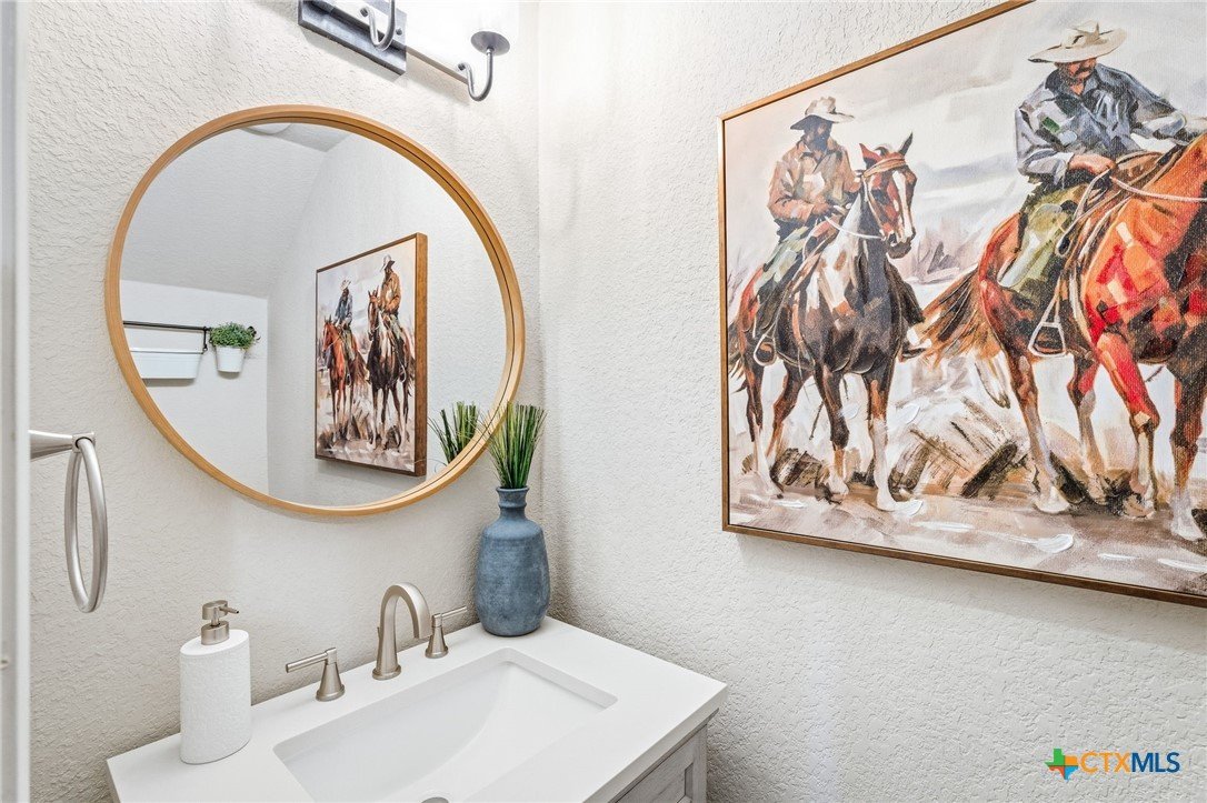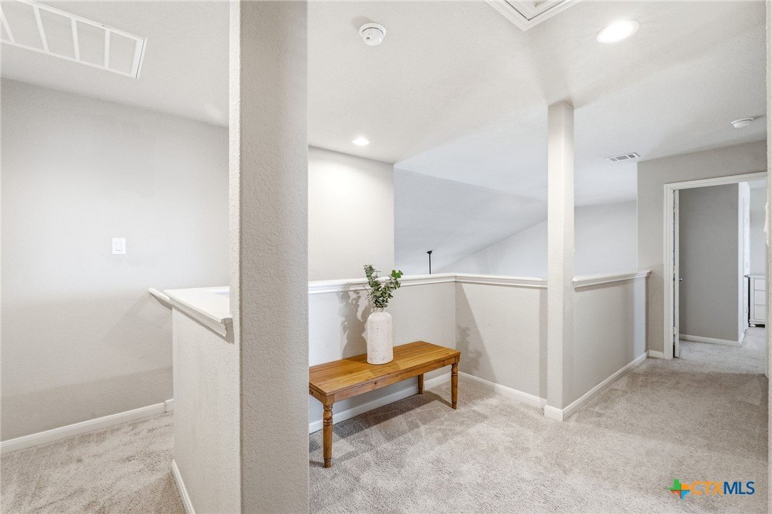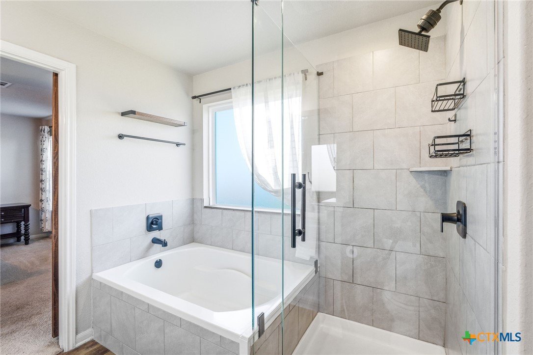 Beautifully maintained 4-bedroom, 2½-bath home in an unbeatable location! Just minutes from Creekside, Topgolf, Gruene, and H-E-B, you’ll enjoy convenience to shopping, dining, and entertainment without sacrificing comfort and charm. Located within the highly regarded Comal ISD, this home offers both lifestyle and educational opportunity. Relax on the inviting covered front porch or unwind on the spacious covered back patio — perfect for morning coffee or evening gatherings (hot tub included!). Inside, you’re welcomed by a generously sized living room featuring soaring ceilings that create an open, airy feel. The primary suite is thoughtfully located on the first floor, offering privacy and convenience. The kitchen is impressively sized and equipped with stainless steel appliances, gas cooking, and plenty of space for preparing meals and entertaining. The upgraded primary bathroom adds a touch of modern comfort and style. Upstairs, you’ll find three additional bedrooms and a full bathroom, providing flexible space for family, guests, or a home office. Like to work in the garage, but it's too hot? There's a mini-split for that! This home truly combines location, functionality, and pride of ownership, making it a wonderful place to call home.