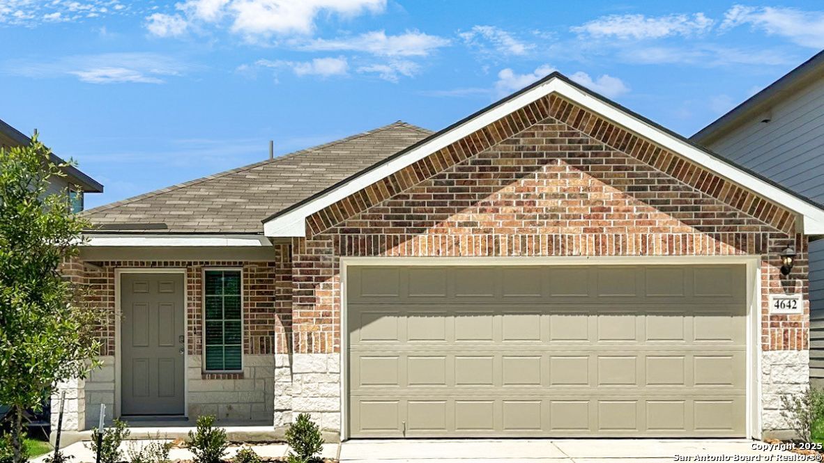 Step into The Brooke floor plan at Salado Creek in San Antonio, TX, a one-story home featuring 3 bedrooms and two bathrooms. The Brooke also offers 2 classic front exteriors, a 2-car garage and 1396 square feet of comfortable living. The Brooke features an open concept layout that blends seamlessly to create the perfect everyday space. The gourmet kitchen separates the living area and dining room and includes granite counter tops, stainless steel appliances, and shaker-style cabinets. The main bedroom features an attractive ensuite bathroom complete with a granite vanity counter top, shaker style cabinets, separate water closet and a large walk-in shower. You'll have all the space you need to get ready in the morning with a large walk-in closet. You'll find quality carpet and closets in all of your secondary bedrooms, which can also be used as offices, play rooms or other bonus rooms. Head out the back door located off the dining room to find the rear covered patio (per plan) and full yard landscaping & irrigation. Additional features include sheet vinyl flooring in entry, living room, and all wet areas, granite counter tops in all bathrooms and our HOME IS CONNECTED base package. Using one central hub that talks to all the devices in your home, you can control the lights, thermostat and locks, all from your cellular device.