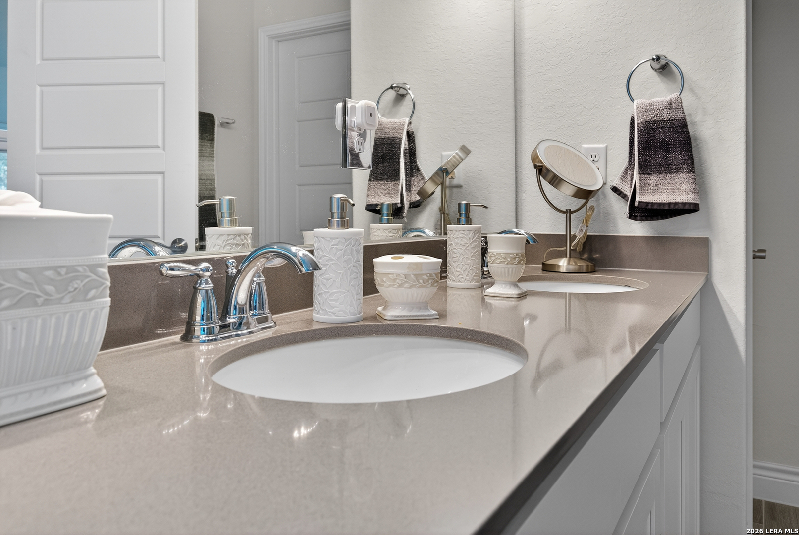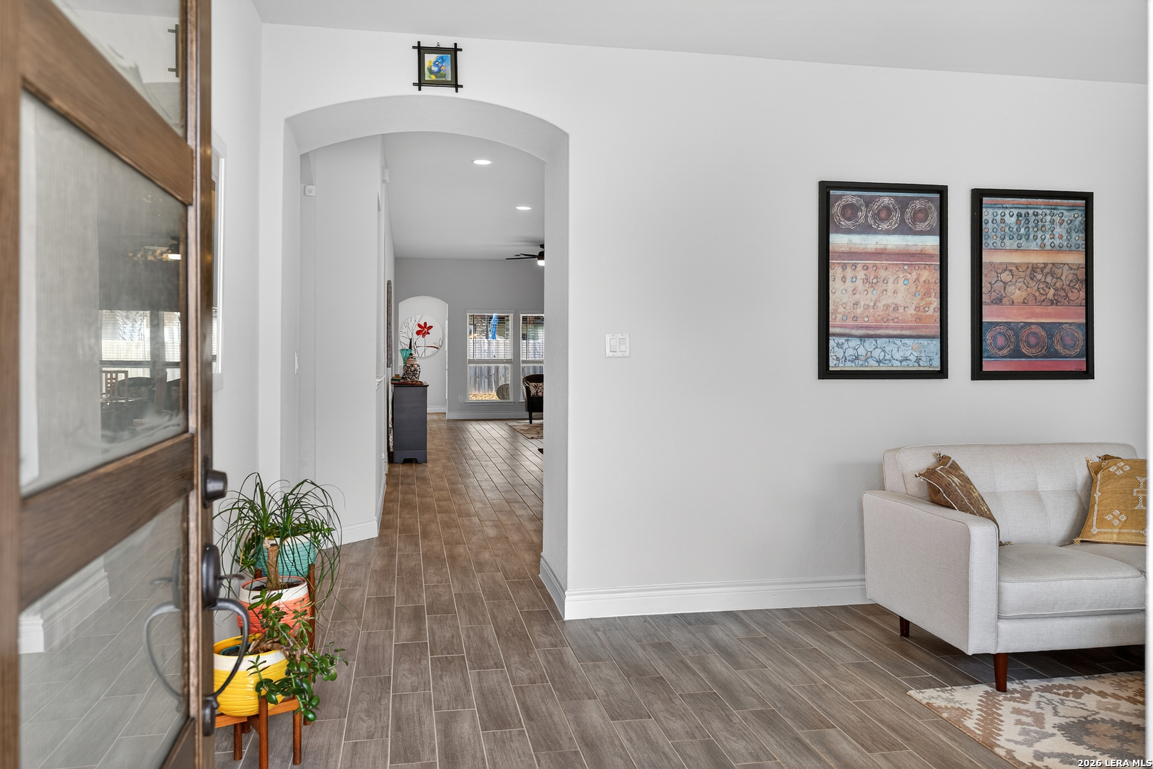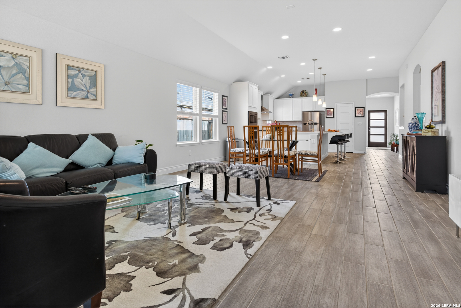 STUNNING SINGLE STORY!! A like-new single-story brick home ready for IMMEDIATE move-in! If you've been searching for a one-story that feels brand new without the construction wait, this is it. This gorgeous Sheldon floor plan by Pulte Homes showcases clean lines, soaring ceilings, abundant natural light, and upgraded wood-look tile flooring throughout. The chef's kitchen shines with white cabinetry, designer backsplash, quartz countertops, pantry, and an open-concept layout perfect for entertaining. A built-in office area and fantastic FLEX room provide the versatility today's buyers demand. The elegant primary suite features a beautiful bay window sitting area and a spa-inspired bath complete with double vanities, an overhead rainfall walk-in shower, and generous his-and-her walk-in closets. Additional upgrades include an EV charging station in the garage, gas water heater, full sprinkler system, water softener, and attached garage. Step outside to enjoy the covered porch and private fenced backyard-ideal for relaxing evenings and easy Texas living. Located in the highly sought-after Veramendi community with hiking trails, parks, playgrounds, and a resort-style pool, all just minutes from shopping, schools, downtown New Braunfels, and I-35 access. Single-story, modern, and truly move-in ready. SEE THIS ONE TODAY!