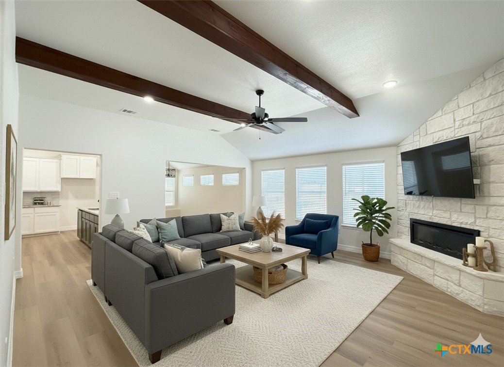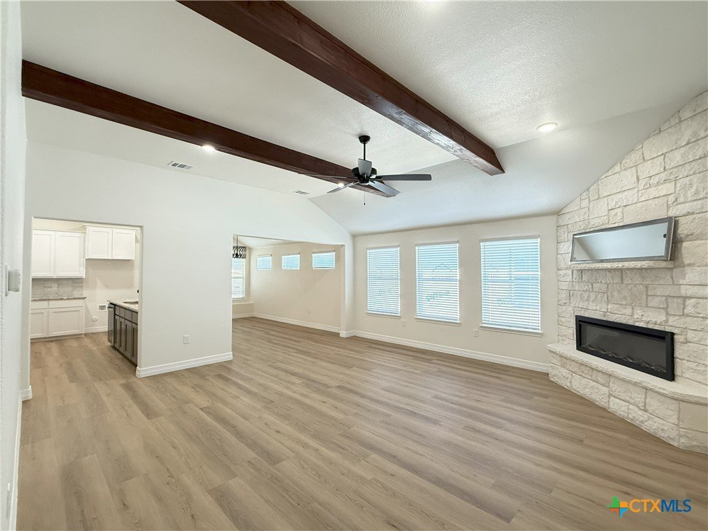 Genius Floorplan!! Nestled within the sought-after Three Creeks subdivision, located close to Stillhouse Hollow Lake Dam, equidistant to the Temple/Belton or the Harker Heights/Killeen/Fort Hood areas, surrounded by nature yet within minutes to city conveniences, this beautiful neighborhood offers the best of both worlds, serene resort-like atmosphere yet conveniently close to all city conveniences. This gorgeous Tippit built home is perfectly situated on a cul-de-sac lot, Step through the arched portico into an inviting open floorplan, highlighted by a floor-to-ceiling stone-breasted fireplace in the spacious living room which flows seamlessly into the dining area and gourmet kitchen. The primary suite is positioned to the rear of the home for privacy and boasts a spa-like bath, complete with a two-bowl, granite topped vanity, deep soaking tub and separate shower, private toilet compartment, and humongous, walk-in closet. The 3 secondary bedrooms have amply sized closets, lighted ceiling fans, faux-wood window blinds, and plush carpeting, and share a full-size bath. Large, self-contained interior laundry room grants loads of storage capabilities. The twin bay garage is outfitted with a garage door opener and fold-away attic stairs. The covered patio and fully fenced back yard are perfect for relaxation, entertaining, or simply enjoying the serene surroundings. Community amenities include hiking and walking trails galore, with plenty of benches for rest and relaxation and enjoyment of the beautiful views, and a community pavilion perfect for family and/or community get-togethers. Another welcomed perk: this area is part of the Belton Independent School District. Builder offers buyer incentives, call agent for details.