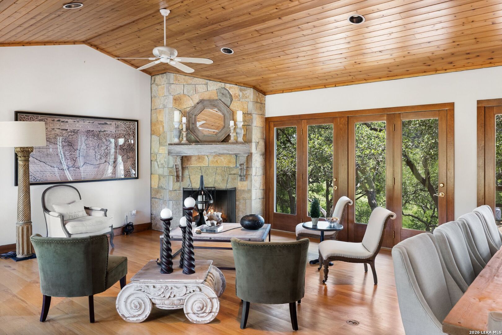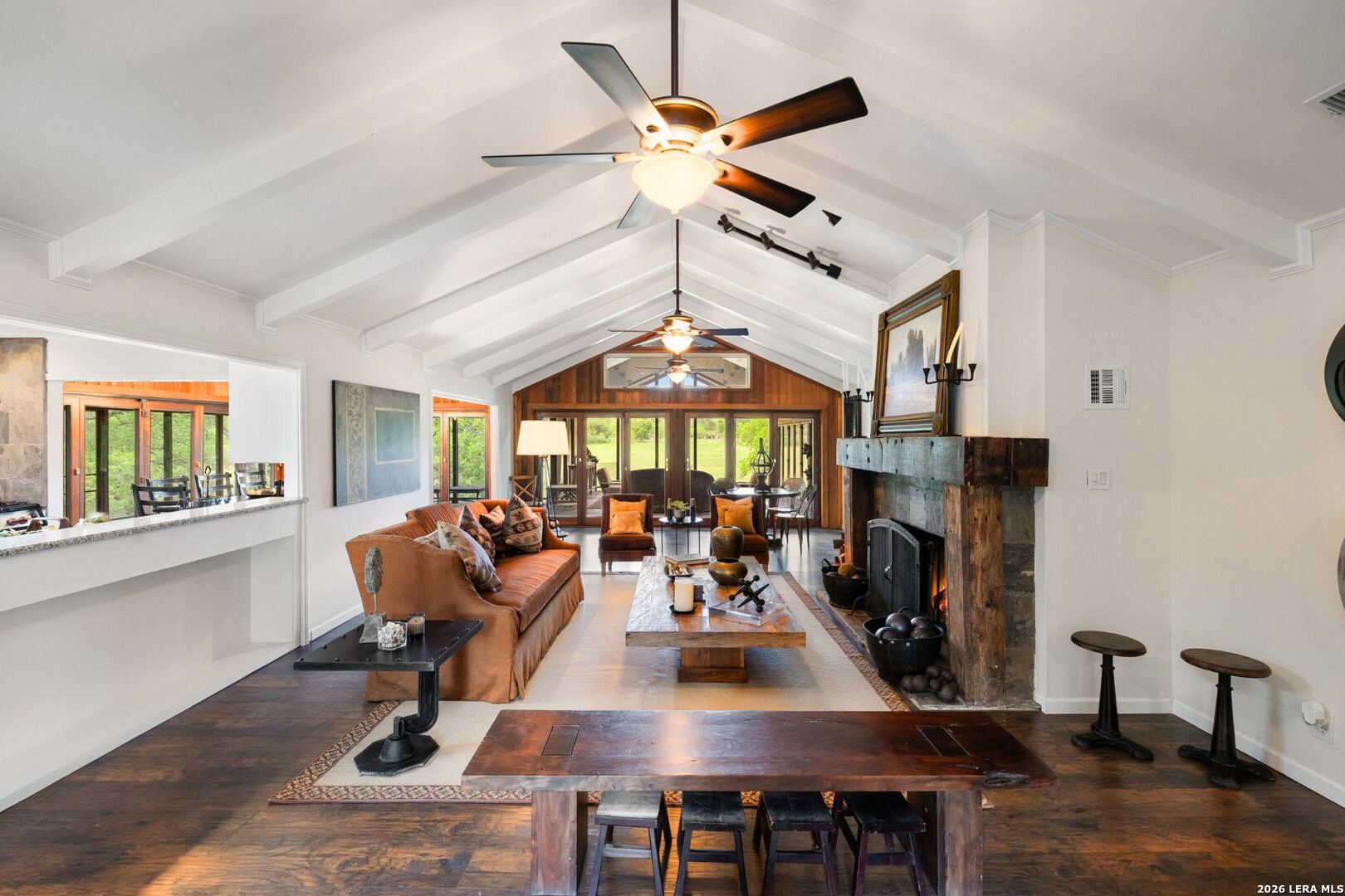 Set along one of the most coveted stretches of the Blanco River, this remarkable 67+/- acre riverfront ranch offers an exceptional combination of land, water, and improvements in the heart of Wimberley, Texas. With approximately 1,450 feet of crystal-clear, deep-water Blanco River frontage, the property delivers year-round recreation, peaceful scenery, and rare access to one of the Hill Country's most iconic rivers. The ranch is thoughtfully improved with two updated residences, each positioned to take full advantage of the surrounding landscape and river views. The River Home features 3 beds and 2 baths with a modern, light-filled design, quality finishes, a spacious kitchen, and a striking stone fireplace. A seated sunroom overlooks the Blanco River, creating an ideal space to relax and take in the sights and sounds of the water below. The Llama Home offers 3 beds and 2 baths and also overlooks the river, with vaulted ceilings, a fireplace, a large game room, and an oversized sunroom capturing sweeping views of the river and rolling hills beyond-perfect for entertaining or extended stays. Additional improvements include a large equipment barn complete with a bunkhouse, kitchen, and bathroom, providing excellent flexibility for staff, guests, or multi-generational use. Gently rolling terrain, mature trees, and panoramic Hill Country views create a private and picturesque setting, all while being conveniently located within easy reach of Austin and San Antonio. Wimberley's vibrant arts scene, local dining, and small-town charm provide the perfect complement to this tranquil riverfront retreat. With its rare deep-water Blanco River frontage, multiple homes, and prime Wimberley location, this property presents a unique opportunity for a private family retreat, recreational ranch, or legacy Hill Country holding-offering the best of riverfront living and Texas Hill Country beauty.