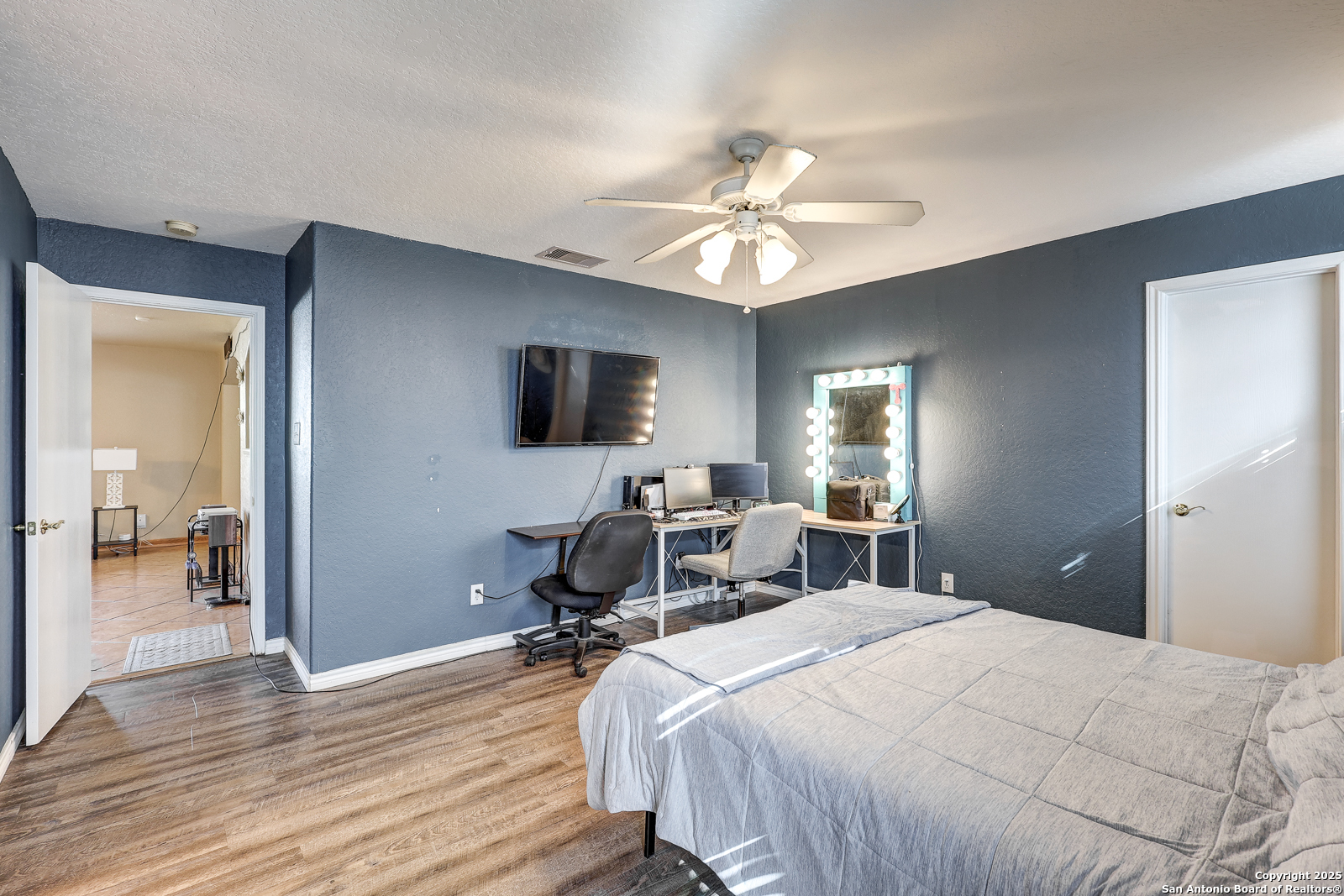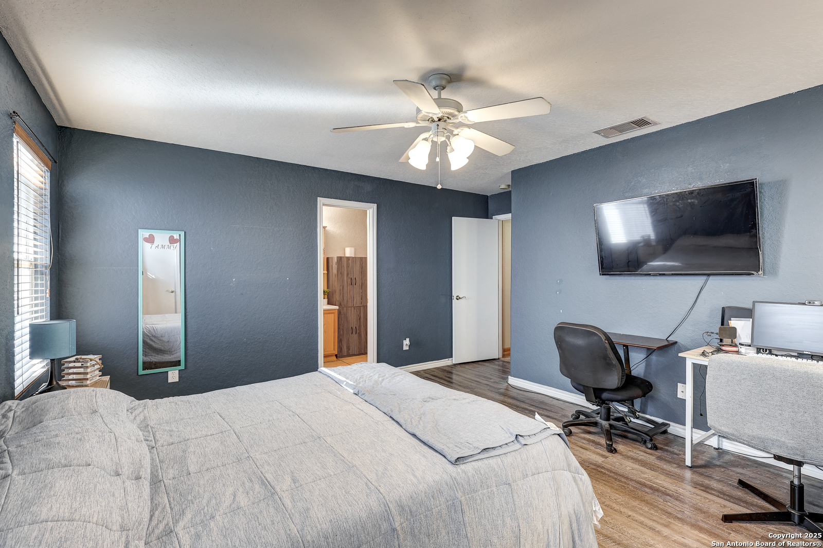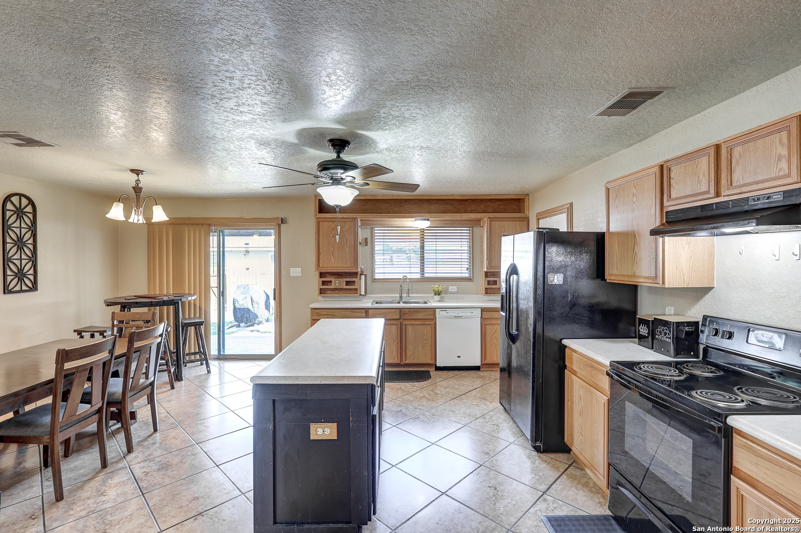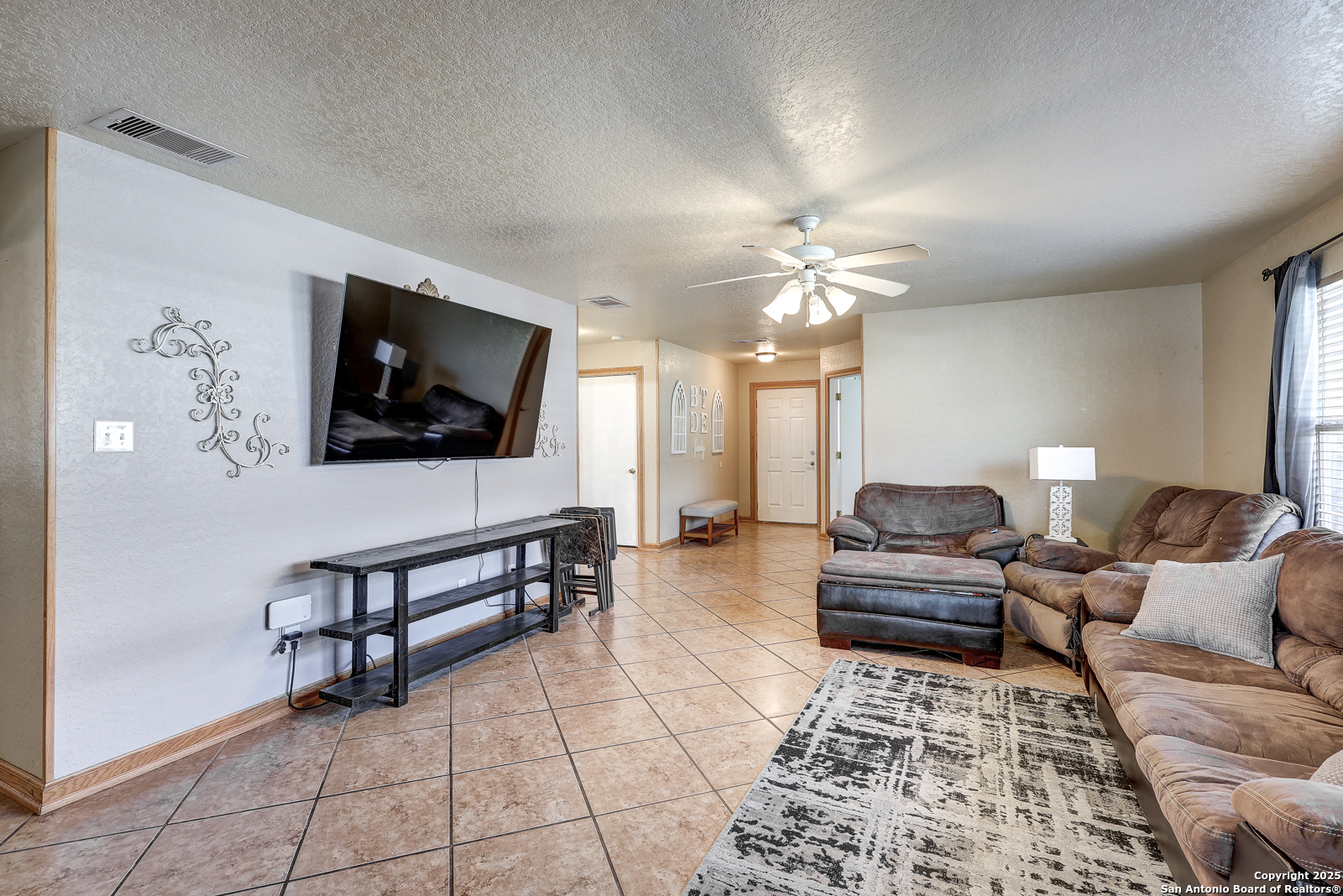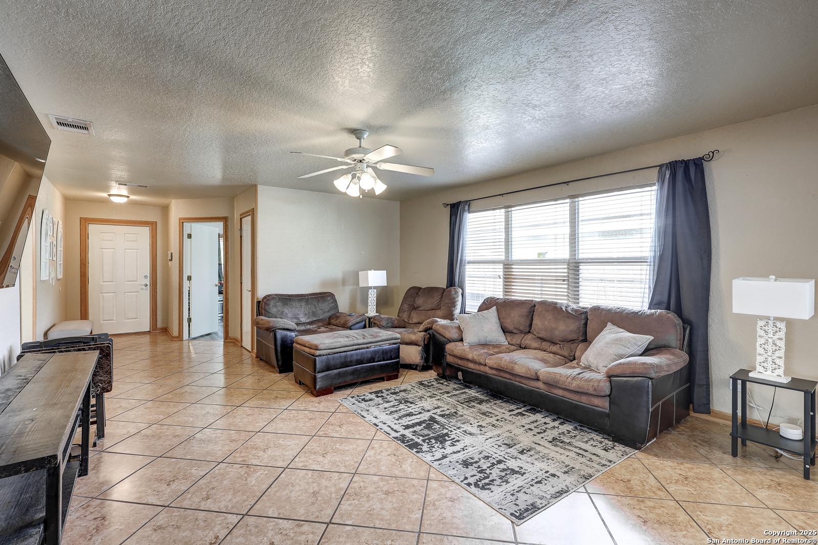 Welcome to 4714 Cornudo in San Antonio's sought-after West Side near Alamo Ranch. This inviting 3 bedroom, 2 bathroom home spans approximately 2003 square feet and features a spacious open-concept design. The large living room flows into the dining area and island kitchen, where you will find abundant cabinet and countertop space perfect for both cooking and entertaining. The master suite offers plenty of space for a sitting area and includes a full bath with a combination tub and shower plus a single vanity. All bedrooms feature easy-to-maintain vinyl flooring. Recent updates include a brand-new roof and fresh exterior paint, giving the home both style and peace of mind. Step outside to enjoy a covered patio and a second patio in the yard, providing excellent spaces for gatherings and relaxation. Conveniently located just minutes from Alamo Ranch shopping, dining, and entertainment, this home blends comfort, updates, and location into one exceptional opportunity.