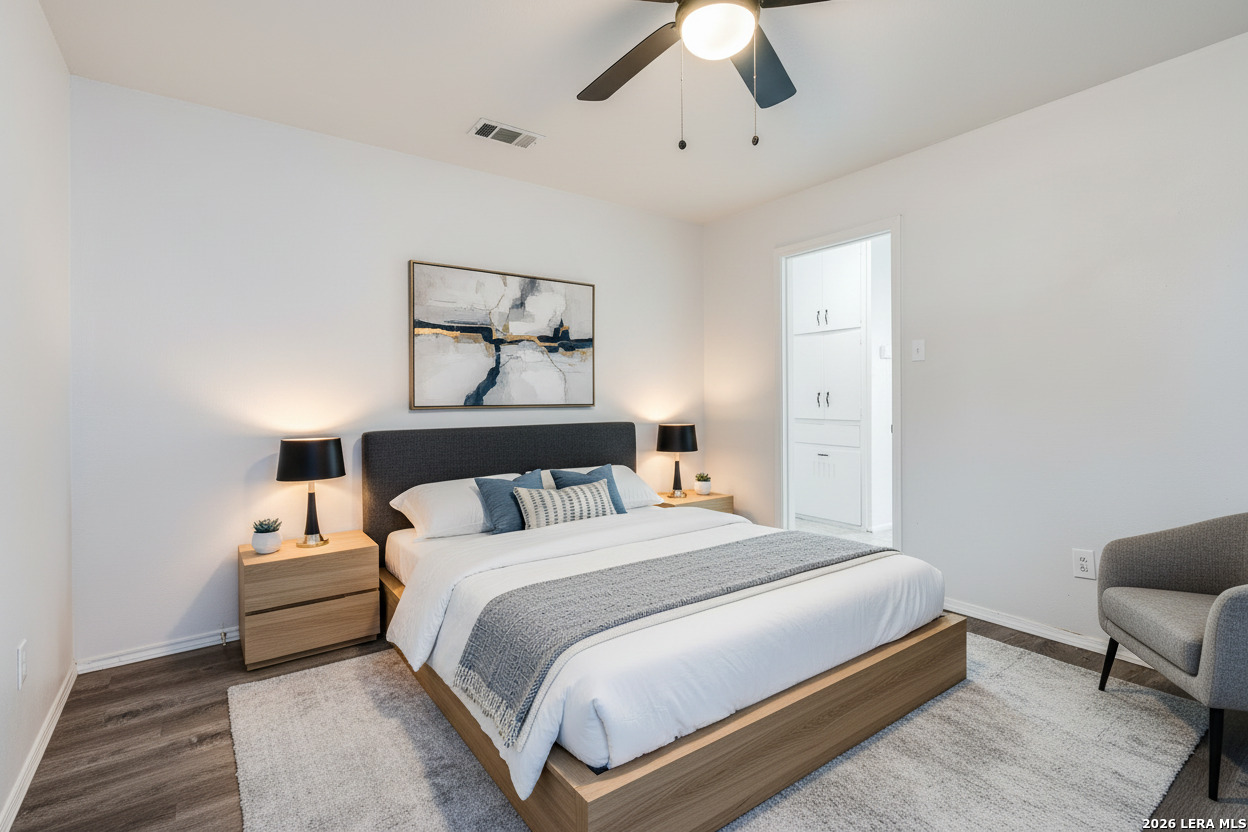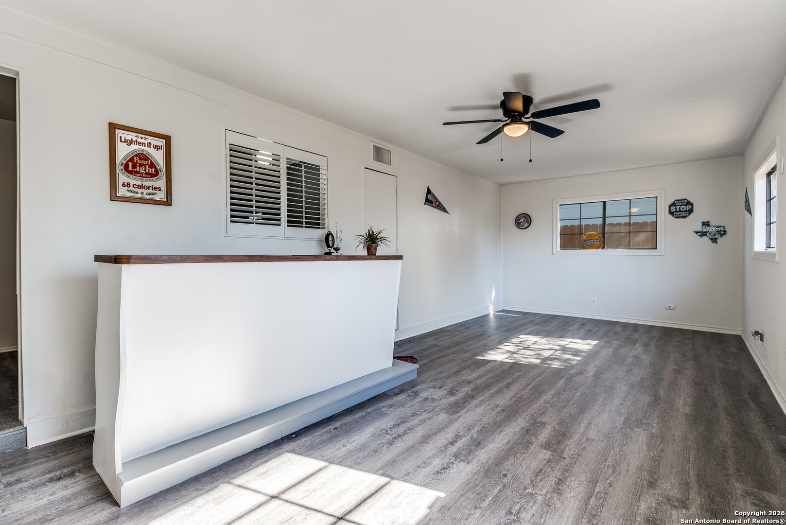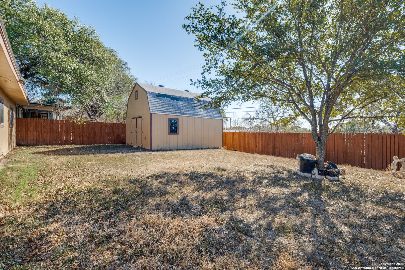 Welcome to this beautifully cared-for home in Glenoaks Park, where peacocks freely roam and add to the neighborhood's charm. The thoughtfully designed floor plan offers comfort and functionality, enhanced by fresh paint and new flooring throughout. Recent upgrades include a metal roof, brand-new 2025 HVAC system, double-pane windows, updated ceiling fans, and modern light fixtures. A versatile flex space at the back features a built-in bar and tabletop-perfect for entertaining, a home office, or a hobby room. Enjoy the serene backyard with a covered patio, ideal for relaxing outdoors, along with a spacious storage shed for added convenience. Centrally located with quick access to Loop 410, I-10, the Medical Center, Wurzbach Parkway, and more. An excellent opportunity for a 1031 exchange, owner-occupant, or investment property-this is one you won't want to miss!