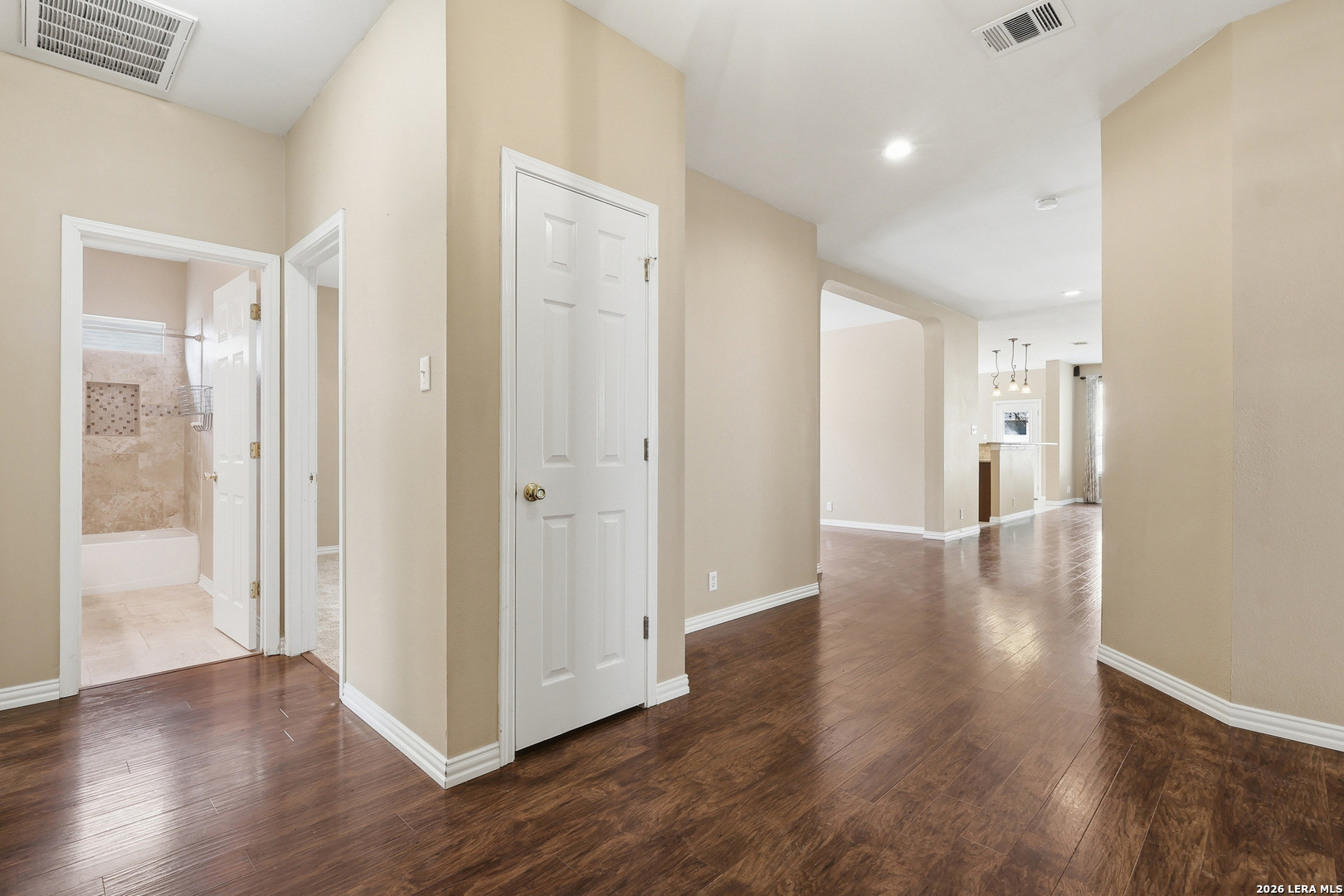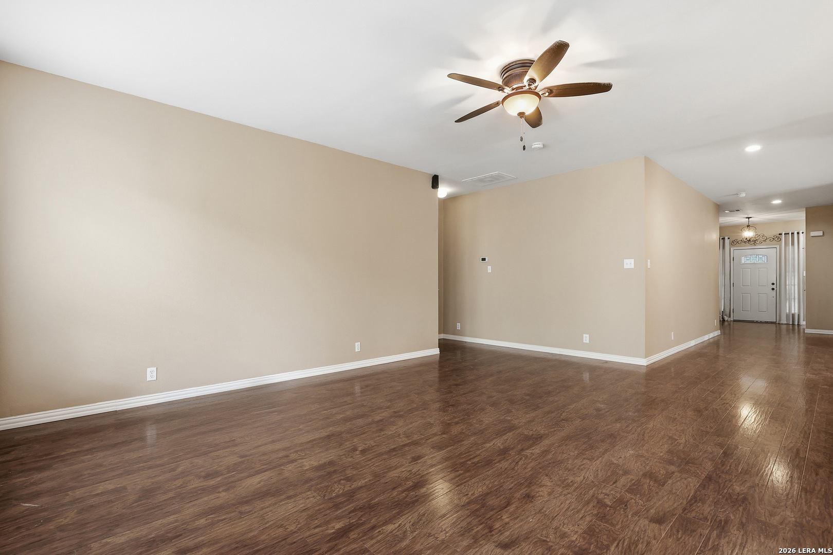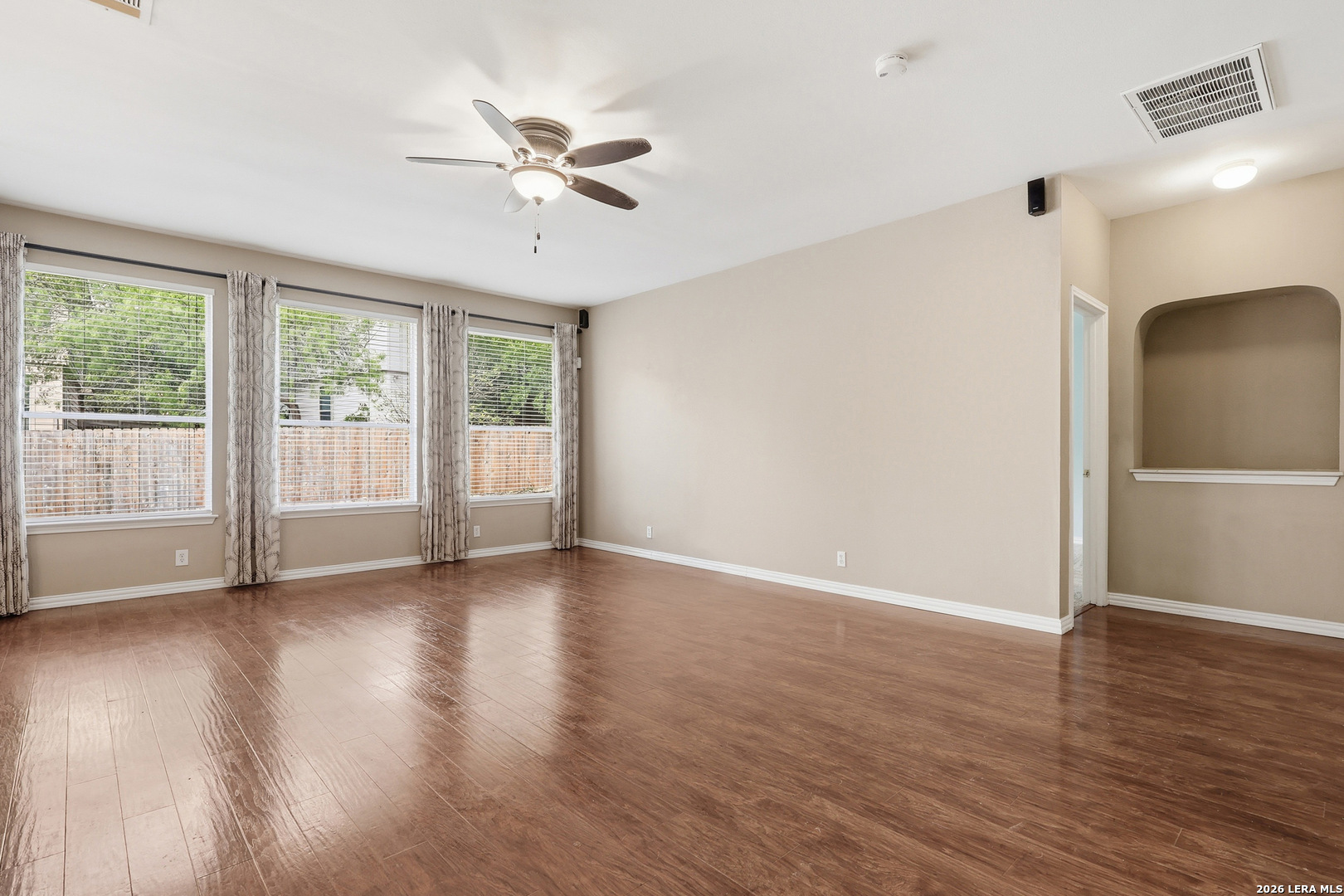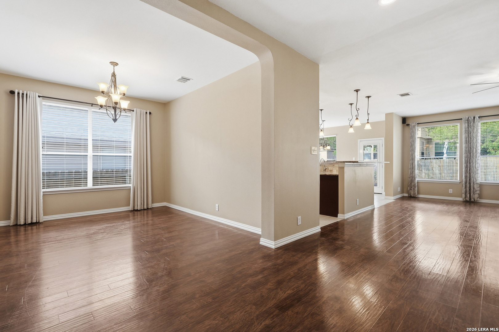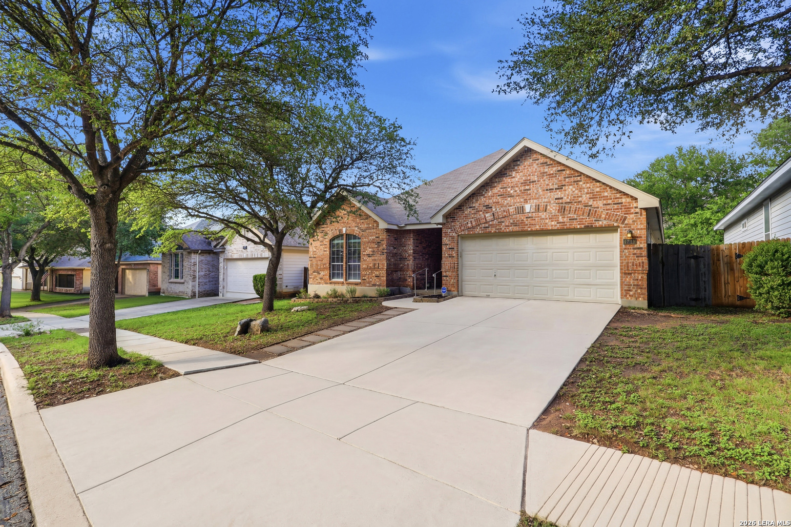 Welcome home to this beautifully maintained one-story home on the highly sought-after tree-lined street of Emden Hollow in Stuebing Ranch. This spacious, open floor plan features beautiful high ceilings, multiple living and dining areas, and a thoughtfully designed layout with the primary suite tucked privately at the rear and all secondary bedrooms positioned at the front of the home. The front bedroom is filled with natural light from a large window and offers great flexibility as a home office or guest space, along with an additional flex area that can be used as a dining room, study, or playroom. The kitchen and living areas flow seamlessly, creating an ideal setup for both everyday living and entertaining. Step outside to a shaded backyard surrounded by mature trees and a custom wood deck, perfect for relaxing or hosting. Located just a short walk to the neighborhood pool and amenity center, this home offers comfort, functionality, and an inviting setting in one of the area's most desirable neighborhoods.