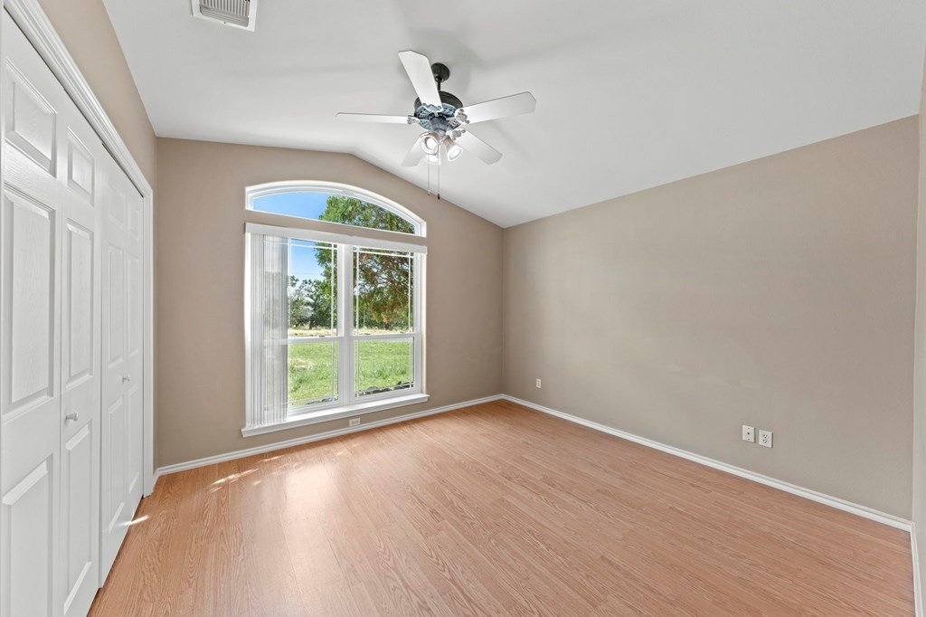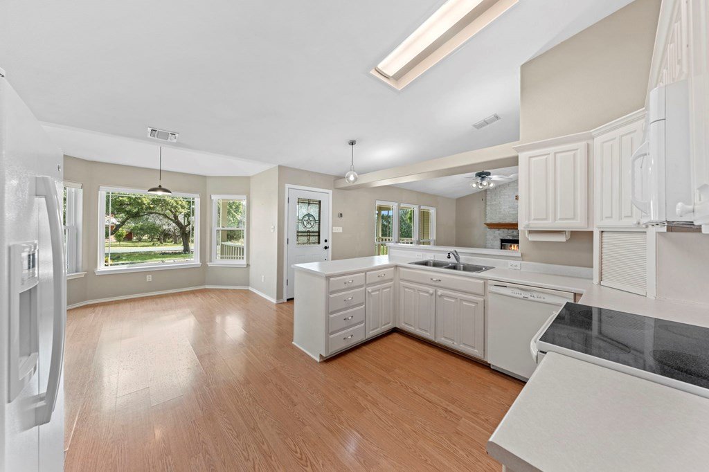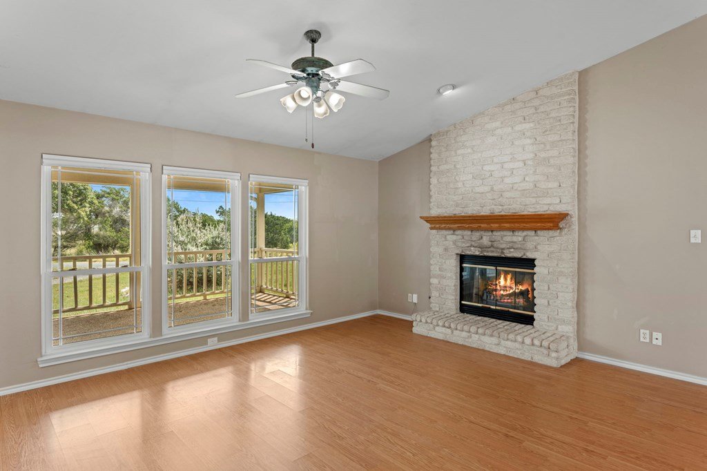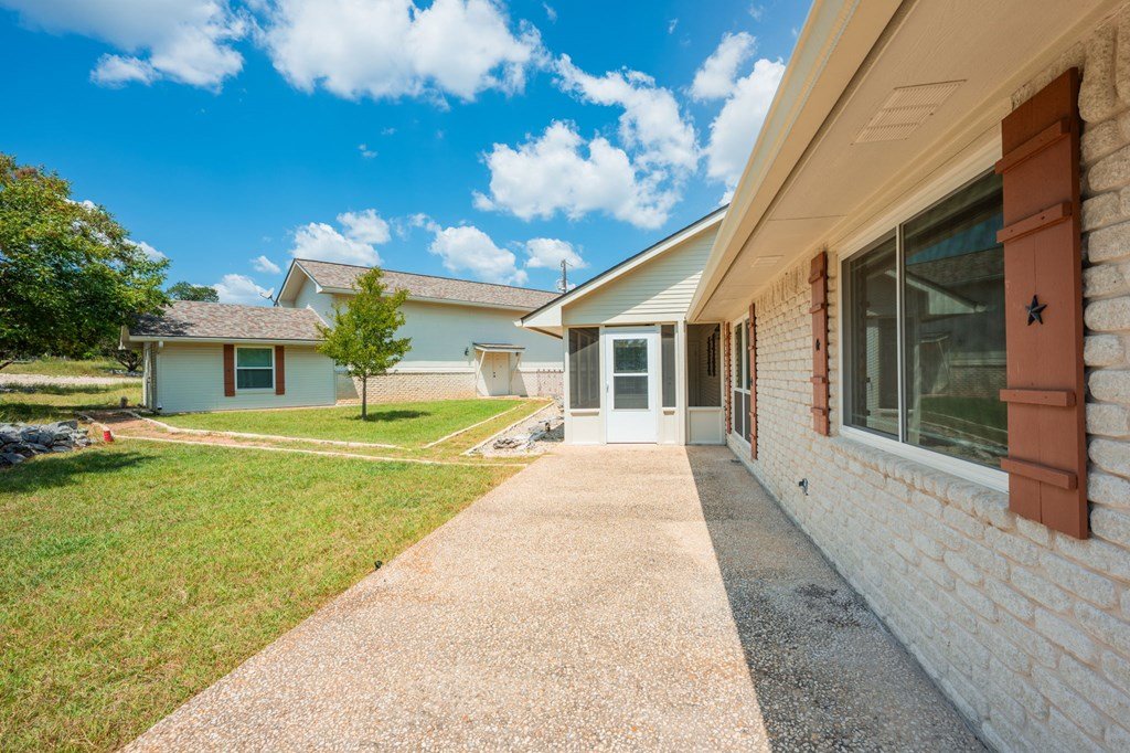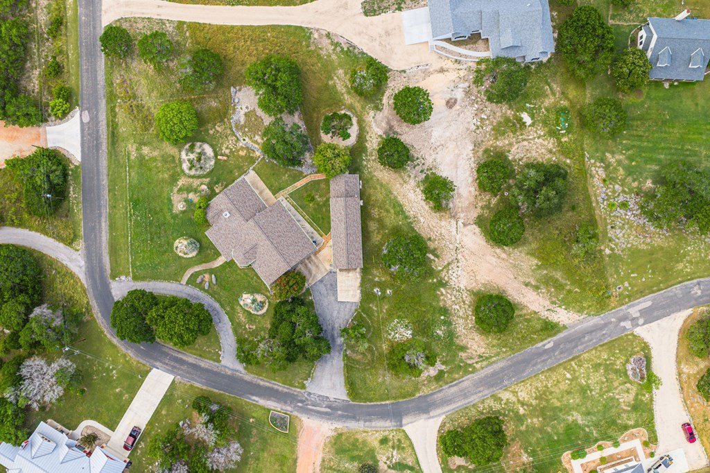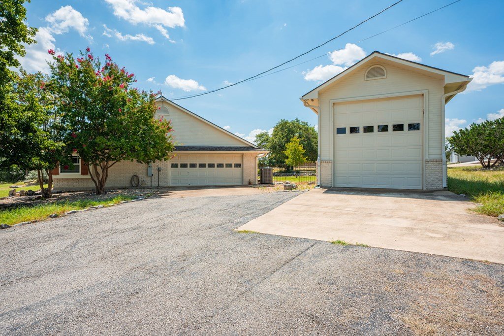 Discover this charming 3-bedroom, 2-bath home with 1,965 sq. ft. on a spacious .83-acre corner lot in Highlands Ranch. A welcoming circle drive & large front porch invite you into relaxed Hill Country living. Inside, vaulted ceilings enhance the open living & dining areas, while the eat-in kitchen offers space for everyday meals. The split floor plan provides privacy with guest bedrooms & an updated guest bath, while the primary suite features an ensuite bath & walk-in closet. Updates include a new front door & screen door, new windows & Bali shades. Oversized rooms are a highlight, from the great room & bedrooms to the laundry. The attached garage offers convenience with a front extension, workbench & sink. A true standout is the RV barn - built to house a 40-ft coach, boat, storage, or workshop - with 2 entrances, a 13 ft roll-up door & front storage. Architecturally designed to complement the home, it adds both function & style. This property combines thoughtful design, unique amenities & exceptional value. Call today to schedule your private showing and see all that this home has to offer!
