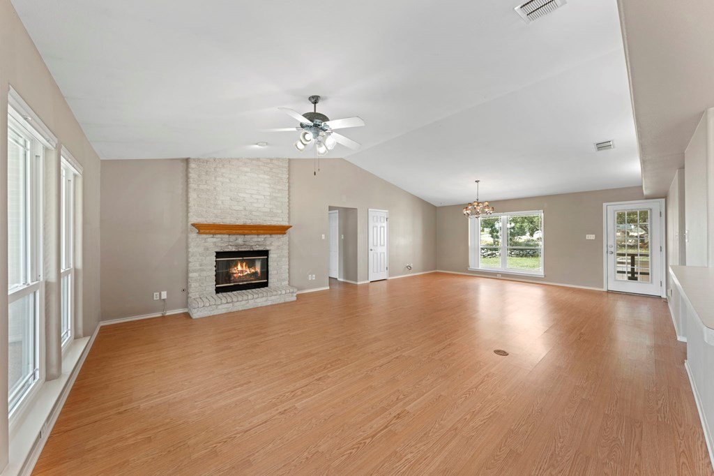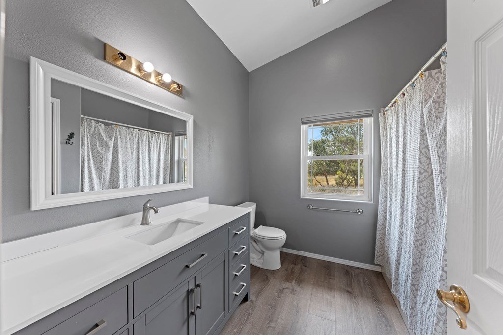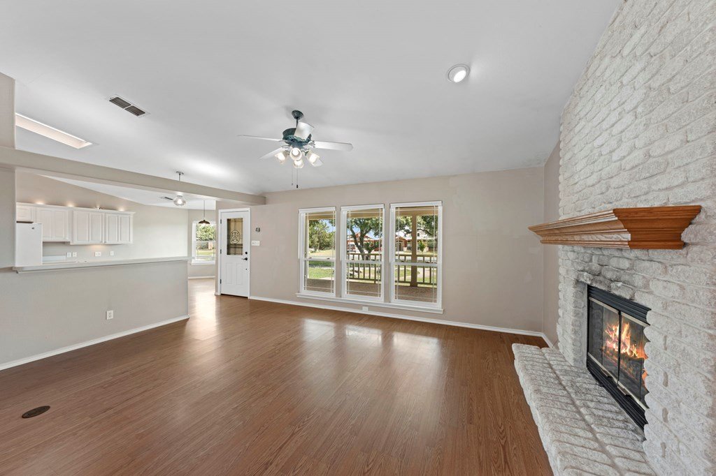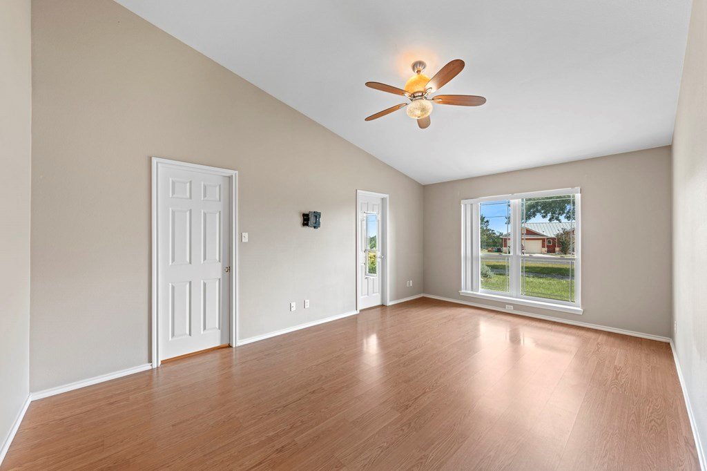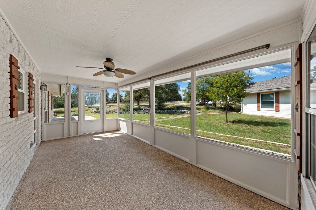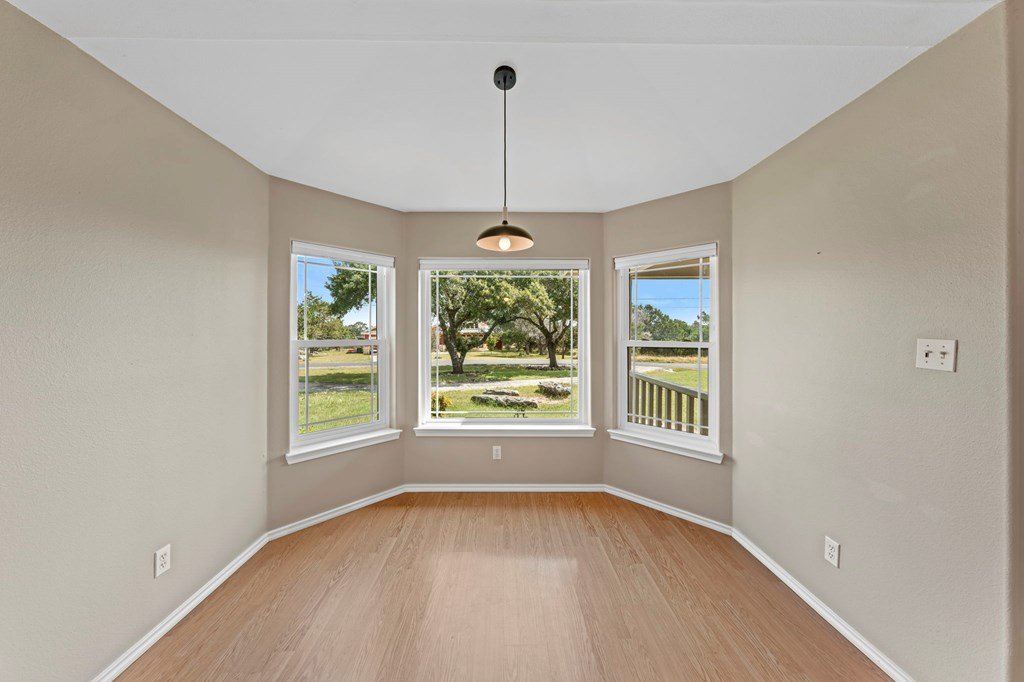 Discover this charming 3-bedroom, 2-bath home with 1,965 sq. ft. on a spacious .83-acre corner lot in Highlands Ranch. A welcoming circle drive & large front porch invite you into relaxed Hill Country living. Inside, vaulted ceilings enhance the open living & dining areas, while the eat-in kitchen offers space for everyday meals. The split floor plan provides privacy with guest bedrooms & an updated guest bath, while the primary suite features an ensuite bath & walk-in closet. Updates include a new front door & screen door, new windows & Bali shades. Oversized rooms are a highlight, from the great room & bedrooms to the laundry. The attached garage offers convenience with a front extension, workbench & sink. A true standout is the RV barn - built to house a 40-ft coach, boat, storage, or workshop - with 2 entrances, a 13 ft roll-up door & front storage. Architecturally designed to complement the home, it adds both function & style. This property combines thoughtful design, unique amenities & exceptional value. Call today to schedule your private showing and see all that this home has to offer!