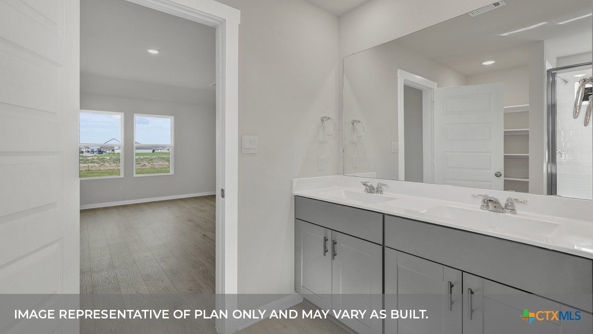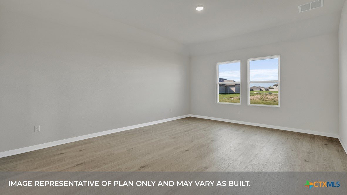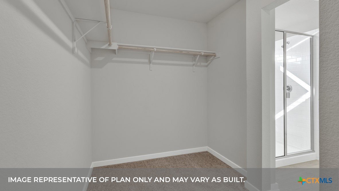 APRIL ESTIMATED COMPLETION DATE. The Coleman is one of our one-story floorplans featured in our Hartland Ranch community in Lockhart, Texas. This home includes 3 bedrooms and 2 bathrooms across 1,668 square feet and a 3-car garage. With 2 farmhouse exteriors to choose from, the Coleman is sure to catch your eye. Enter the home from the front porch, and cross through the foyer to the open living area. The family room, dining and kitchen space are designed as an open concept, allowing conservations to flow easily across the living area. The kitchen includes quartz countertops, decorative tile backsplash, a large island with undermount sink, a corner pantry closet, stainless-steel appliances and 36’’ upper cabinets. The utility room is off the kitchen and includes an extra closet for linens and other kitchen items. Natural light beams in through three rear windows along the family room wall. The primary bedroom is off the family room and includes an attached bathroom. Enjoy the 5’ walk in shower, raised cultured marble vanity with double sinks, private toilet area with a door, and walk-in closet in this relaxing bathroom space. The secondary bedrooms are located at the front of the house, off the foyer. There is a hall bathroom that includes a shower/tub combination as well as extra shelving for storage or décor. The Coleman includes vinyl flooring throughout the common areas of the home and the primary bedroom, and carpet in the secondary bedrooms. All our new homes feature a covered back patio, full sod, an irrigation system in the front and back yard, and full gutters. This home features our America’s Smart Home base package, which includes the Video Front Doorbell, Front Door Deadbolt Lock, Home Hub, Thermostat, and Deako® Smart Switches.