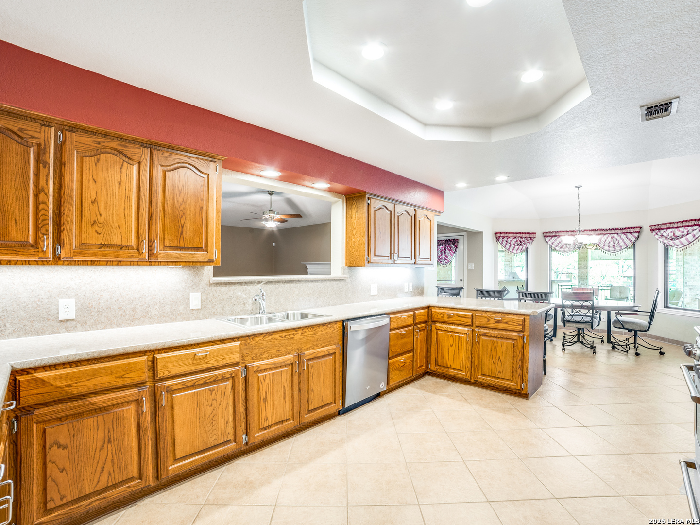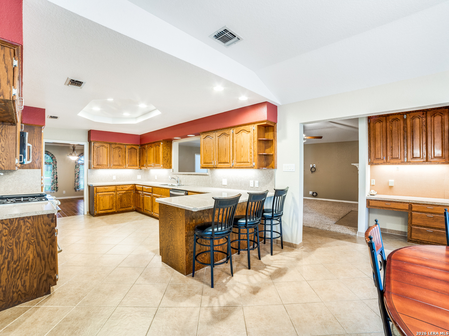 This meticulously maintained 2,562 sq ft custom home sits on 1.011 acres and offers 3 bedrooms, 2 1/2 baths, a dedicated office, formal dining room, breakfast area, custom wood burning fireplace, and an oversized utility room with sink and abundant storage. It includes an alarm system, Generac backup generator (250-gallon natural gas / propane backup tank installed in 2023) solar panels for extremely low electric bill, and a water softener system. The 982 sq ft oversized 2-car garage provides space for a gym, game room area or workshop. Outdoor living shines with a large covered patio enclosed by a wrought iron gate, complete with a bar, outdoor kitchen (gas grill, burner, fridge, sink), and roll down screens. the backyard features a wood burning BBQ pit and raised garden beds. A standout feature is the 30x40 custom shop with a 3-car covered carport, commercial sink and full bathroom. this property also includes an RV hookup, multiple hose bibs, and 30+ year mature oak trees offering shade over yard and play area. Additional upgrades include newer windows, solar screens, gutters, eave accent lighting, and commercial grade A/C ducts with two split units. If you looking for all the comforts of home, this home is for you!!