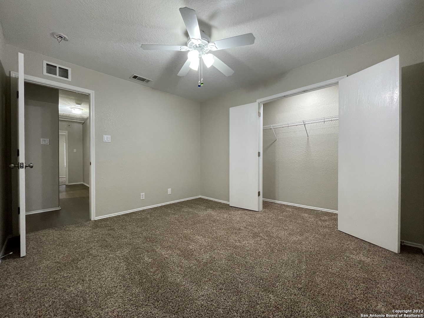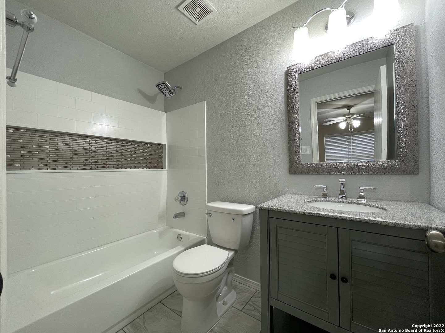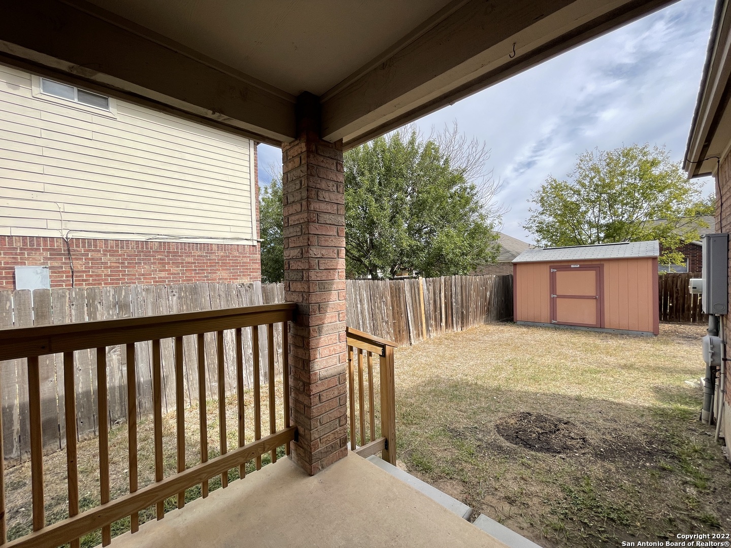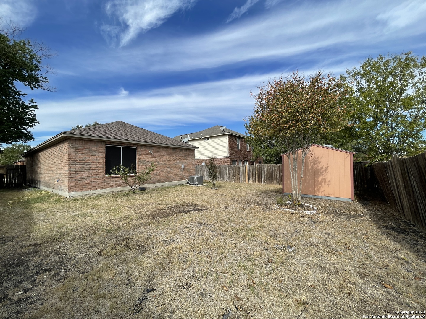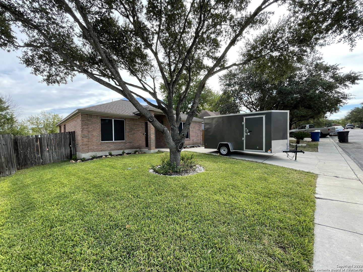 Single family home for rent in northeast San Antonio. Home offers three bedrooms with carpet, 2 fully updated bathrooms and vinyl wood flooring throughout the rest of the home. Kitchen includes range/stove, oven, microwave, dishwasher and fridge. Backyard includes a private shed for tenancy use, a covered patio and spacious grass area. A double wide driveway is offered for parking. Washer and dryer connections are available in the utility/laundry room. $25 extra will be added to the rent for an HVAC filter delivery program which is mandatory with properties we manage.