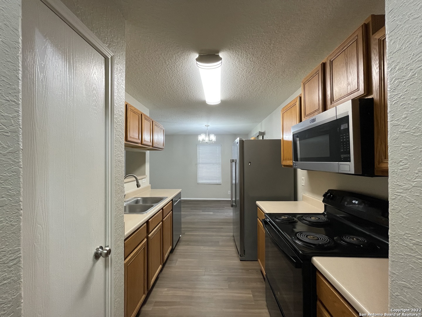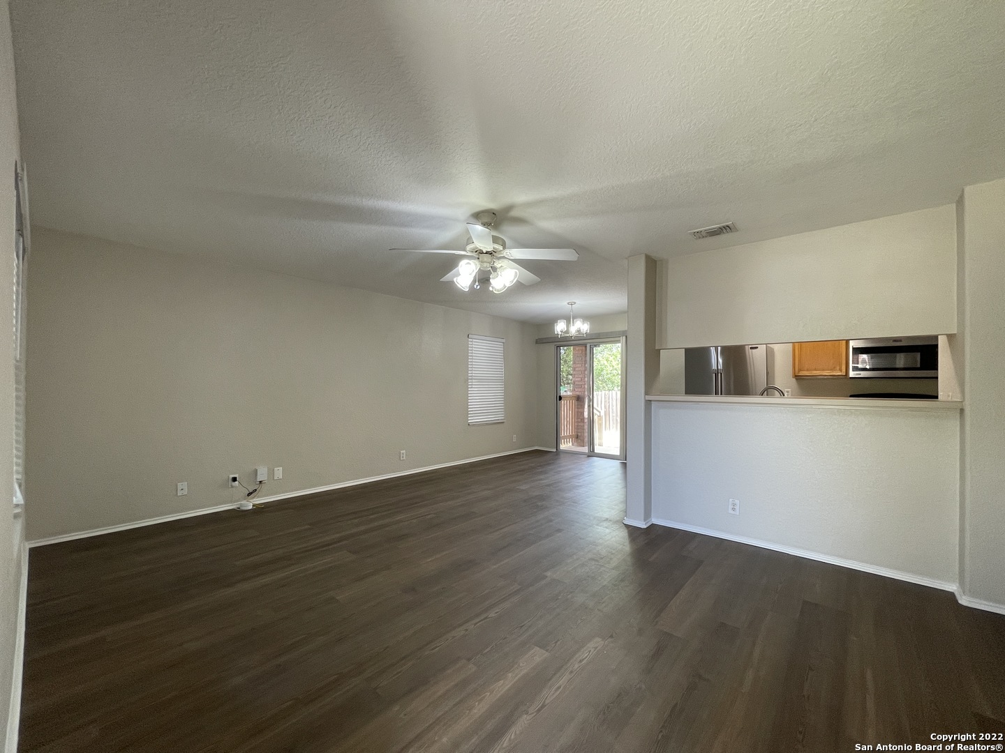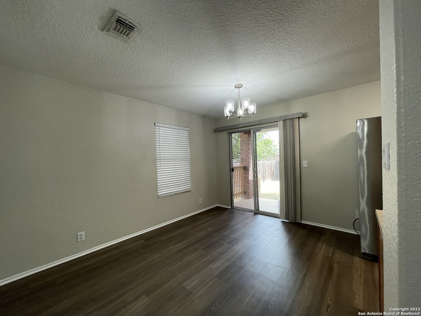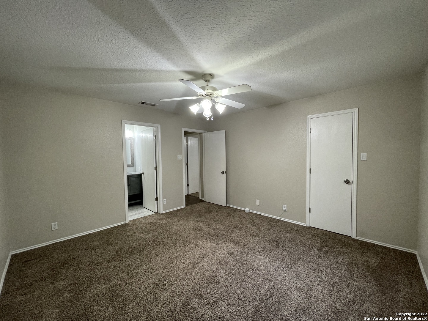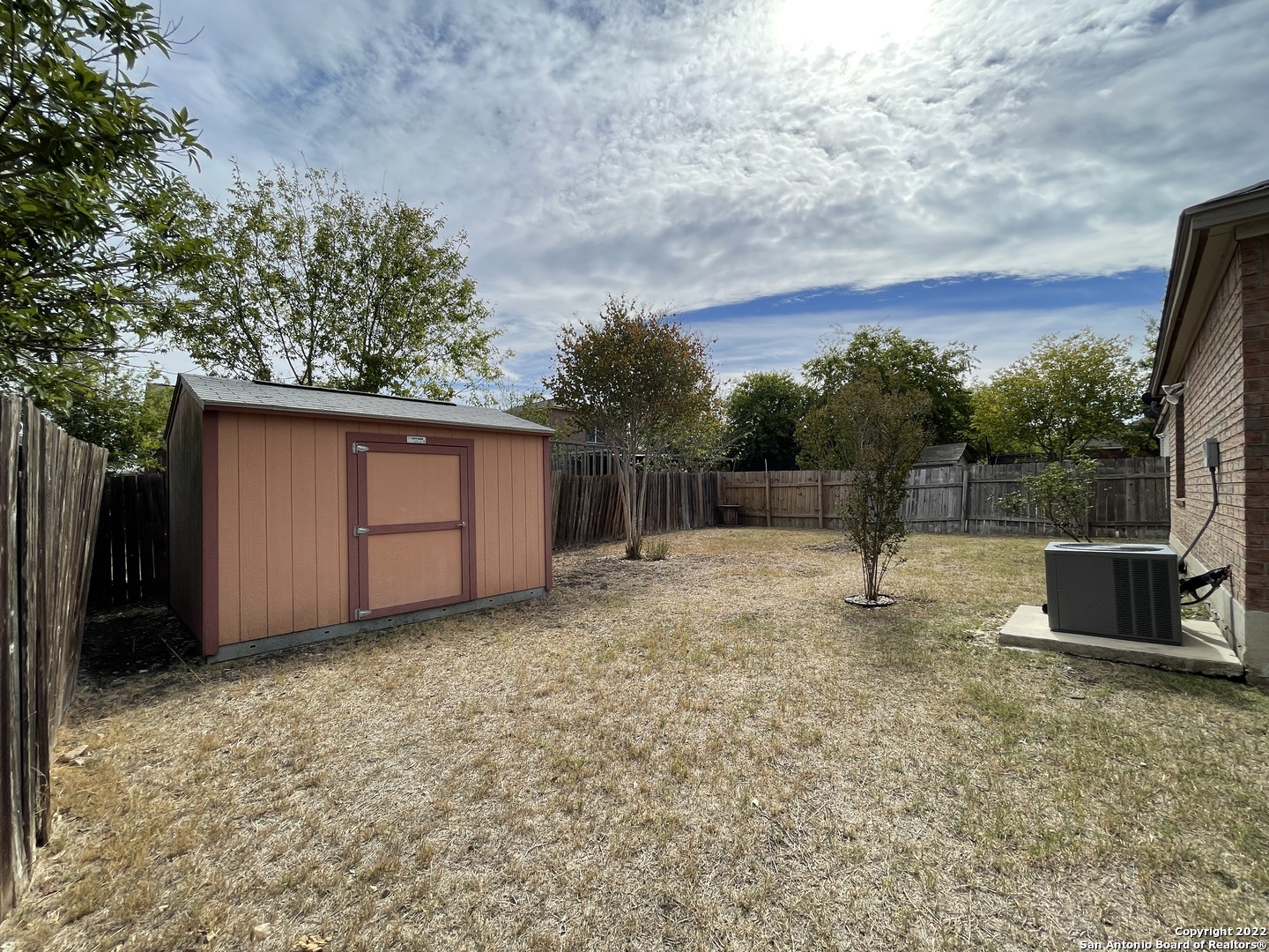 Single family home for rent in northeast San Antonio. Home offers three bedrooms with carpet, 2 fully updated bathrooms and vinyl wood flooring throughout the rest of the home. Kitchen includes range/stove, oven, microwave, dishwasher and fridge. Backyard includes a private shed for tenancy use, a covered patio and spacious grass area. A double wide driveway is offered for parking. Washer and dryer connections are available in the utility/laundry room. $25 extra will be added to the rent for an HVAC filter delivery program which is mandatory with properties we manage.