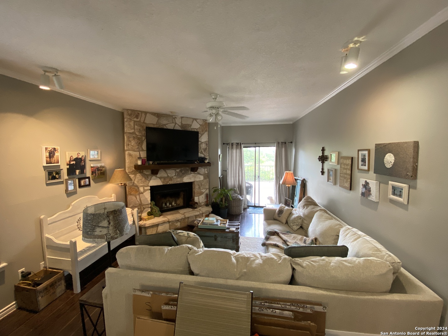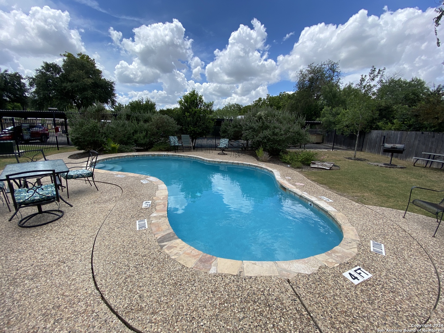 Enjoy the serene beauty of the Guadalupe River from this stunning 2 bedroom, 2 bathroom condo. In Downtown New Braunfels, its prime location offers easy access to shopping, fine dining, parks and both the Comal and Guadalupe River. This rental features modern stained concrete floors, a cozy stone fireplace, and a large back patio perfect for relaxing and taking in the river views. The kitchen boasts granite countertops and includes a fridge. You'll have access to community amenities such as a gated pool, private river park, and kayak storage.