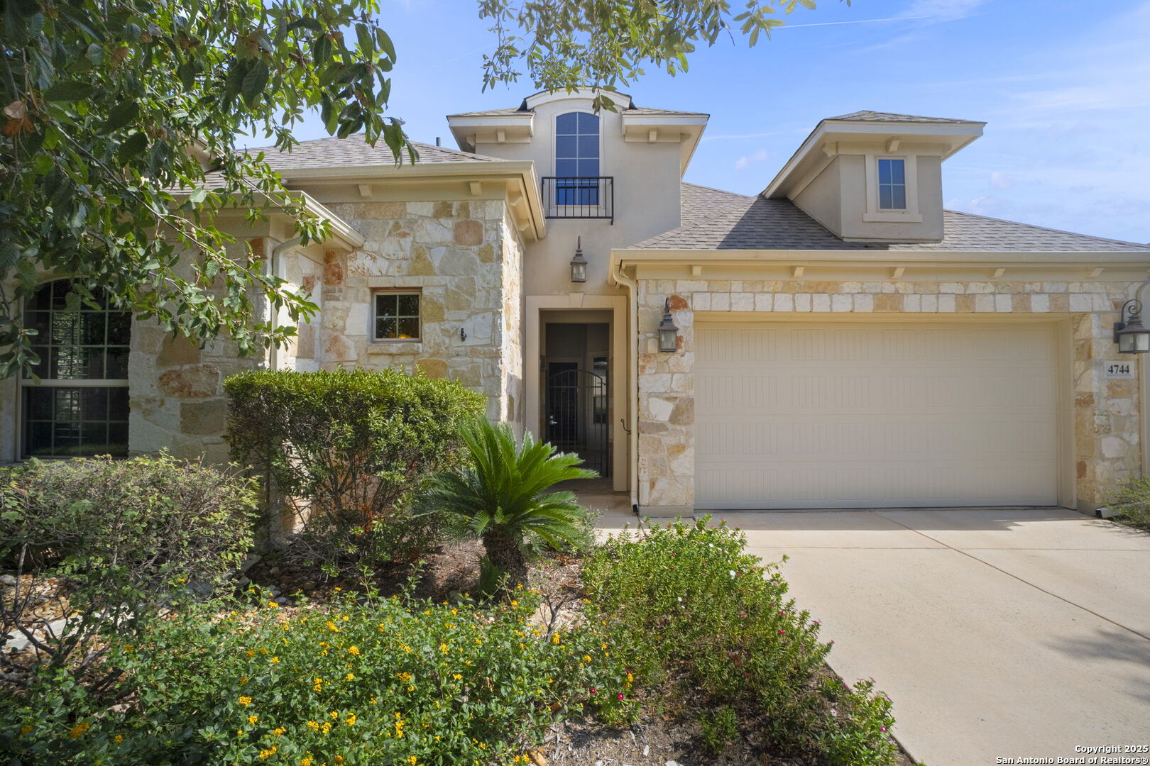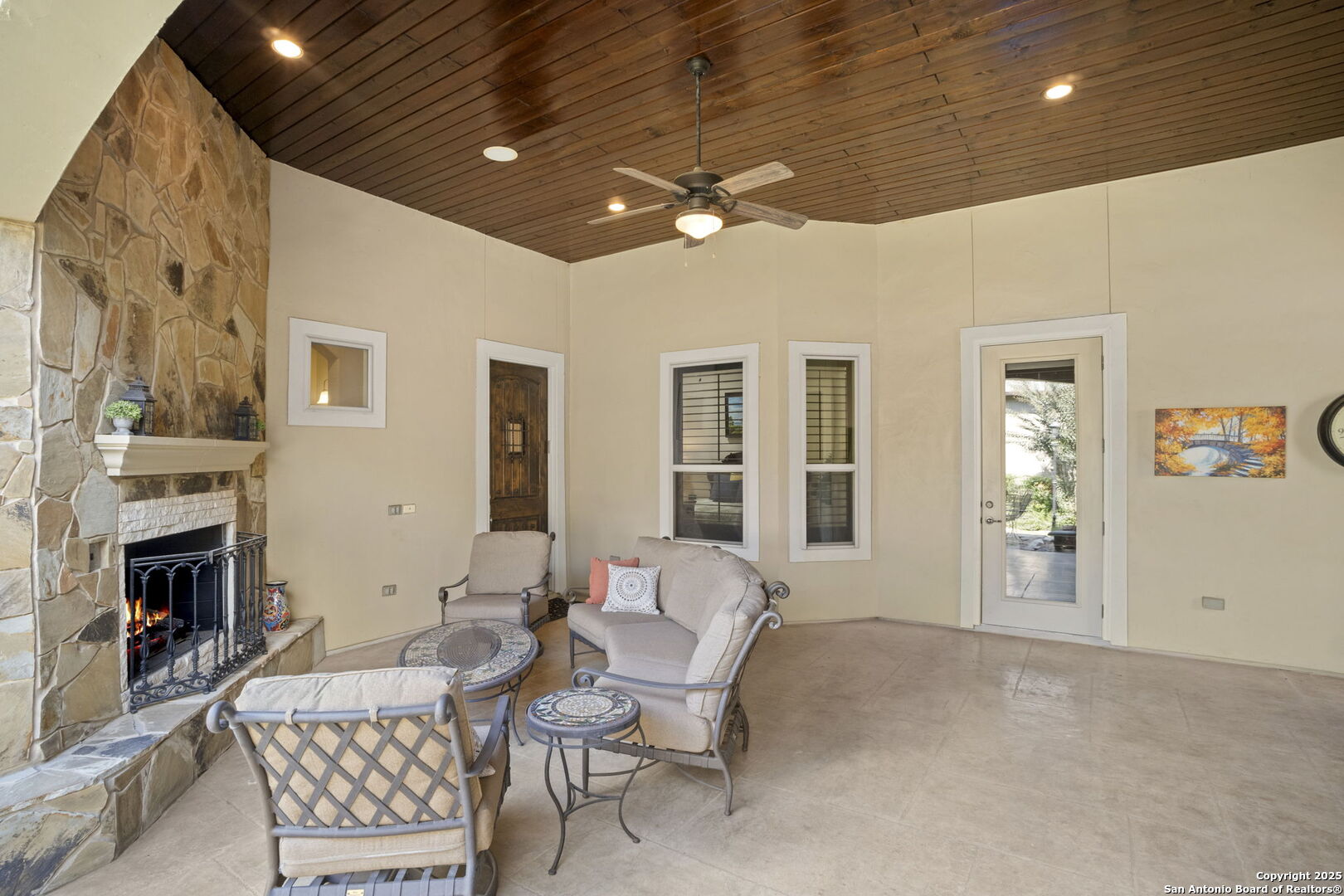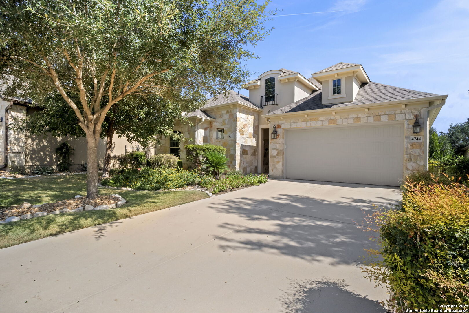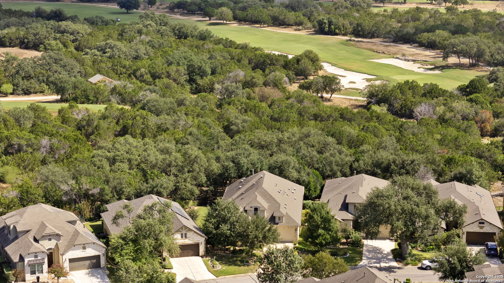Welcome to this exceptional 3-bedroom home with a private casita, versatile flex space, and upscale finishes throughout, located in the highly sought-after gated community of Amorosa in Cibolo Canyons. Nestled on a premium greenbelt lot with live oak trees and direct access to the scenic walking trails, this single-story residence offers the perfect balance of comfort, style, and functionality. Step inside to discover an open-concept interior with soaring ceilings, skylights, and thoughtfully selected timeless finishes throughout. The main home includes two bedrooms with a flexible space ideal for a home office, study, or secondary lounge-tailored to meet your modern lifestyle needs. The heart of the home is a chef's gourmet kitchen, showcasing granite countertops throughout, custom cabinetry, built-in buffet and a spacious pantry. Thermador appliances, including a built-in refrigerator, 6-burner gas range, and new dishwasher (installed September 2025). The large oven provides space for your cooking and baking creations along with a built-in microwave, and an expansive center island with bar seating-perfect for entertaining. Natural light pours in from skylights and the adjacent dining area, framed by large windows overlooking the tranquil backyard. The inviting living room centers around a striking stone fireplace, ideal for cozy evenings or hosting gatherings. The spacious primary suite is a luxurious retreat, featuring tray ceilings, a spa-inspired walk-in shower, dual granite-top vanities, and an oversized walk-in custom-designed closet. Separate from the main living areas, connected by another large, covered courtyard with an outdoor stone fireplace, the private casita awaits, including a full bath, bar sink, space for refrigerator or wine cooler, and a custom-built Murphy bed-perfect for multi-generational living, guests, or a private studio. Enjoy relaxing on your back deck overlooking the beautifully landscaped backyard with live oak trees, shaded serenity, and direct access to the community trail system. Just beyond the native greenbelt lies the lush fairways of the TPC golf course, enhancing the peaceful setting. Landscaping is maintained by the HOA, allowing for a low-maintenance lifestyle and more time to enjoy the community's top-tier amenities. Residents of Cibolo Canyons have access to two amenity centers: Amenity Center 1: Lazy river, splash pad, Olympic-size pool, soccer field, playground, fitness center, meeting facilities, and on-site HOA staff. Amenity Center 2 (Amorosa): Olympic-size pool, splash pad, fitness center, BBQ grills, and clubhouse. A rare opportunity to own a home that combines thoughtful design, versatile spaces, and the serenity of golf course living-this one is truly a must-see.