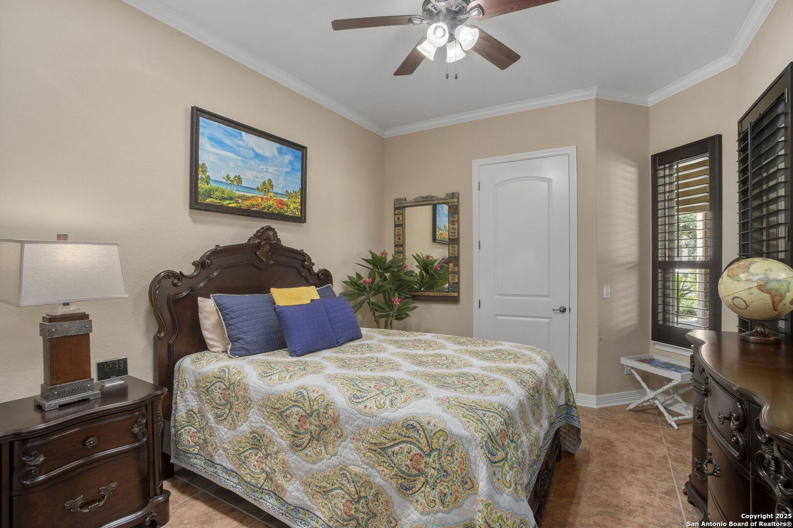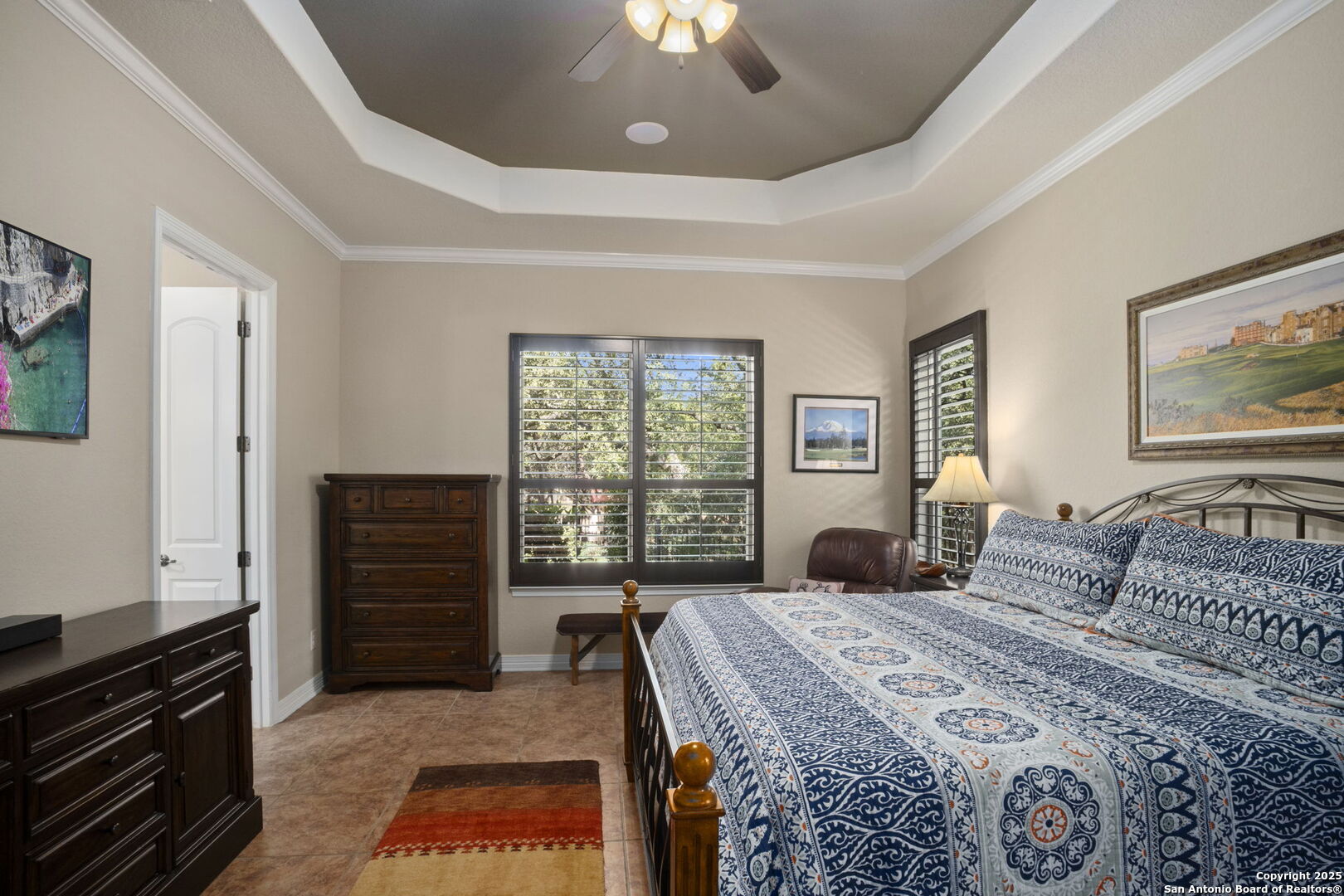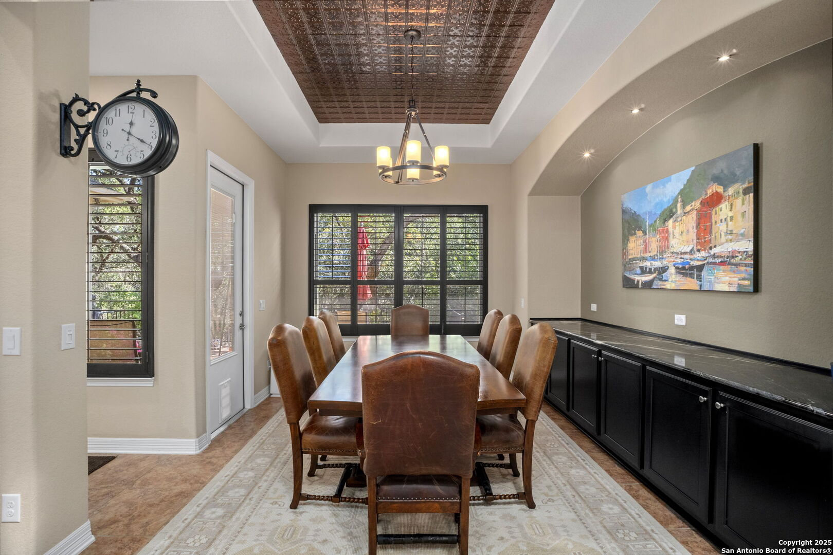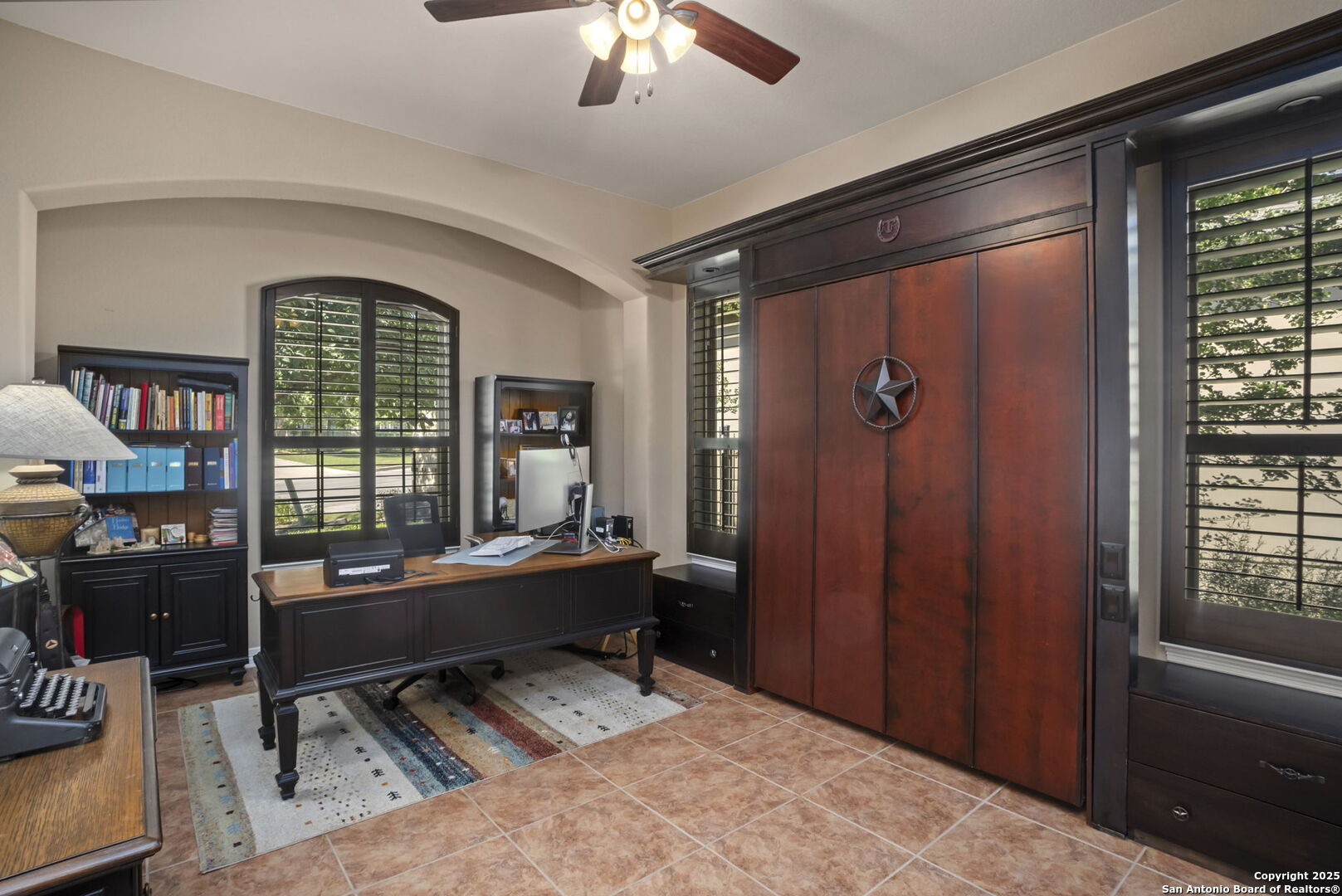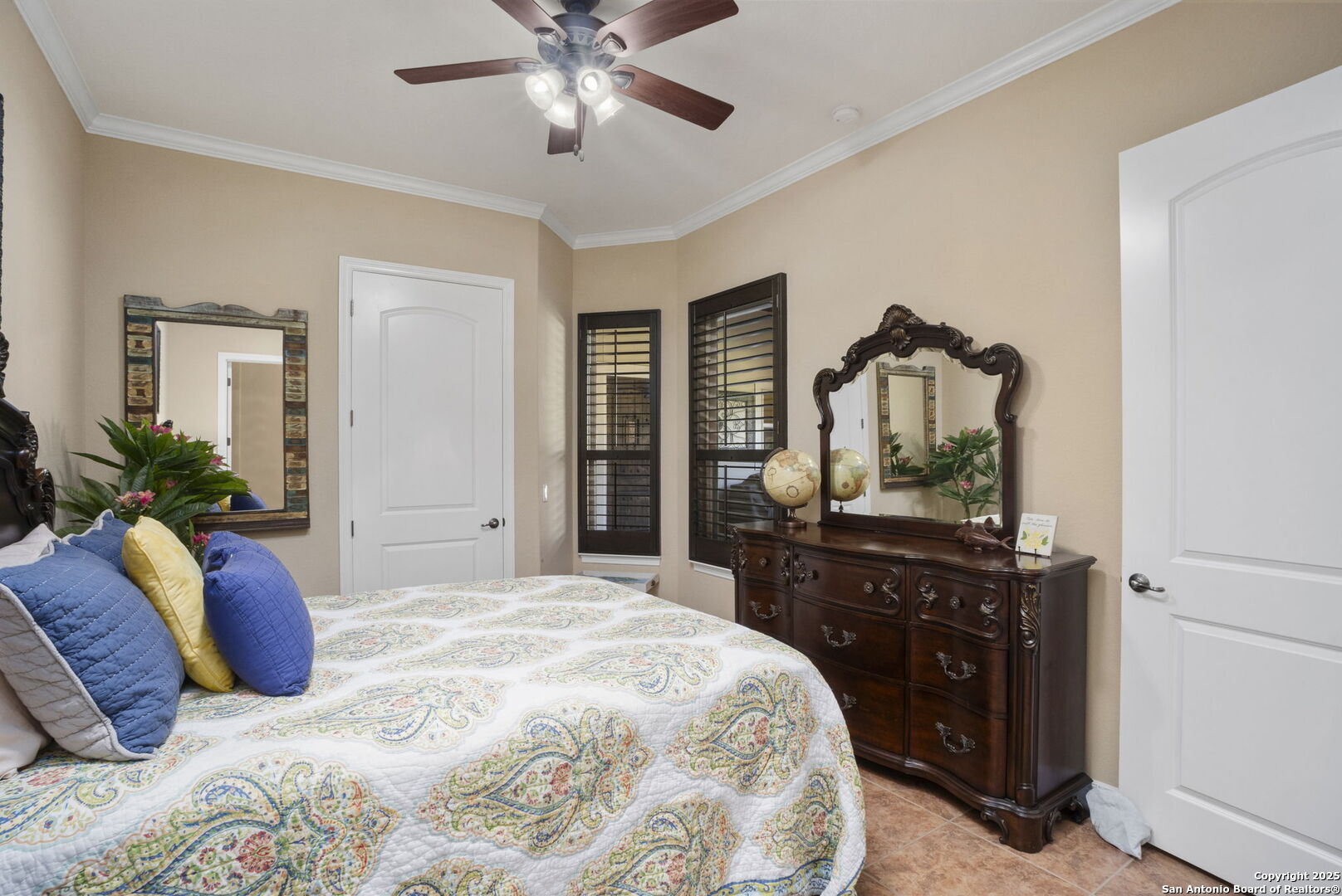 Welcome to this exceptional 3-bedroom home with a private casita, versatile flex space, and upscale finishes throughout, located in the highly sought-after gated community of Amorosa in Cibolo Canyons. Nestled on a premium greenbelt lot with live oak trees and direct access to the scenic walking trails, this single-story residence offers the perfect balance of comfort, style, and functionality. Step inside to discover an open-concept interior with soaring ceilings, skylights, and thoughtfully selected timeless finishes throughout. The main home includes two bedrooms with a flexible space ideal for a home office, study, or secondary lounge-tailored to meet your modern lifestyle needs. The heart of the home is a chef's gourmet kitchen, showcasing granite countertops throughout, custom cabinetry, built-in buffet and a spacious pantry. Thermador appliances, including a built-in refrigerator, 6-burner gas range, and new dishwasher (installed September 2025). The large oven provides space for your cooking and baking creations along with a built-in microwave, and an expansive center island with bar seating-perfect for entertaining. Natural light pours in from skylights and the adjacent dining area, framed by large windows overlooking the tranquil backyard. The inviting living room centers around a striking stone fireplace, ideal for cozy evenings or hosting gatherings. The spacious primary suite is a luxurious retreat, featuring tray ceilings, a spa-inspired walk-in shower, dual granite-top vanities, and an oversized walk-in custom-designed closet. Separate from the main living areas, connected by another large, covered courtyard with an outdoor stone fireplace, the private casita awaits, including a full bath, bar sink, space for refrigerator or wine cooler, and a custom-built Murphy bed-perfect for multi-generational living, guests, or a private studio. Enjoy relaxing on your back deck overlooking the beautifully landscaped backyard with live oak trees, shaded serenity, and direct access to the community trail system. Just beyond the native greenbelt lies the lush fairways of the TPC golf course, enhancing the peaceful setting. Landscaping is maintained by the HOA, allowing for a low-maintenance lifestyle and more time to enjoy the community's top-tier amenities. Residents of Cibolo Canyons have access to two amenity centers: Amenity Center 1: Lazy river, splash pad, Olympic-size pool, soccer field, playground, fitness center, meeting facilities, and on-site HOA staff. Amenity Center 2 (Amorosa): Olympic-size pool, splash pad, fitness center, BBQ grills, and clubhouse. A rare opportunity to own a home that combines thoughtful design, versatile spaces, and the serenity of golf course living-this one is truly a must-see.