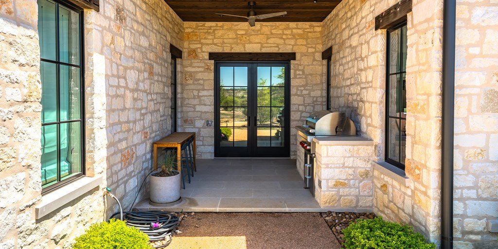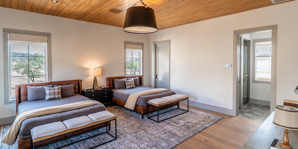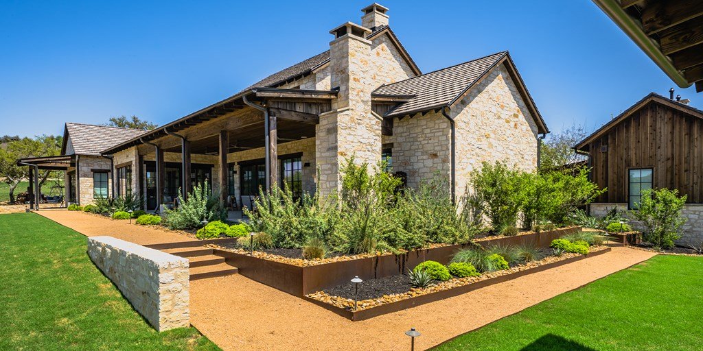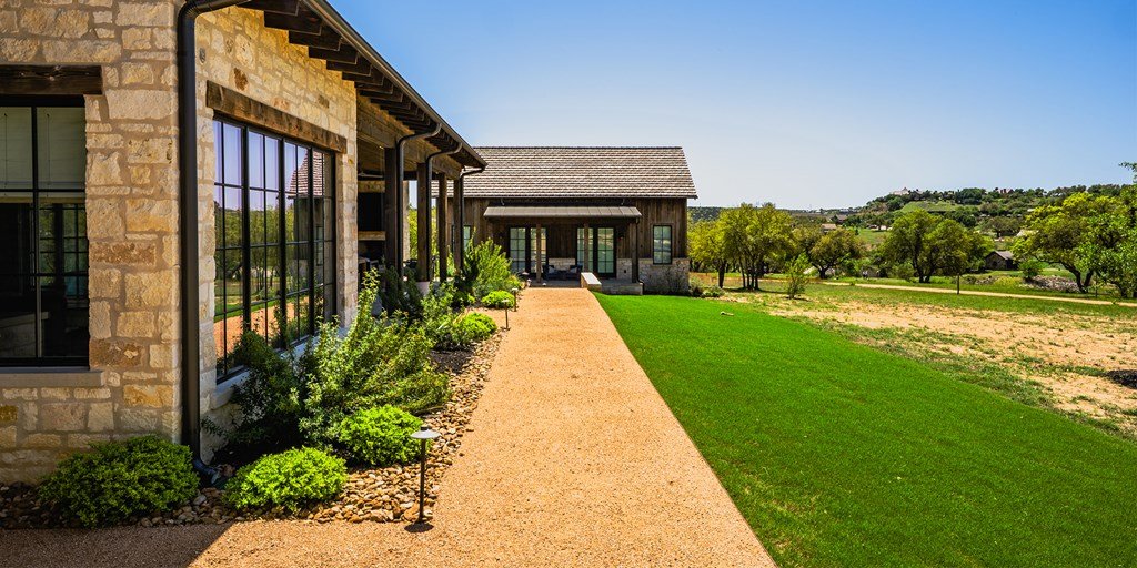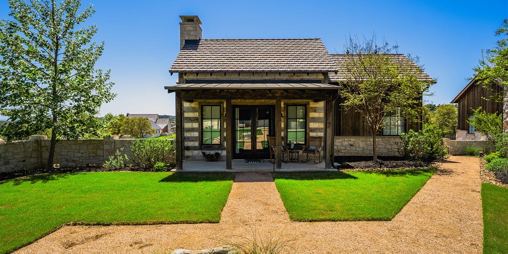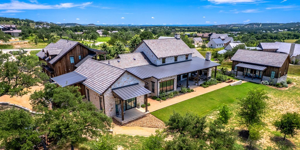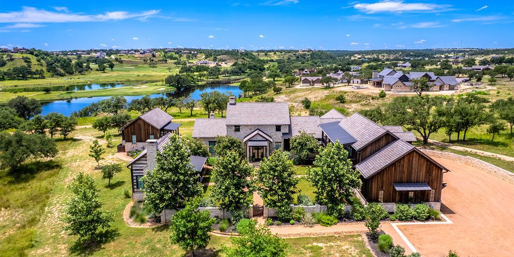 This large family compound sits on the Longhorn Trail system. From this amazing location, the Clubhouse, Pro Shop, Ranch Club, and FIT Club are just a few minutes away via golf cart. The views across Whitetail Lake and hole 12 are spectacular. This is truly an entertainer's dream to comfortably accommodate a solo couple or a dozen family and friends. On the first floor, the main house has an ample great room, incredible study, dining room, kitchen, laundry, butler's pantry, and the primary suite. The outdoor kitchen space expands right off the living room with a deep-covered porch with a built-in grill. The second floor of the garage, accessed by an outdoor stairway from the courtyard, has a massive bunk room with 6 built-in beds and a bathroom. A wonderful full-length covered porch accentuates the massive gathering space and can accommodate indoor and outdoor fun. The detached garage accommodates three cars and a golf cart. The property boasts two detached guest accommodations. Don't miss your opportunity to become part of Boot Ranch, the finest private club community in Texas.